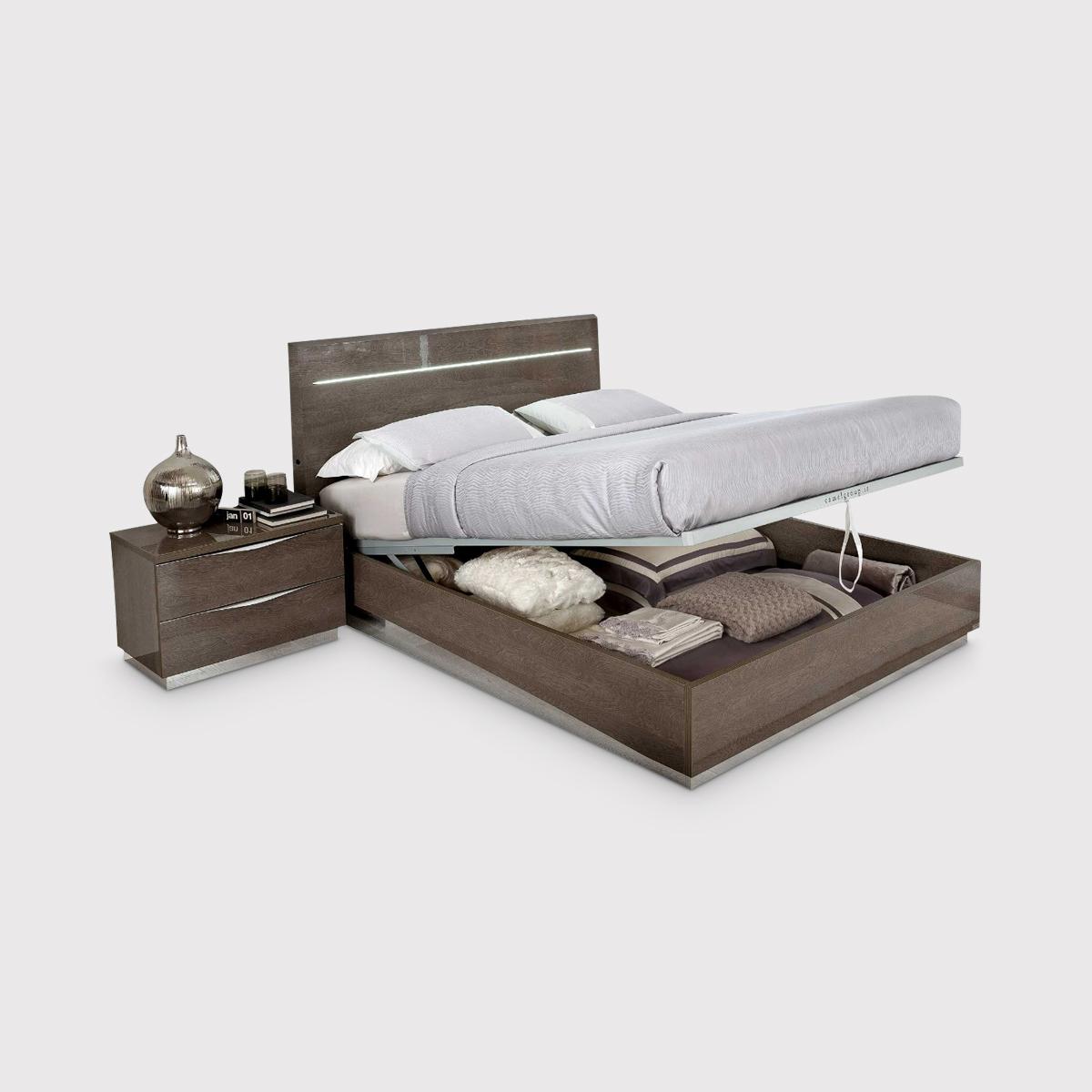 Sleek contemporary design with the practicality of hide away storage. The Lutyen storage bed frame boasts a glossy taupe finish with ambient lighting, resulting in a homely yet high end finish. With an simple lift mechanism and ease of access, plenty of storage space beneath can be utilised to keep your bedroom clutter free, ideal for soft furnishings and spare bedding.