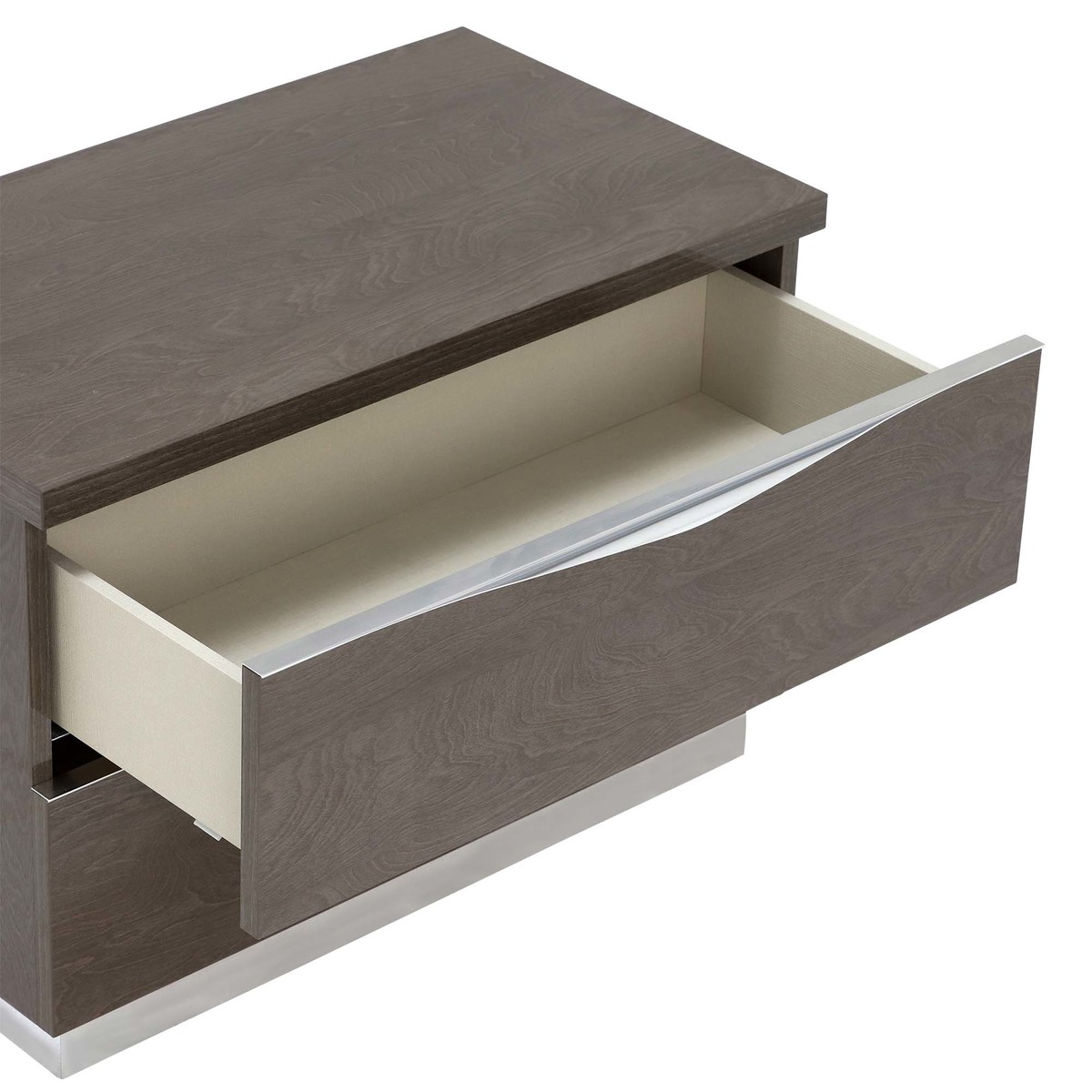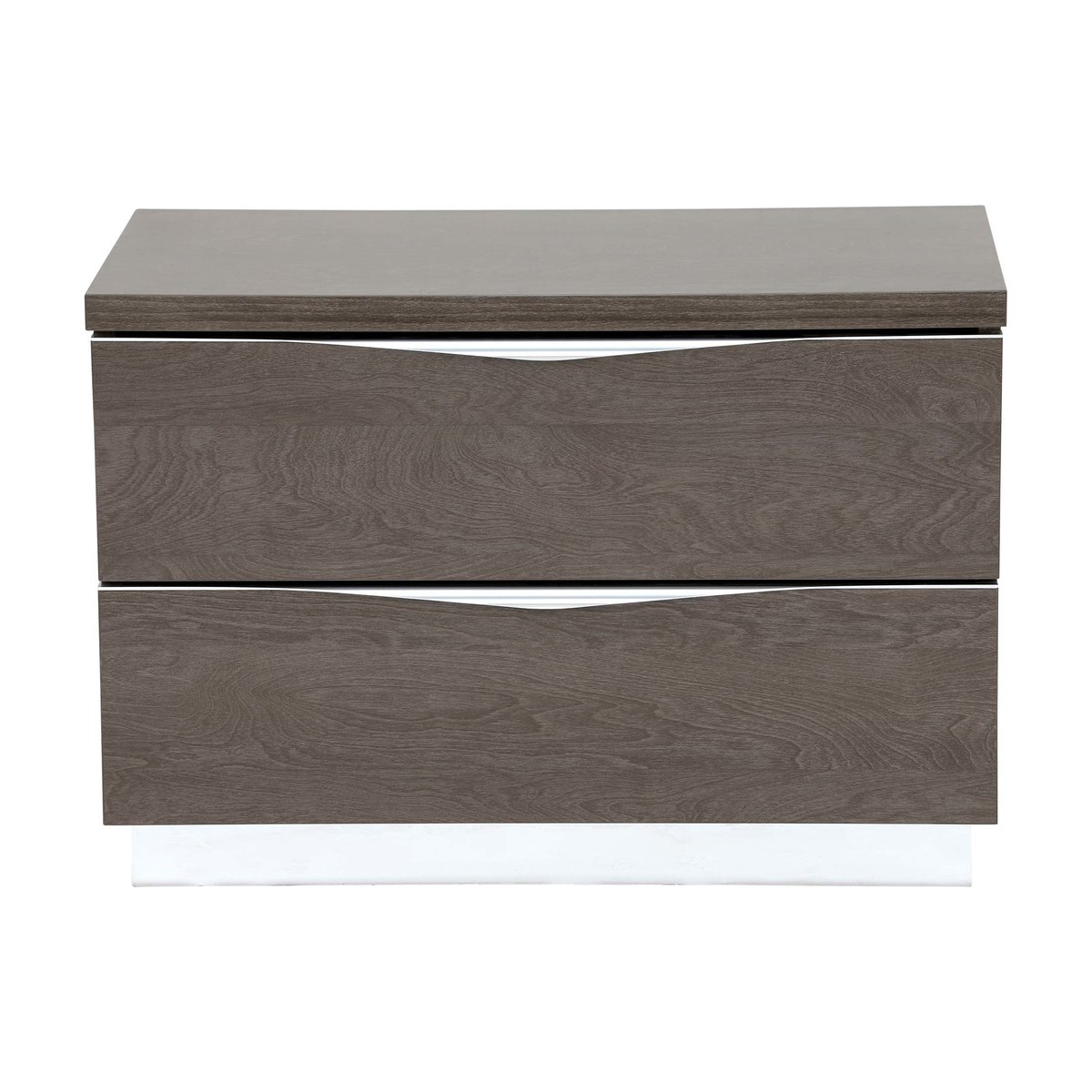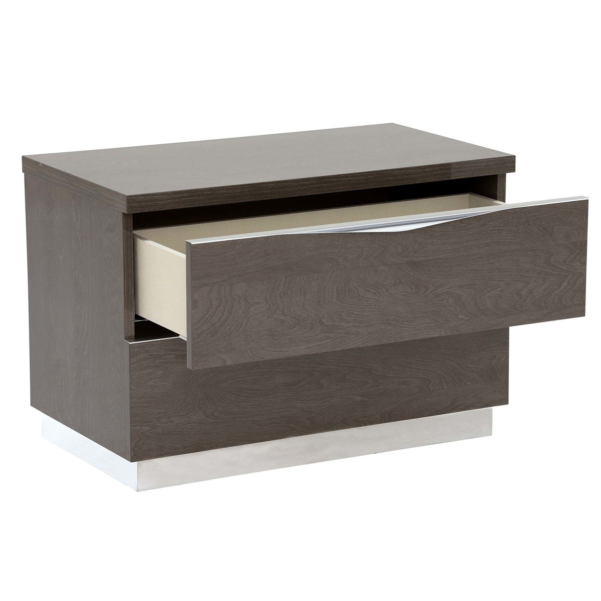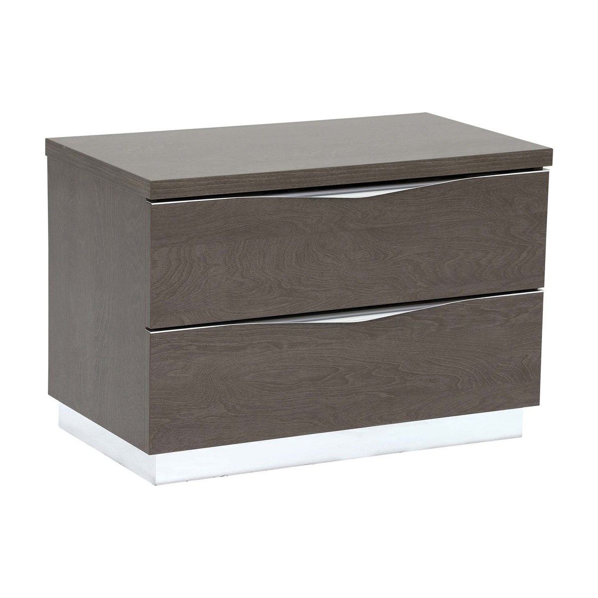 I love this bedside table for its sleek, minimalist design and versatile colour palette. The grey and taupe tones make it an adaptable statement piece that works beautifully in modern or contemporary interiors, as well as softer, more neutral schemes. Its clean lines and understated hardware add a sophisticated touch, while the two drawers provide practical storage for essentials. For styling tips, consider placing a small lamp, a favourite book, or a decorative tray on top for a personalised touch. Pair it with textured bed linen or tactile accessories to add warmth, and it will blend seamlessly into a range of schemes, from urban apartments to cosy country homes.