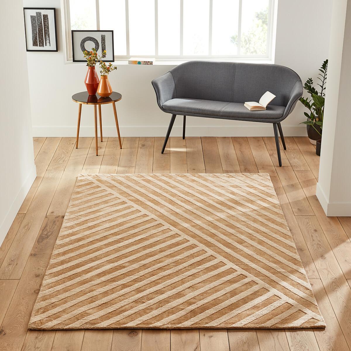 This tufted viscose rug is all subtlety and sobriety. Its graphic design in a style of the 1930s will delight lovers of vintage decor. Product Details. 100% viscose, 3500 g/m2. Artisanal craftsmanship. Hand-made. Size. 120 x 170cm. 160 x 230cm. 200 x 290cm. Thickness: 1.5cm. Discover the full rug collection available online.