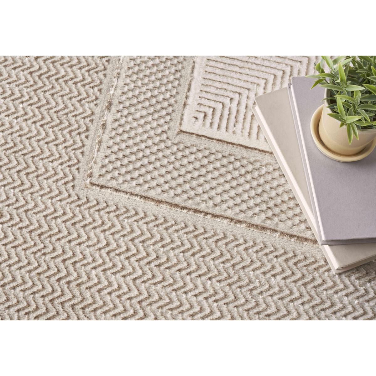 With its shimmering textured finish in tones of ivory, silver and gold, and contemporary geometric design, this rug brings fabulous style to any room. In three sizes. Why you'll love it This on-trend geometric rug brings home a very grownup glam look. Contemporary style. Textured finish in tones of silver, ivory and gold. Soft shallow pile with a brilliant shimmer. In a choice of sizes. This rug is part of the Furniture Village home accessories collection. What you need to know 10 mm pile height. 100% polyester. For indoor use only. Easy to clean – vacuum regularly. Blot stains; do not rub.
