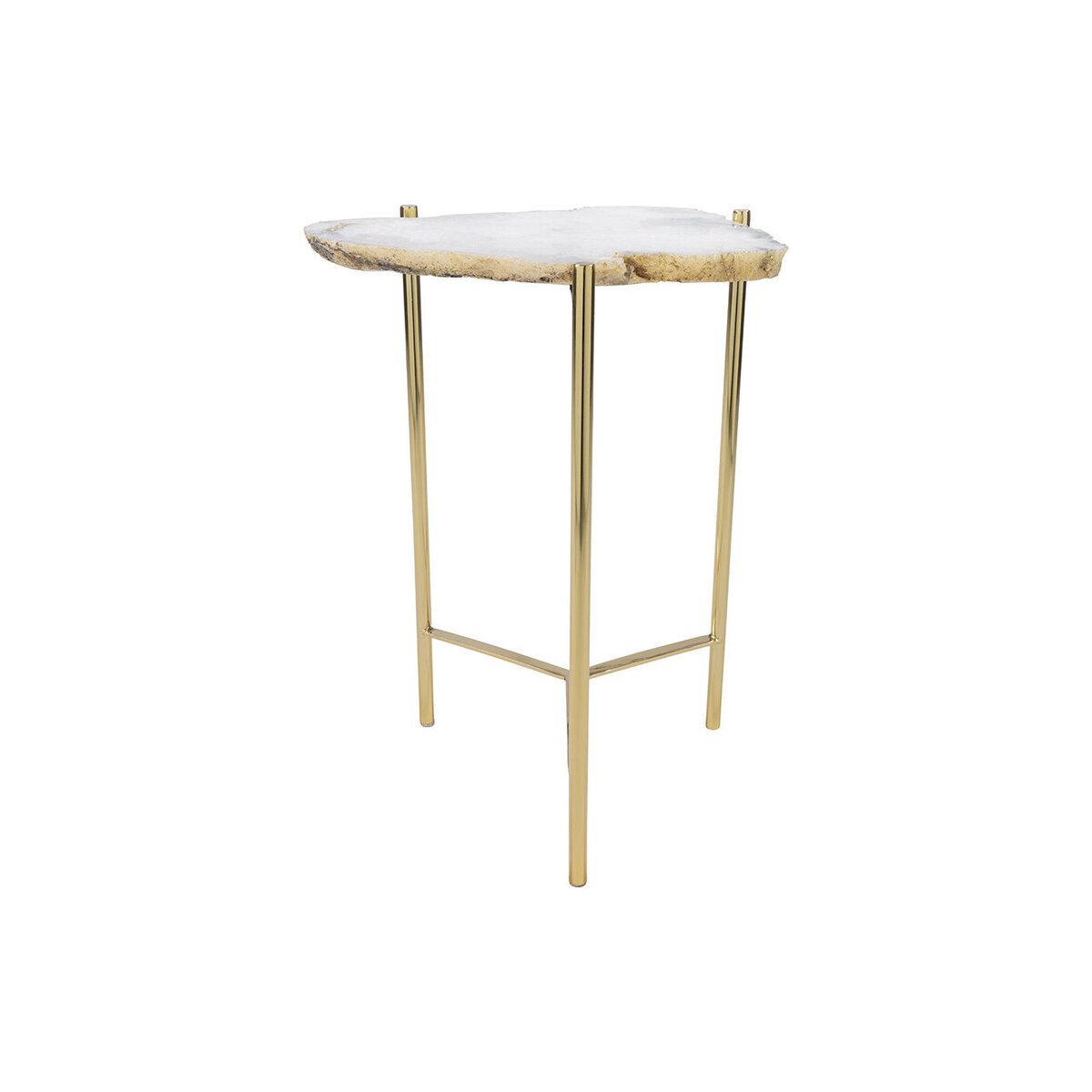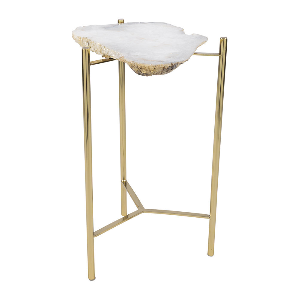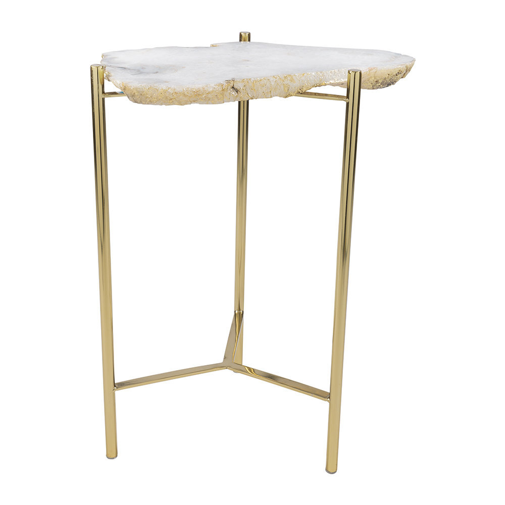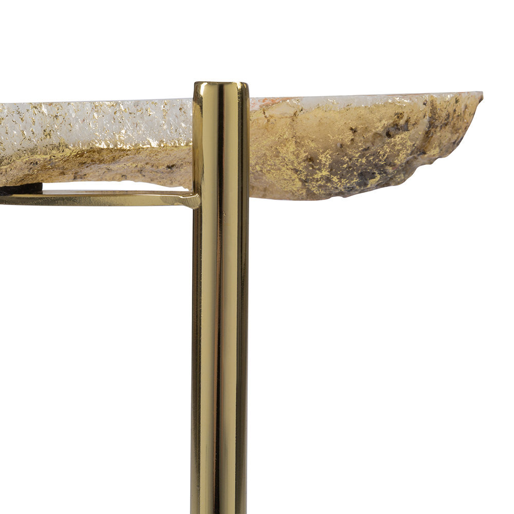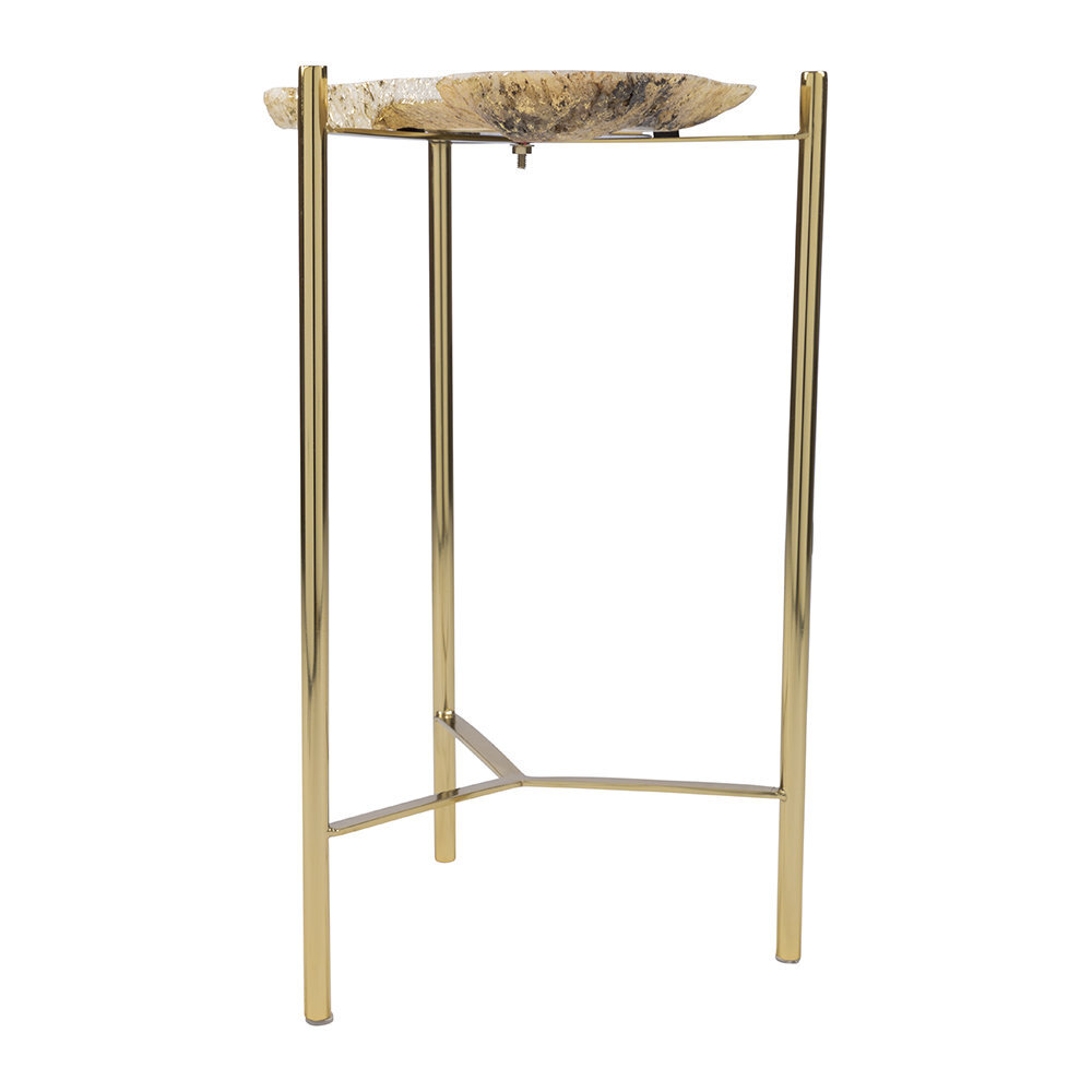 Add wow factor to your home with this agate slab side table from Luxe. Equal parts rustic and decadent, this table is topped with an agate slab for a touch of intrigue wherever placed. On a tripod base of brass coloured steel, it is stylish yet striking and is exclusively available at Amara.