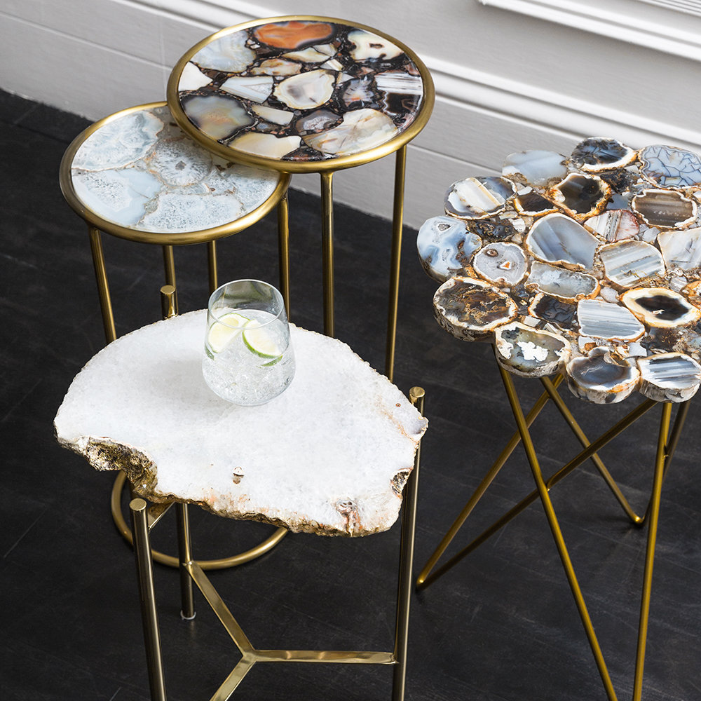 I love the luxe side table for its striking combination of natural agate and elegant gold tones, which adds a touch of sophistication to any space. It's versatile enough to work well in both contemporary and eclectic interiors, bringing a sense of organic luxury. For styling, consider pairing it with minimalist neutrals to let the agate’s natural beauty stand out, or use it to complement existing metallic accents for a cohesive look. Practical tips include keeping surface items minimal-think a small lamp, a book, or a decorative vase-to highlight its beauty while maintaining functionality. This piece is perfect as a statement side table next to a sofa or bed, creating a balanced mix of nature and glamour.