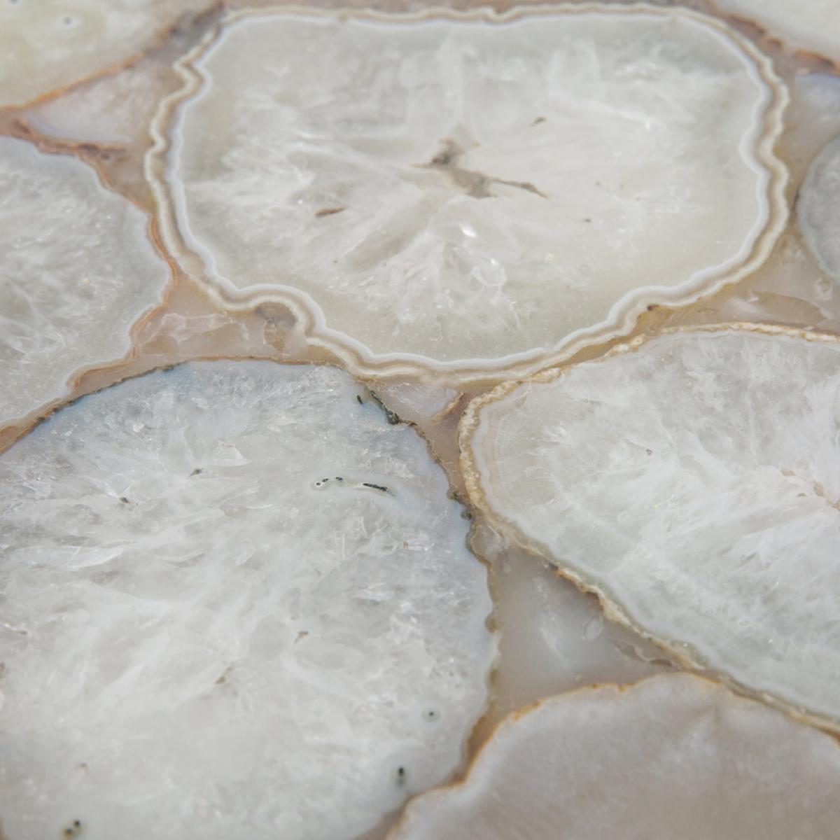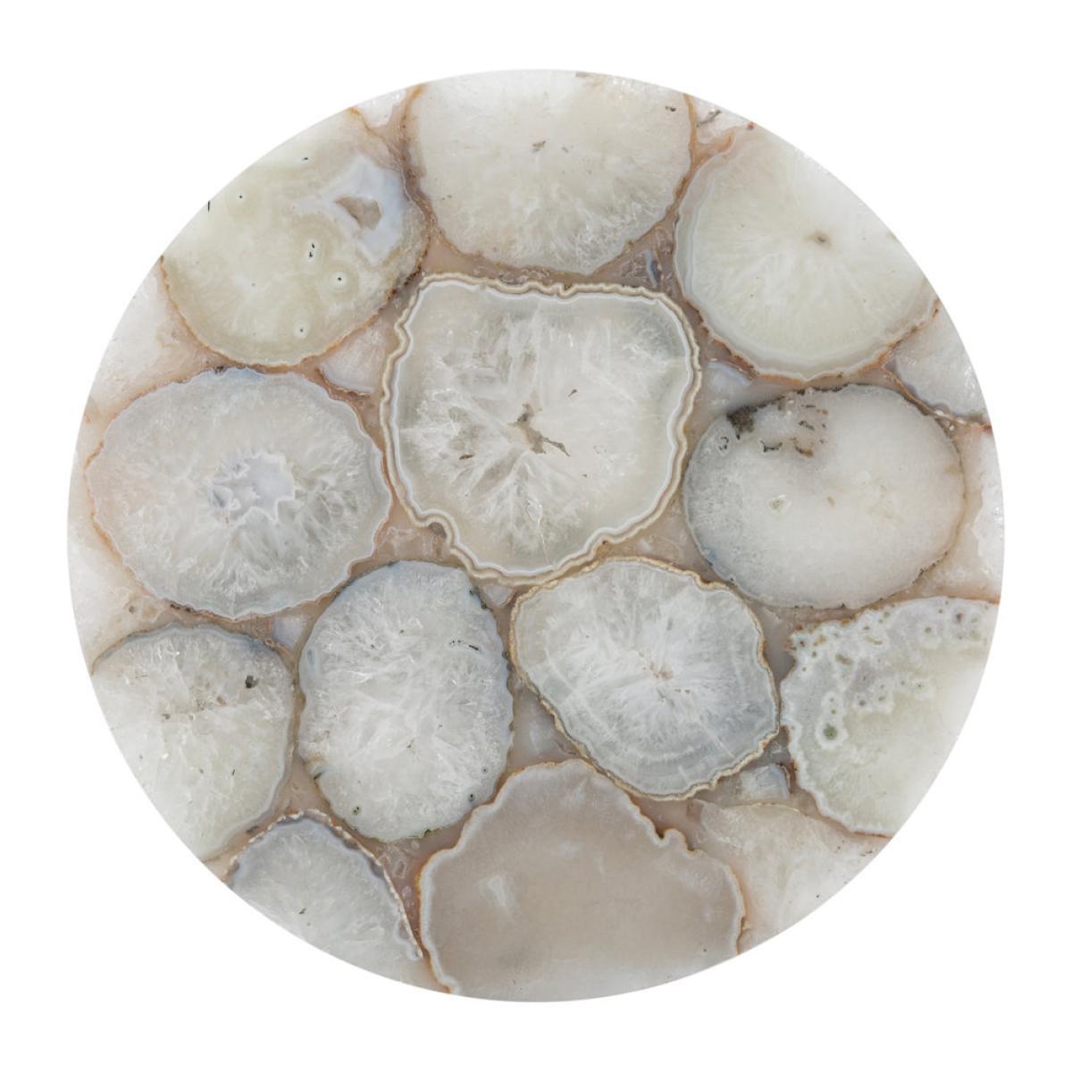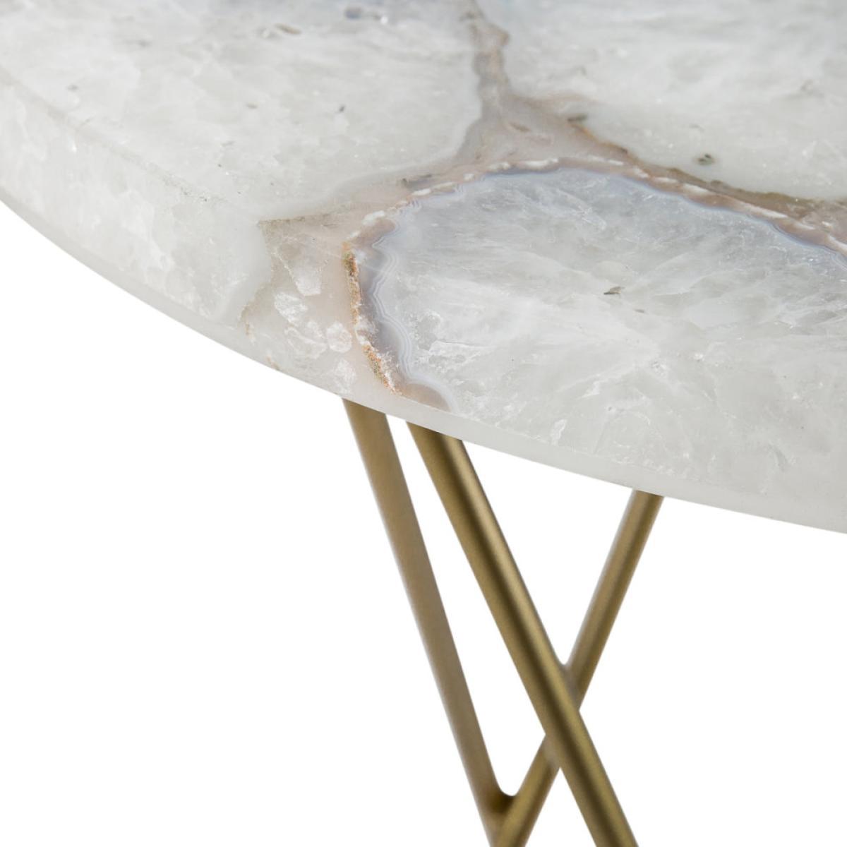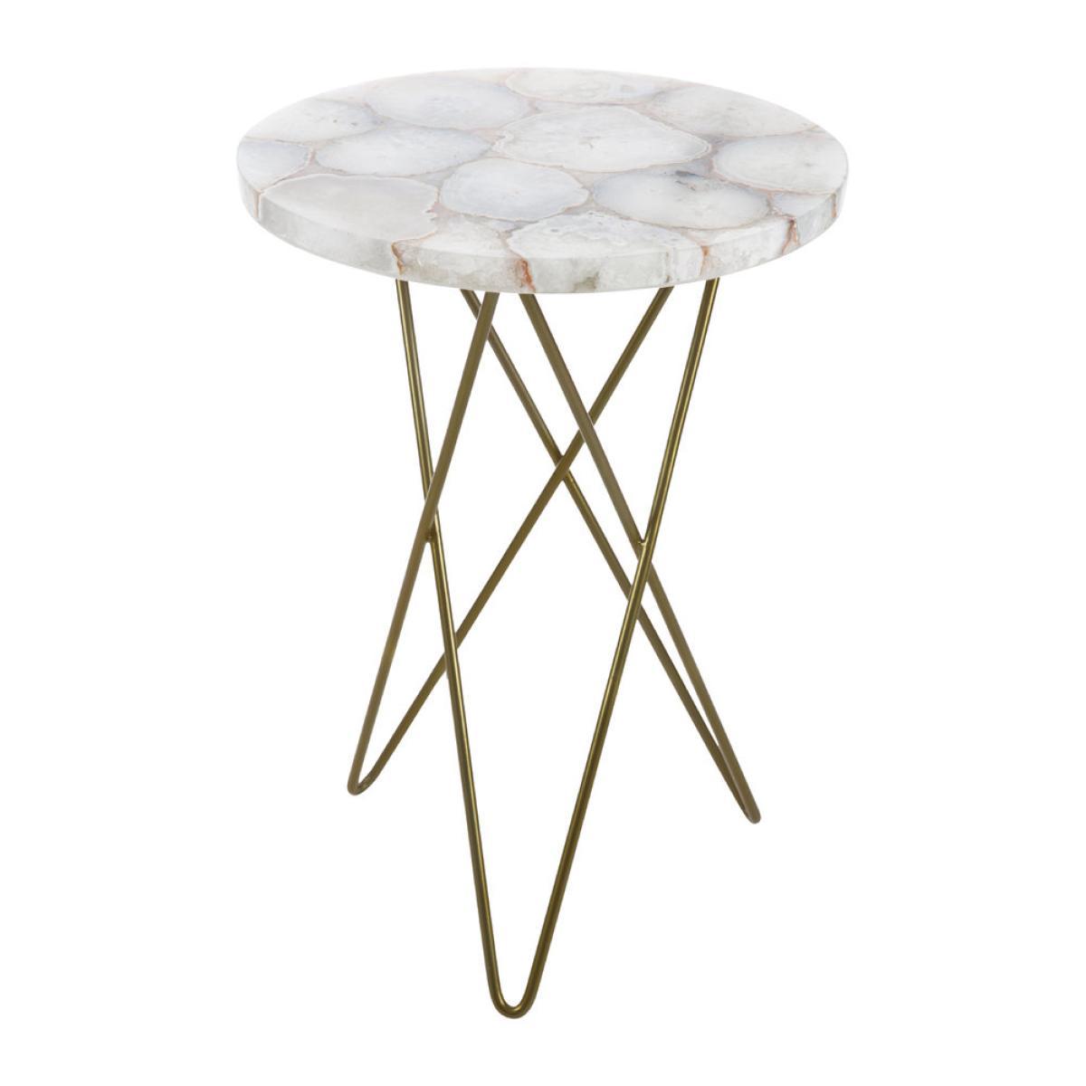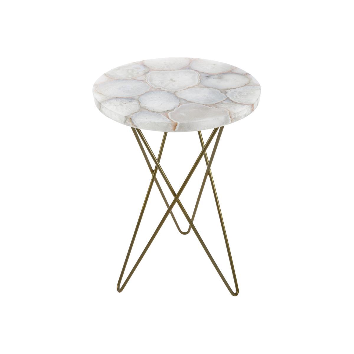 Add on-trend design to any room in the home with this Agate side table from Luxe. Topped with a surface of white and grey agate in irregular circles, this table is perfect as a modern side table or bedside table. Finished with a crossover metal leg design in a shining brass hue, it will add a hint of glamour to any space. Please note, due to natural materials used slight variations can occur.