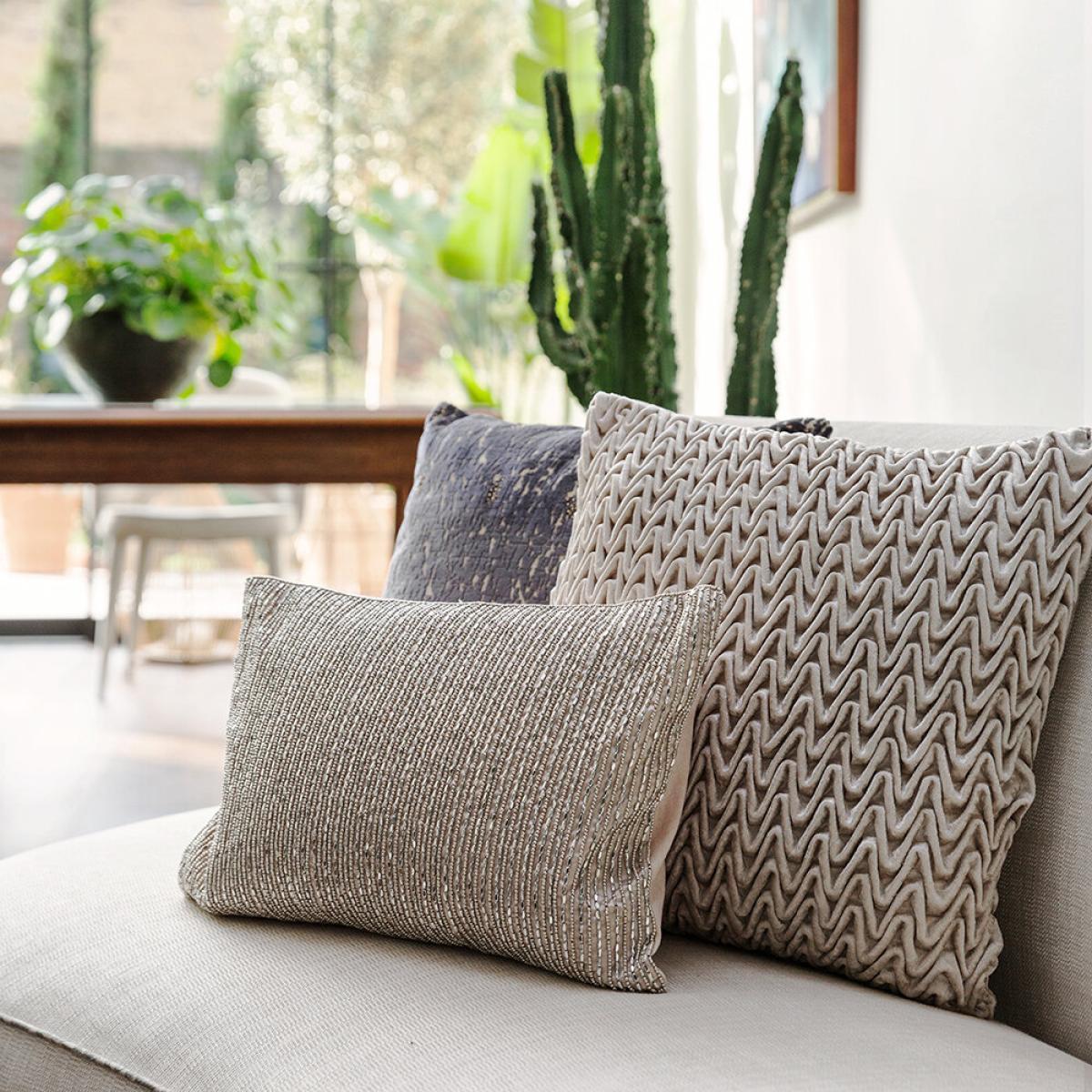 I love this cushion cover for its understated elegance and tactile quality. The beaded stripe adds subtle texture and a touch of sophistication, making it versatile for both modern and traditional interiors. It works particularly well in neutral, earthy-toned schemes or layered with other textures, like faux furs or knits. For styling tips, pair it with rich velvet cushions or a chunky throw to create a cosy, inviting look. It's perfect for adding visual interest without overwhelming the space, making it a great choice for sofas, armchairs, or even bed accents in living rooms or bedrooms.
