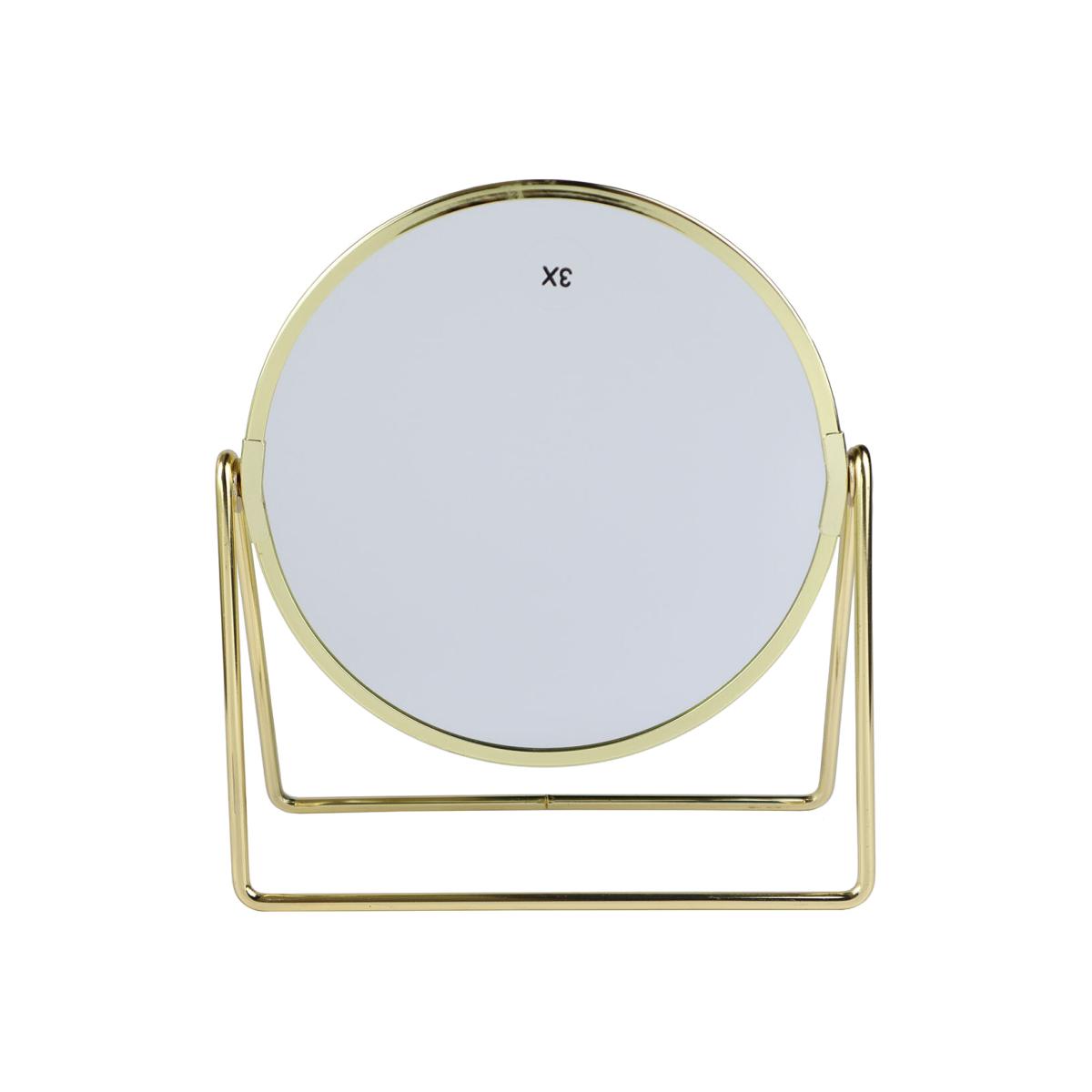 Elevate your beauty routine with the Gold Luxe Cosmetic Mirror. This elegant mirror features 3x magnification, allowing precise application and flawless makeup touch-ups. Its luxurious gold finish adds a touch of sophistication to any vanity or tabletop, making it a stylish accessory for your space. Showcasing a smart size design, this cosmetic mirror is ideal for makeup enthusiasts.