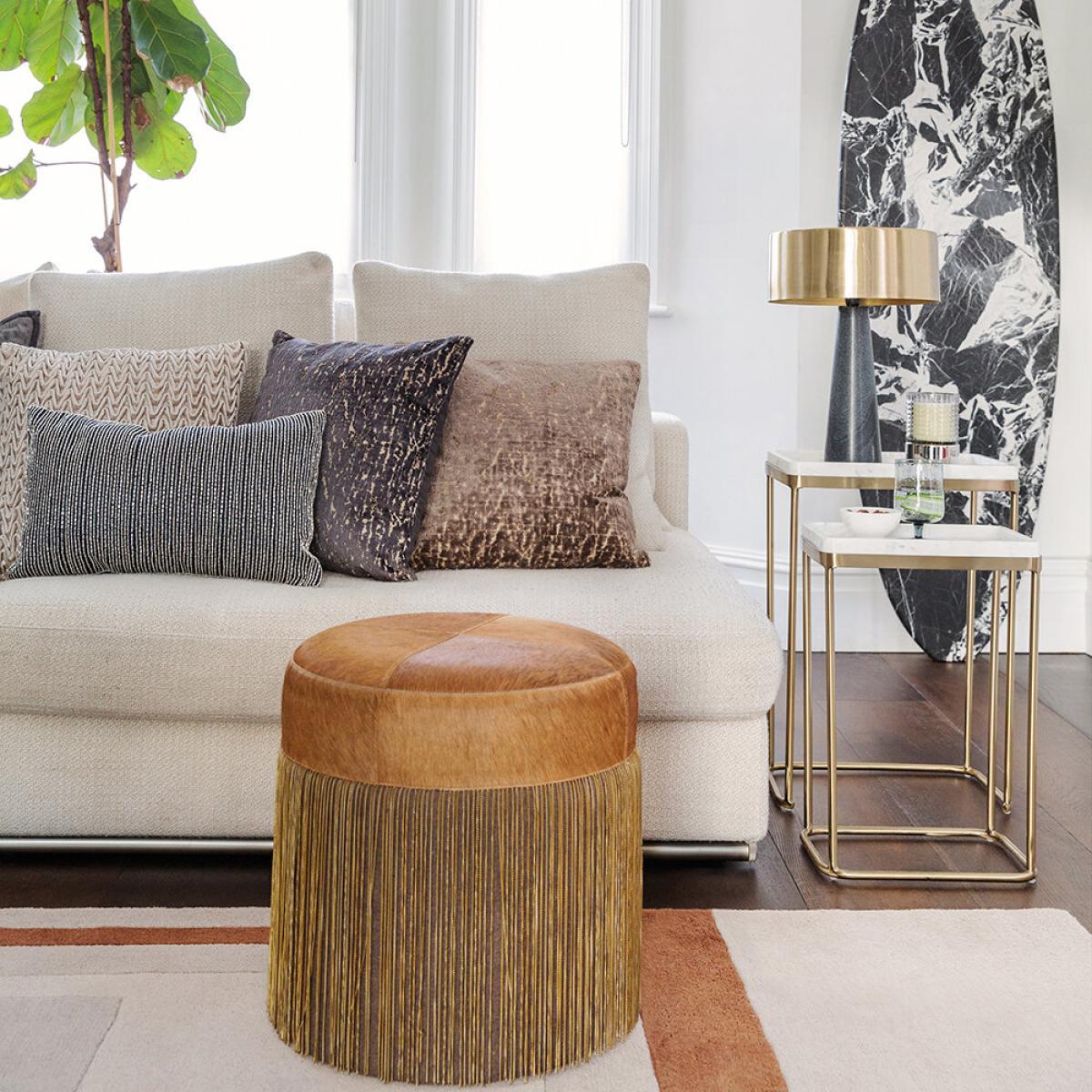 Sit back and put your feet up with the pouf from Luxe. Fabulously chic, this pouf is made from real cowhide and has the added flourish of fun chain fringing. Exceptionally on-trend, it’s the touch of glamour your seating space is looking for and it can also be used as a stylish stool.