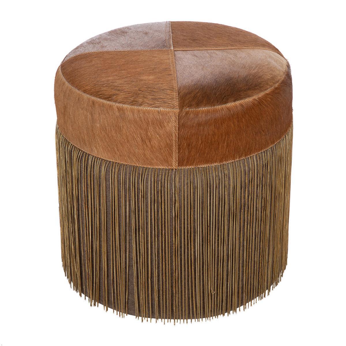 I love this pouf for its striking combination of natural textures and tactile appeal. The cowhide top adds a luxurious yet rustic touch, making it a perfect accent piece in both contemporary and eclectic interiors. It works especially well in spaces that mix materials-think leather sofas, woven rugs, and warm woods. Practical styling tips include using it as a footstool to complement a chaise lounge or as an extra seat in a casual living room. Its fringed base adds movement and visual interest, so placing it in a spot where it can be viewed from multiple angles maximises its impact. Overall, it’s a versatile statement piece that blends functionality with style effortlessly.