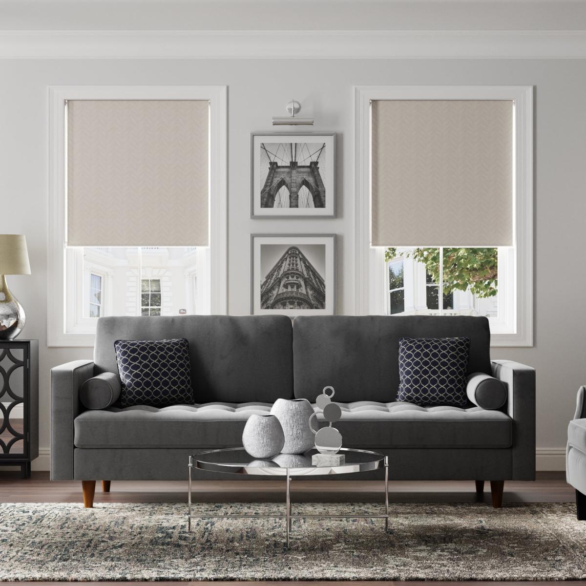 Crafted from a luxurious woven jacquard, our Luxe Feather blackout roller features an all-over feather design in a sophisticated champagne tone, ideal to lend a glamorous look to your window. The quality blackout coating helps to prevent unwanted external light from entering your home and improves privacy. Supplied with all fixings included. Please note:. The width stated is for the fabric only, please allow an extra 3. 2cm for the brackets and mechanism. Always check specific fitting instructions and check measurements for your blind once purchased before cutting to size. Please note that blinds cannot be returned once altered.