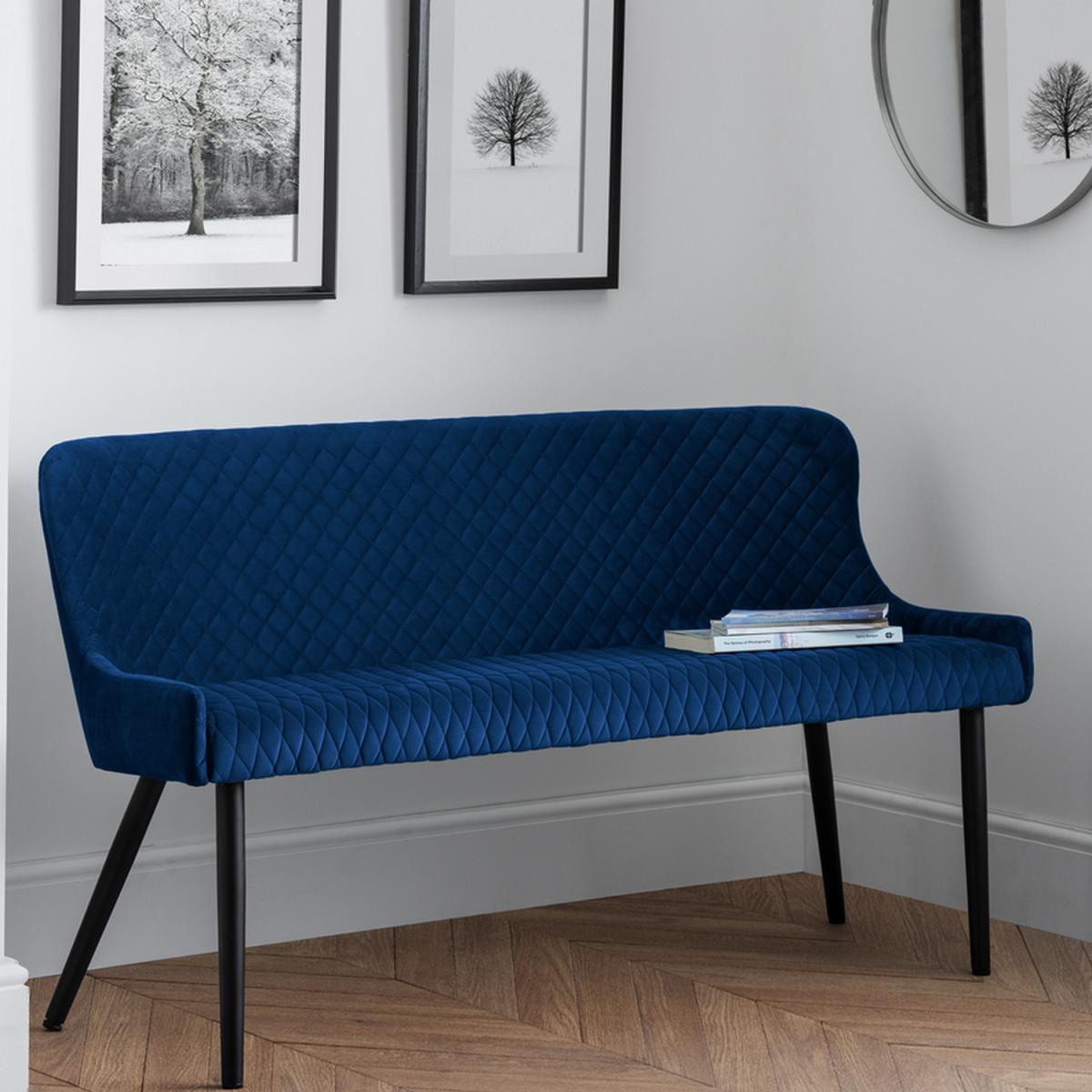 I love this blue high-back bench for its sleek, contemporary design and bold colour that can serve as a statement piece in both modern and eclectic interiors. It works particularly well in hallways, alongside dining tables, or as extra seating in living spaces. A stylist tip would be to pair it with neutral-toned surroundings to let the rich blue pop, or combine it with metallic accents for a sophisticated look. Its high back offers added comfort and support, making it a practical choice for both everyday use and guest seating. To keep the styling fresh, consider adding textured cushions or throws in complementary hues for a layered, inviting feel.