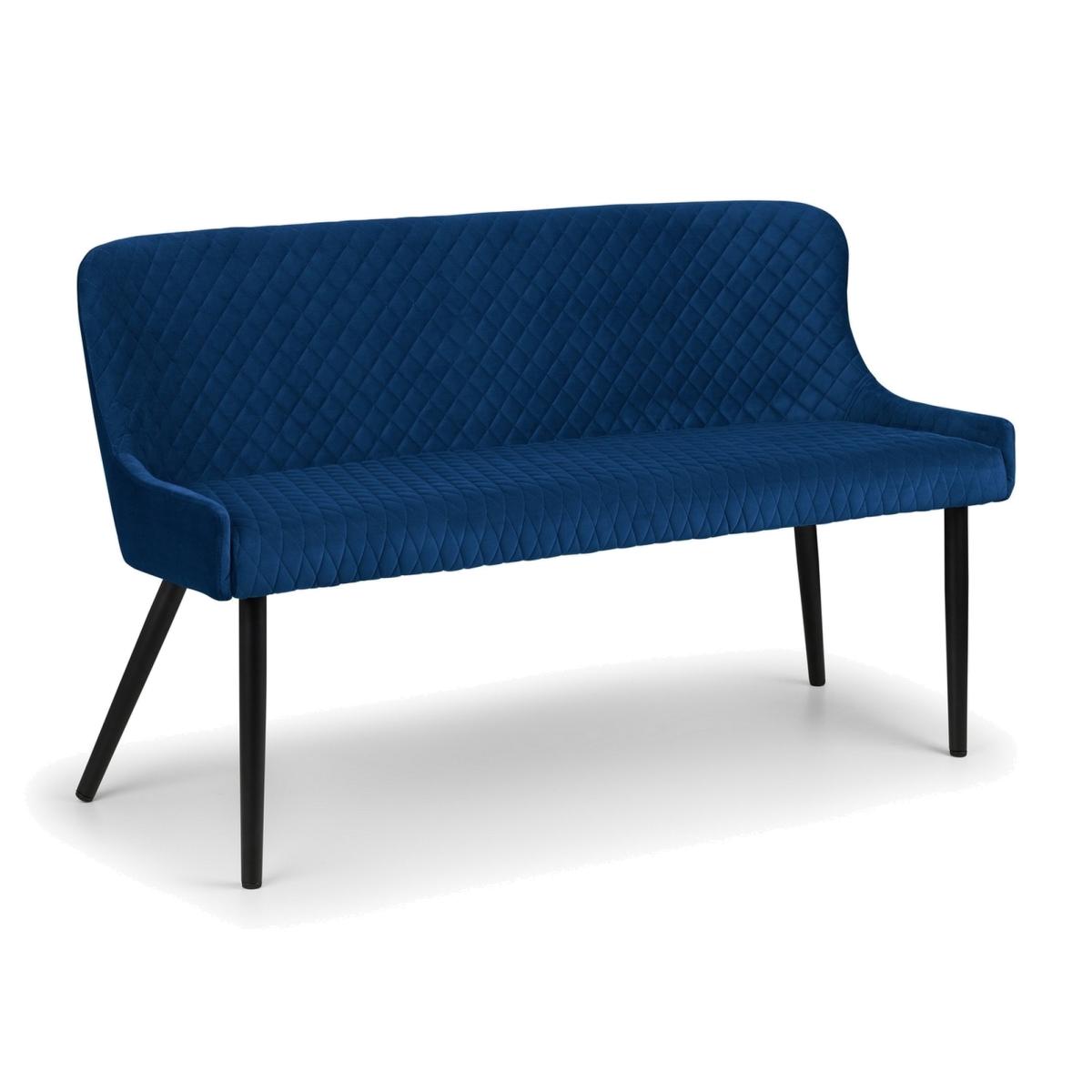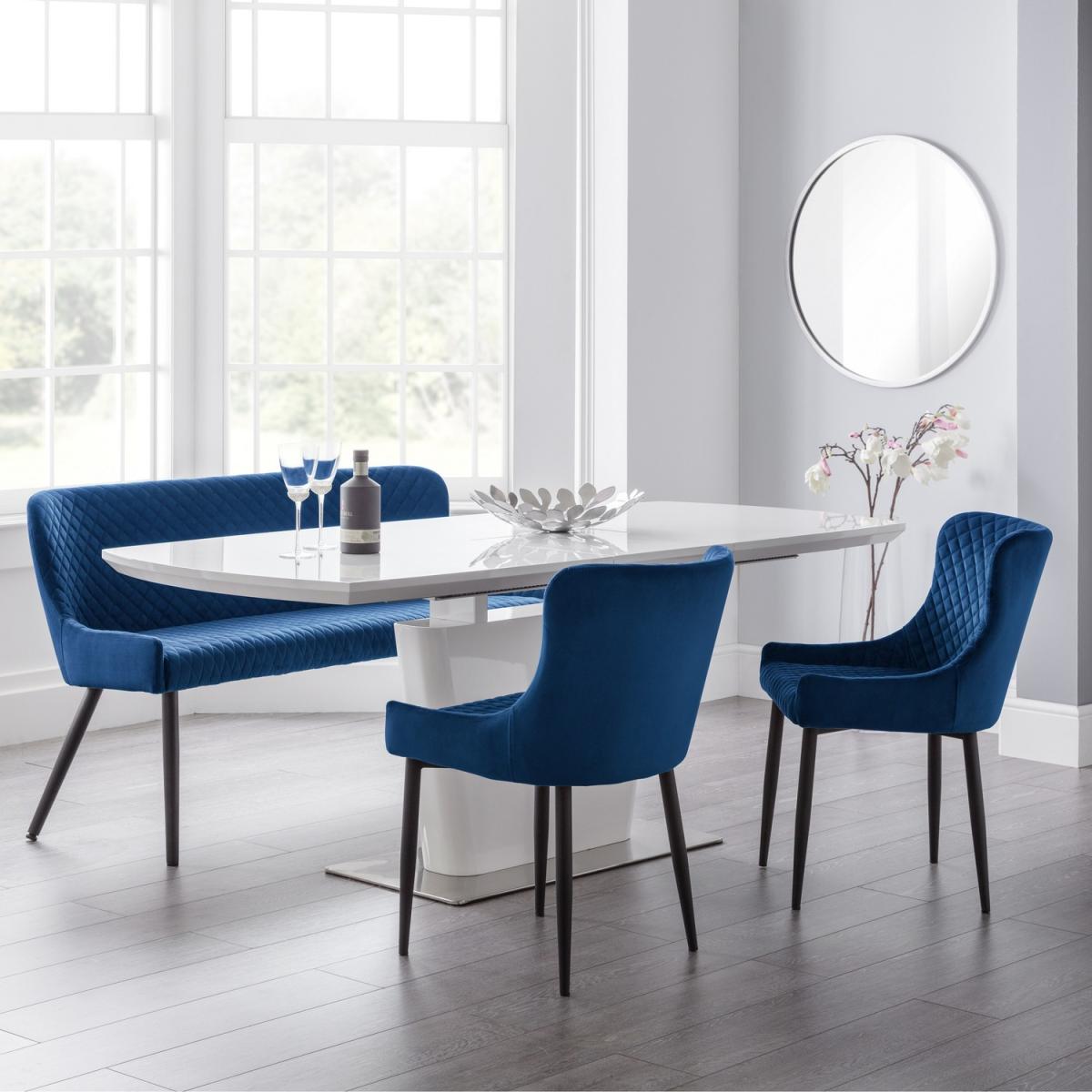 The Luxe High Back Bench offers a classic style with a modern twist, beautifully upholstered in a modern blue velvet with a luxuriant quilted finish offering depth and texture. This bench is the perfect use for dining or as a striking focal point for any room.