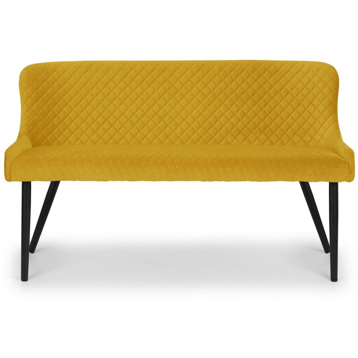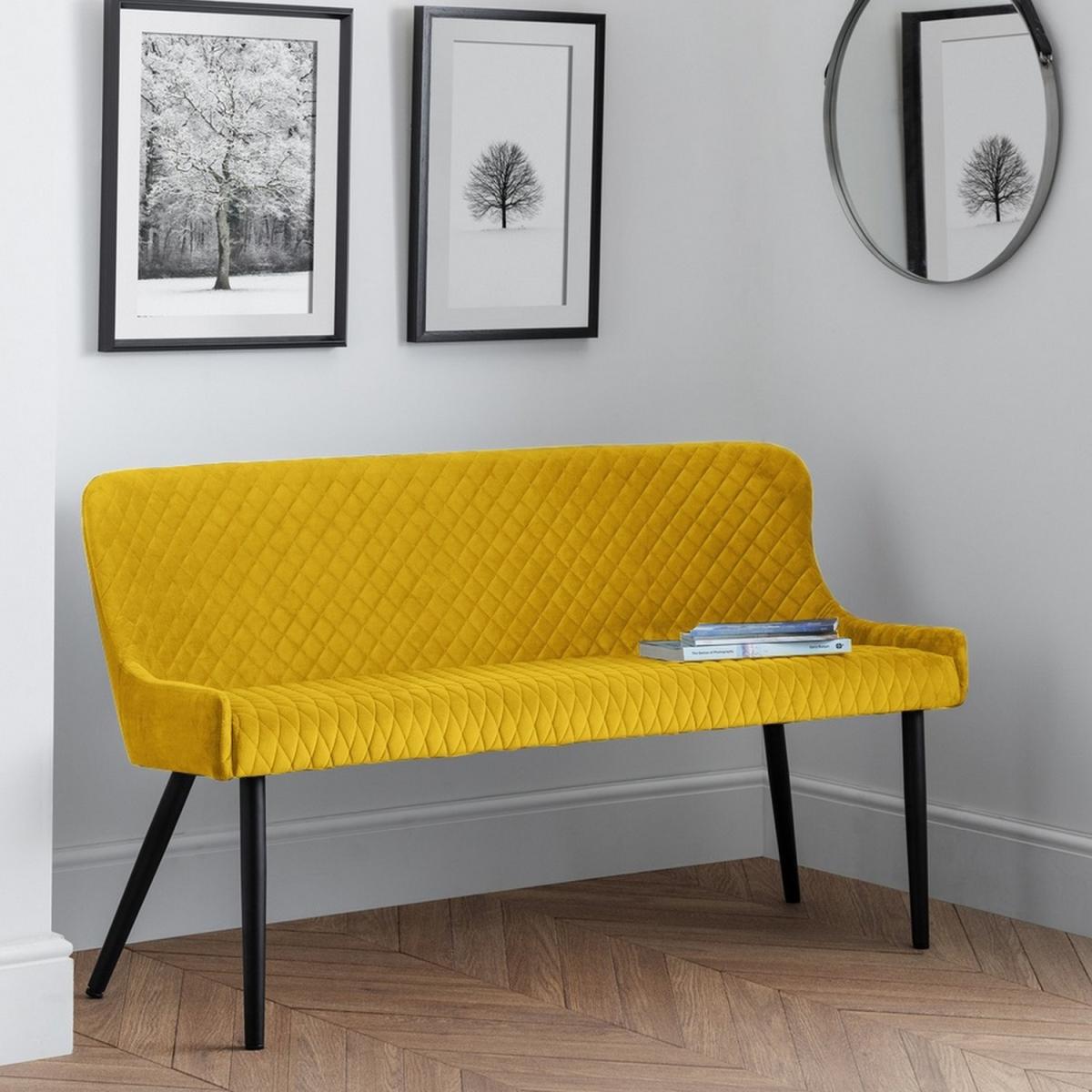 I’m a fan of this mustard bench for its clean, modern lines and quilted upholstery - it brings instant warmth without feeling fussy. The bold yellow works brilliantly in neutral or monochrome schemes and also stands up well against deeper jewel tones, so you can slot it into a contemporary hallway, kitchen diner or even at the foot of a bed. For styling, keep surrounding accents simple: a slim black-framed mirror or a brass wall sconce above helps to lift the space, while scatter cushions in muted teal or rust add subtle contrast. Because it’s slim yet supportive, it’s ideal for tight spaces - use it to anchor an entrance or create a cosy breakfast nook with a narrow console or café-style table.
