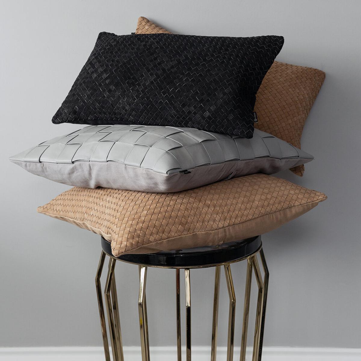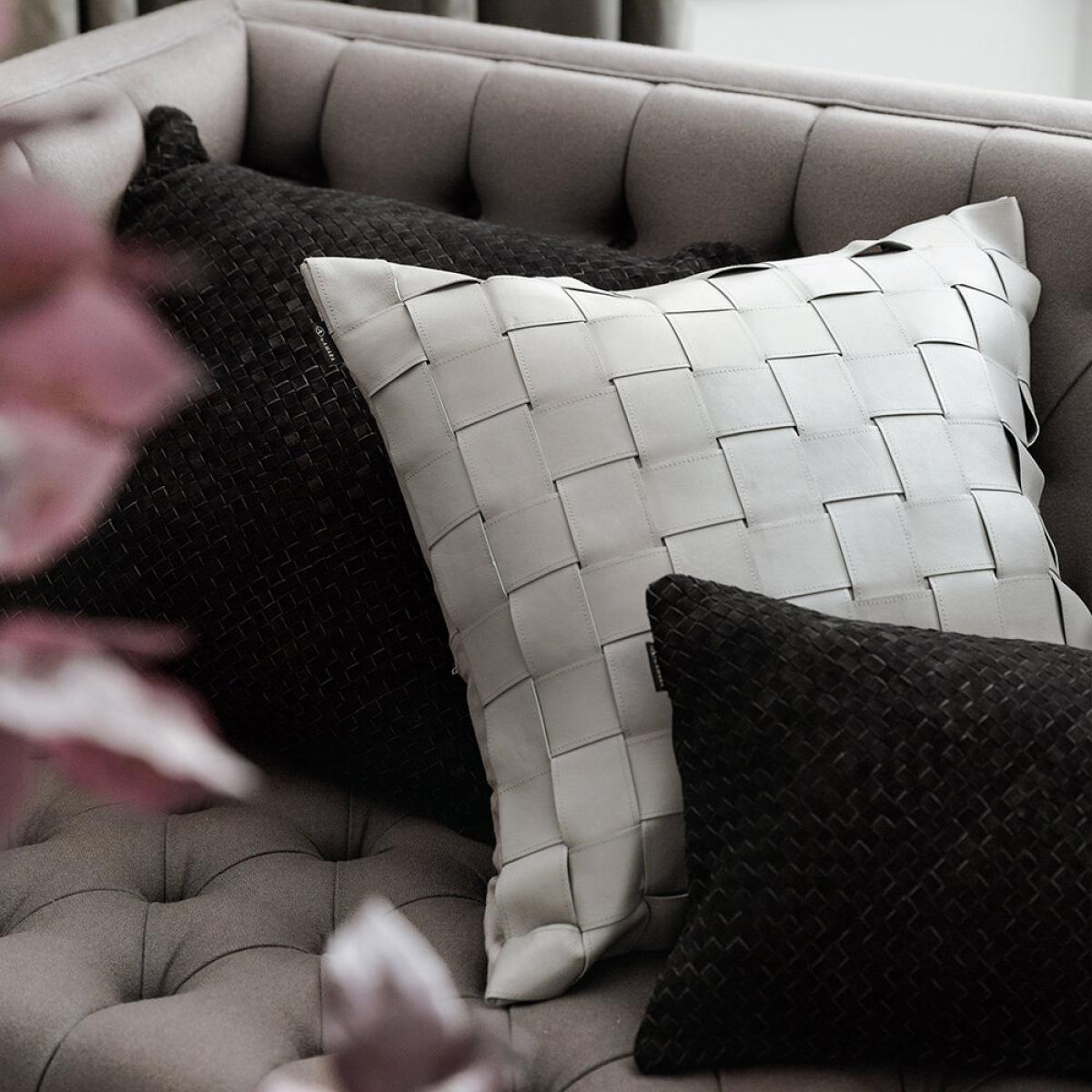 Perfect your pillowscape in style with this cushion from Luxe. Featuring a woven design available in a tan, black, or light grey leather, it is finished with a soft cotton reverse. A luxurious finishing touch to any interior.