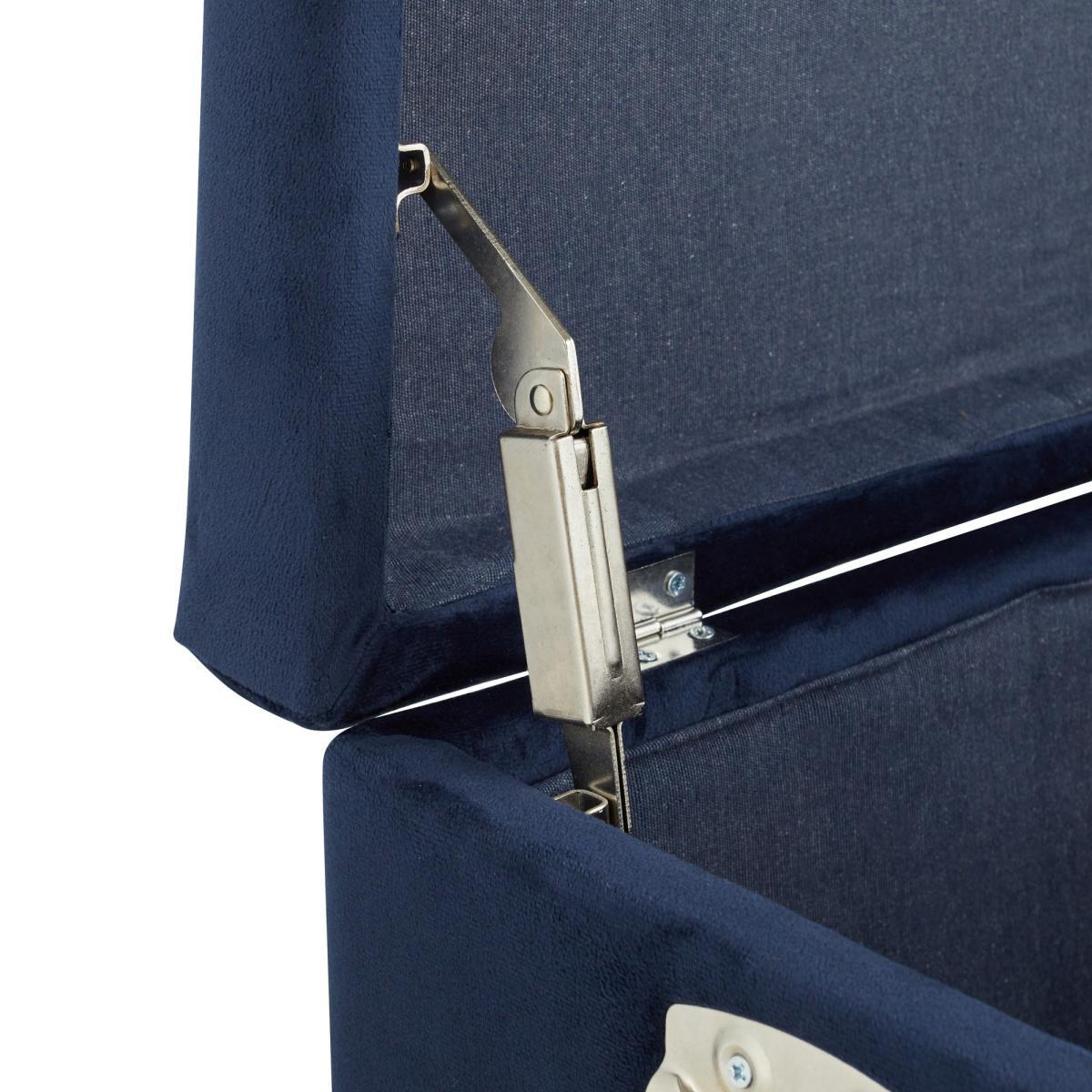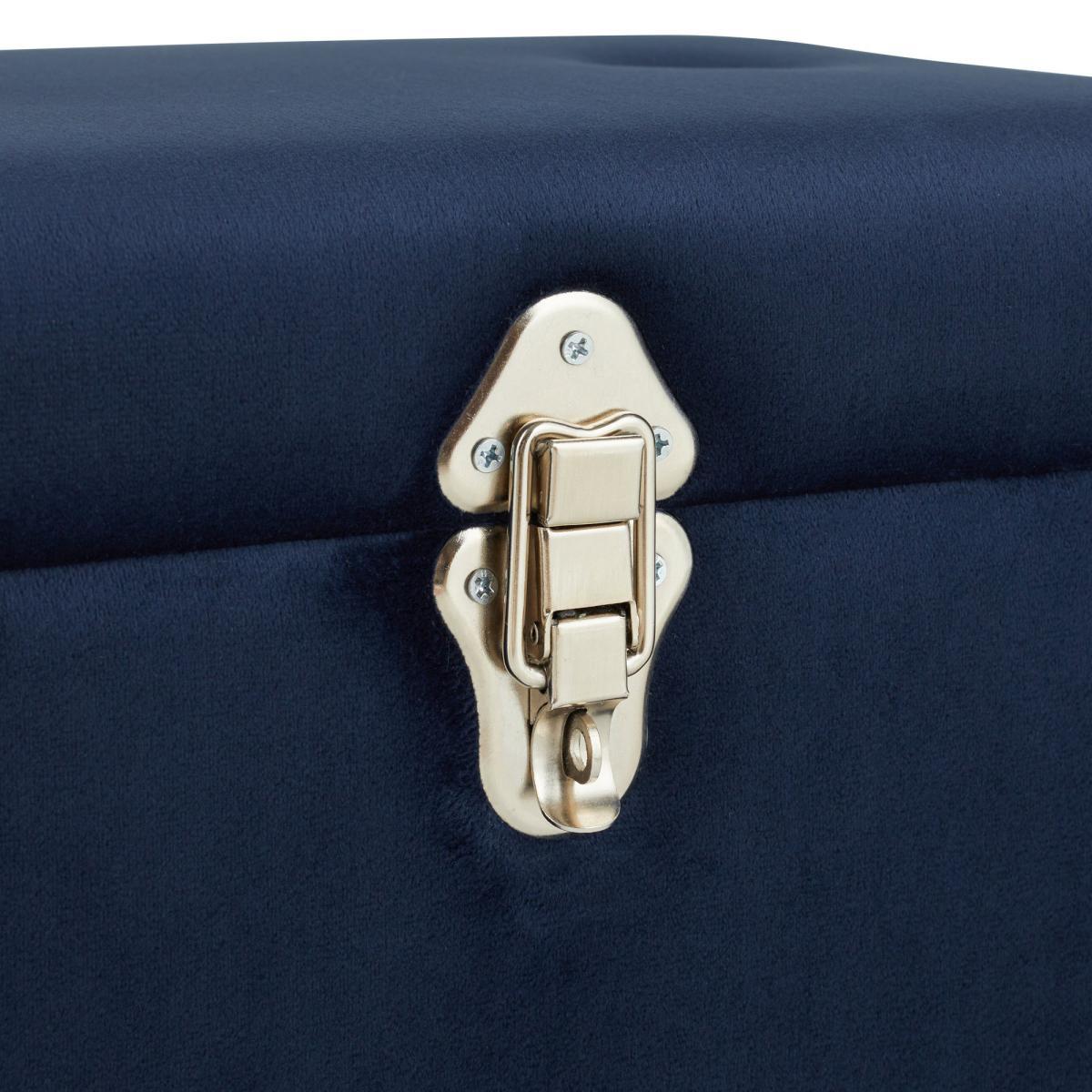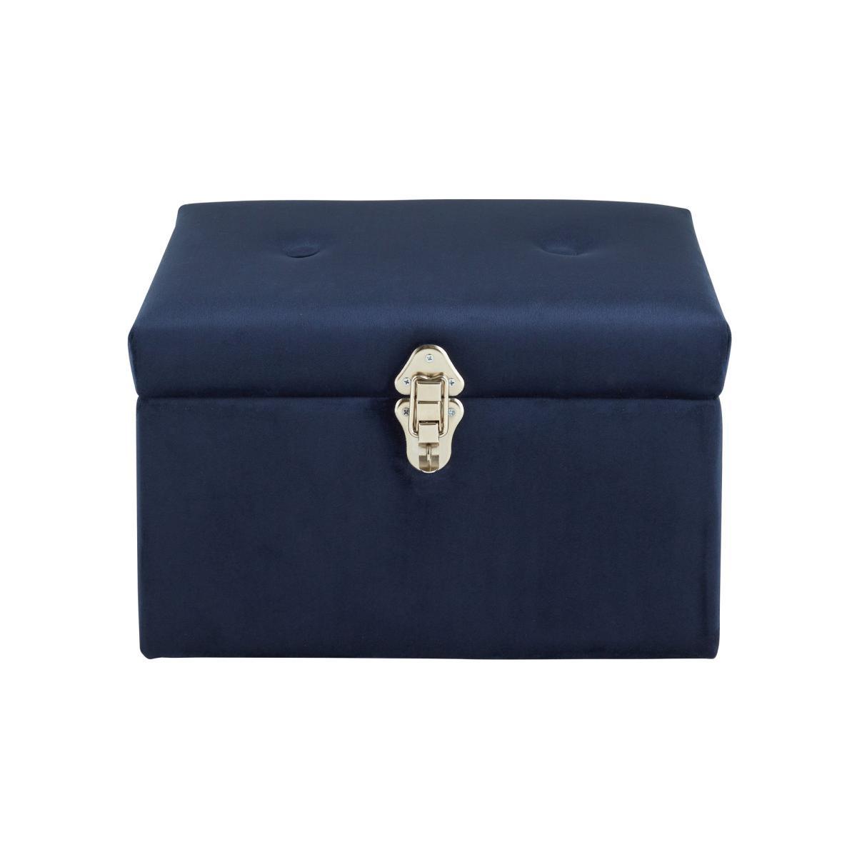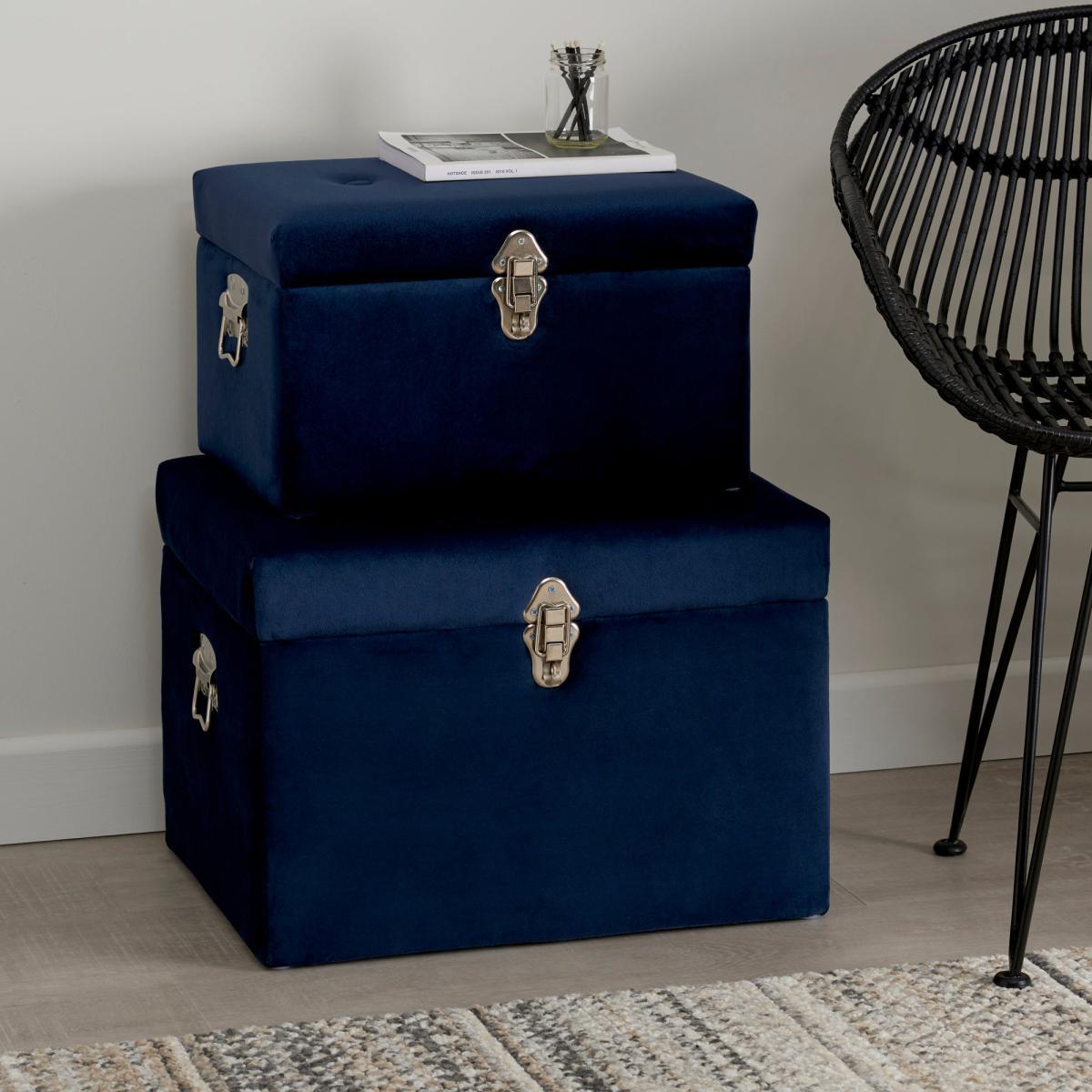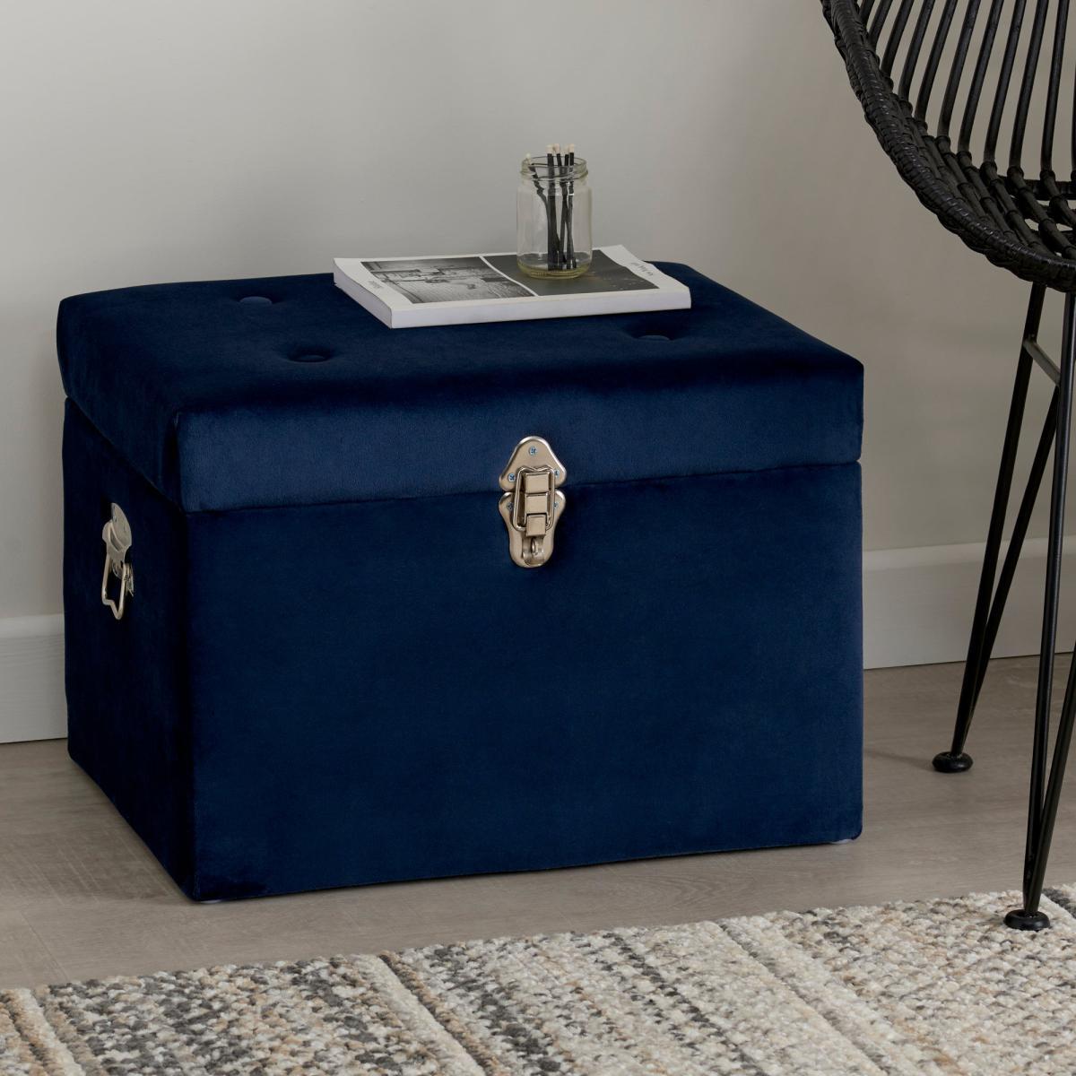 Designed for stylishly tidying away your clutter, this strong and versatile piece is made from a luxe velvet material, that will add a soft look and feel to your home. The modern luxe storage trunk has a glamorous navy colourway that will complement an array of home decors beautifully and practical handles, making it easy to move around the house. A storage trunk has never looked so good!. Please note: This item is intended for storage use only within a domestic environment, please do not use as seating.