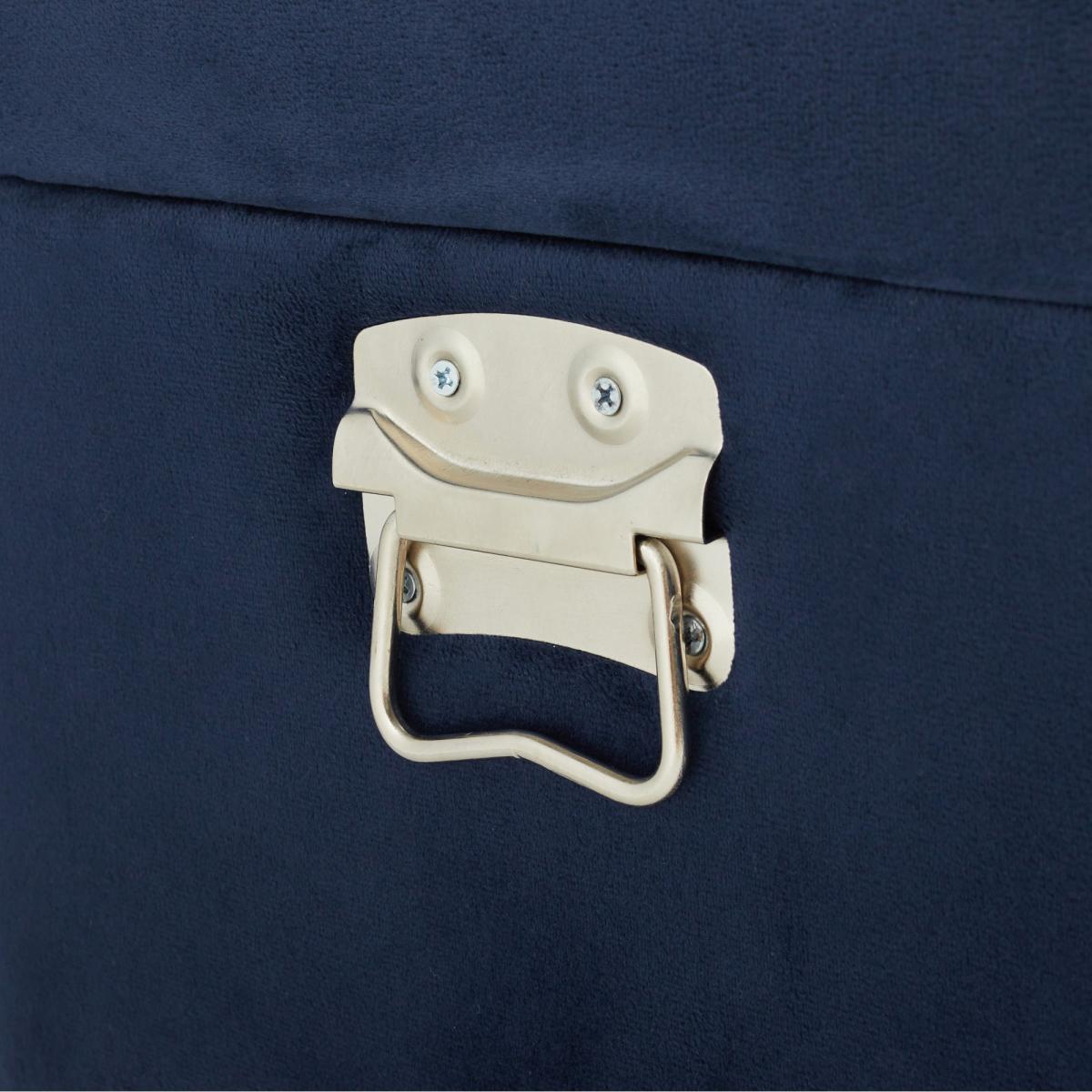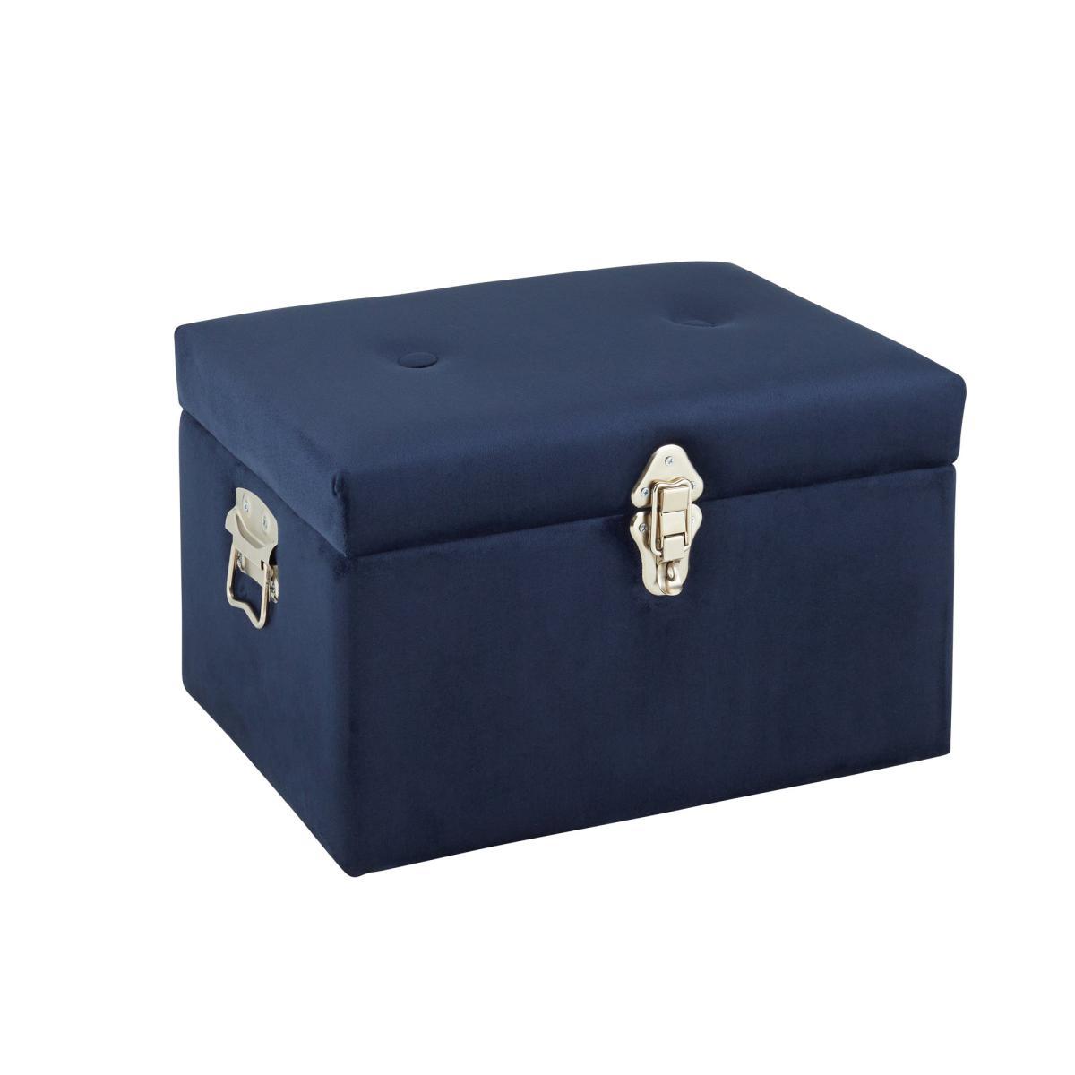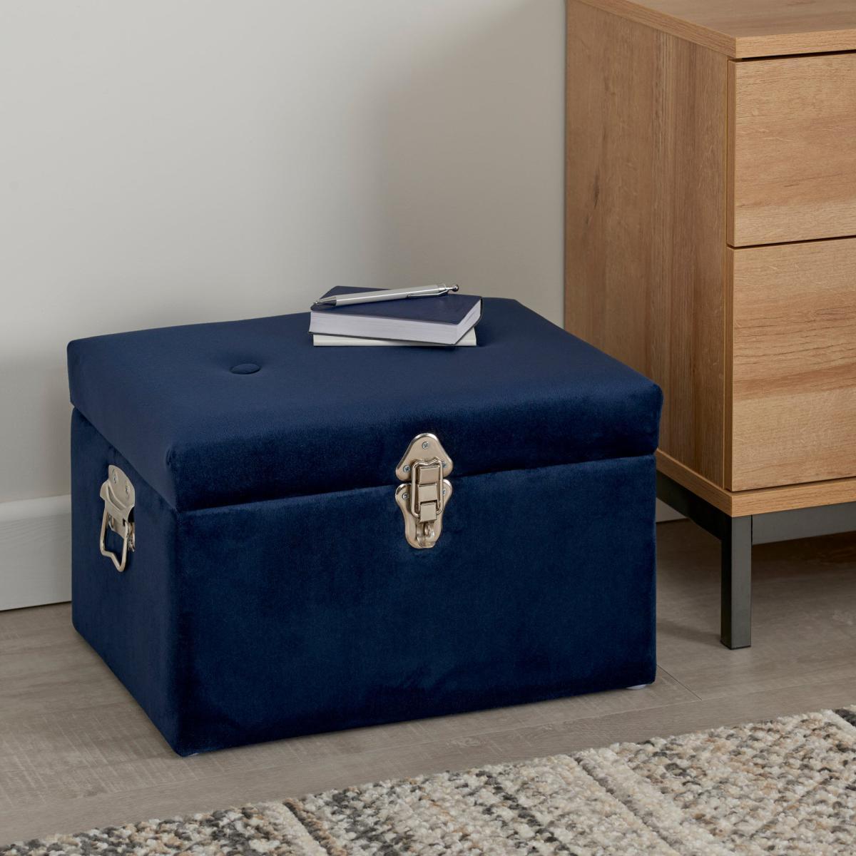 Designed for stylishly tidying away your clutter, this strong and versatile piece is made from a luxe velvet material, that will add a soft look and feel to your home. The modern luxe storage trunk has a glamorous navy colourway that will complement an array of home decors beautifully and practical handles, making it easy to move around the house. A storage trunk has never looked so good!. Please note: This item is intended for storage use only within a domestic environment, please do not use as seating.