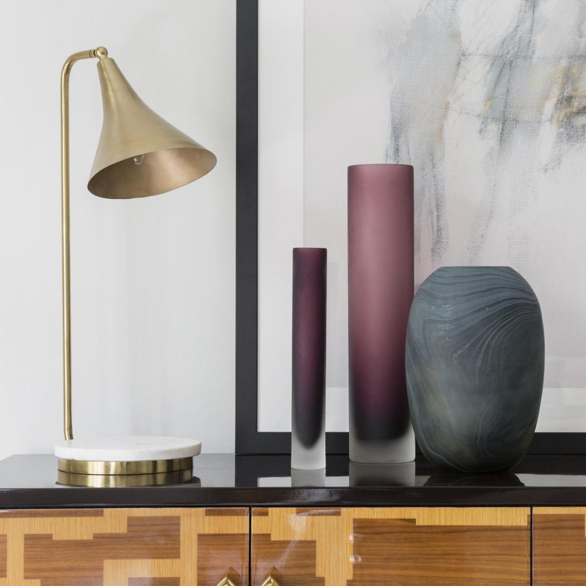 I love the tall glass shape of this purple vase - it’s ideal for creating a minimalist centrepiece or adding vertical interest to a shelf. Its deep hue offers a beautiful colour punch that works particularly well in contemporary or pared-back interiors, where colour accents are kept simple. Practical styling tips include pairing it with fresh or dried flowers in neutral tones to highlight its colour, or letting it stand alone as a sculptural object on its own. It’s versatile enough to sit on a sideboard, a mantelpiece, or even as a statement piece in a modern dining setting. Keep it styled with a few subtle accessories to let the colour and shape shine.