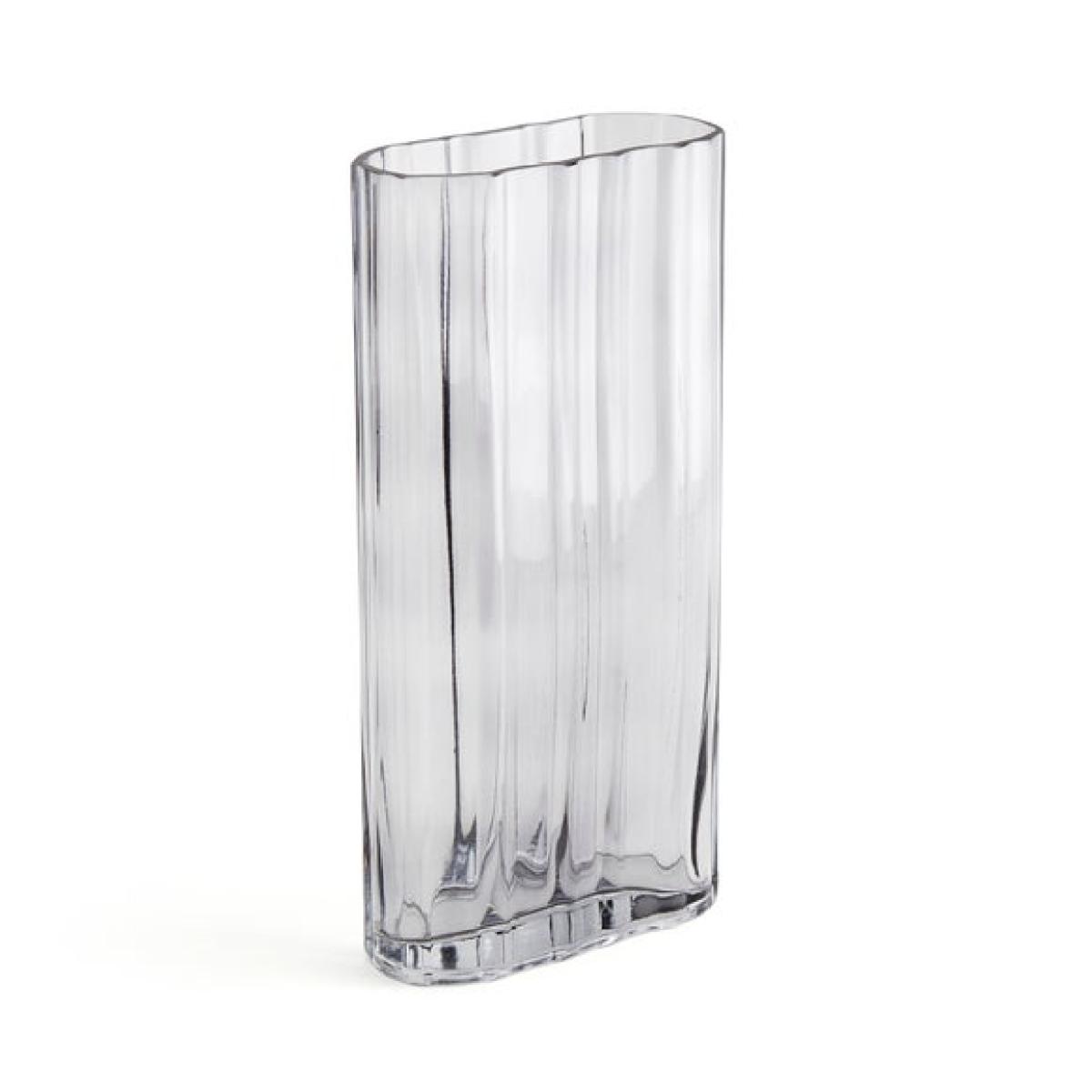 Luxe Ribbed Rectangle Grey Glass Vase