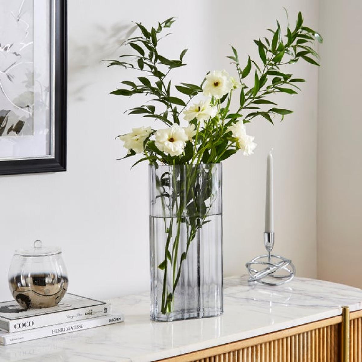I think the Luxe Ribbed Rectangle Grey Glass Vase is a versatile piece that works well in both contemporary and minimalist interiors. I love its clean lines and subtle ribbed texture, which adds visual interest without overwhelming other decor elements. It’s great for creating a striking centrepiece on a sideboard or console table, particularly when filled with fresh flowers or greenery. For practical styling, try pairing it with a mix of tall and trailing stems to add depth, or use it as a standalone statement piece for a modern, understated look. Its neutral grey tone makes it easy to incorporate into colour schemes, from cool greys and whites to warmer natural palettes.
