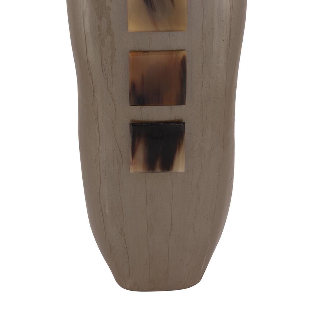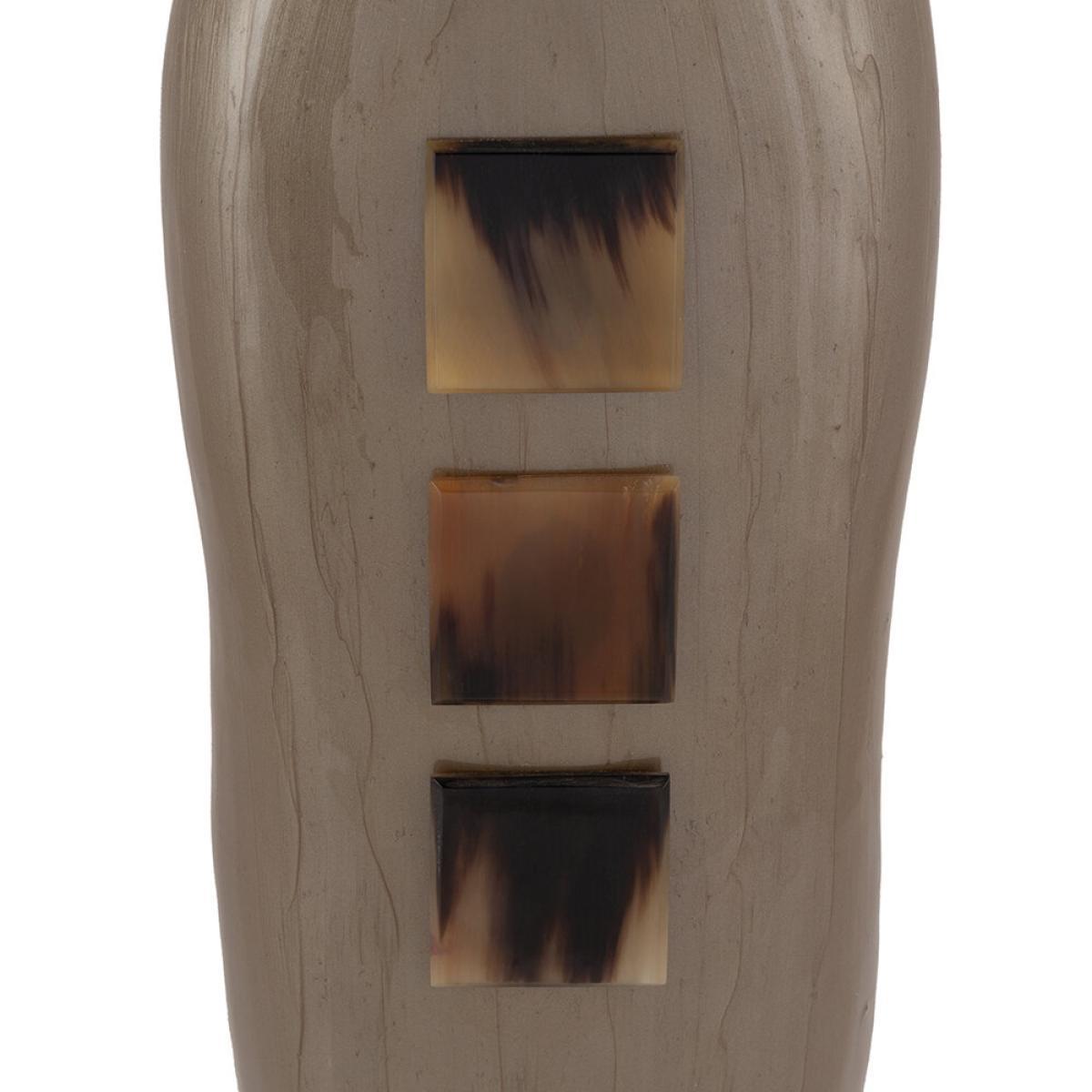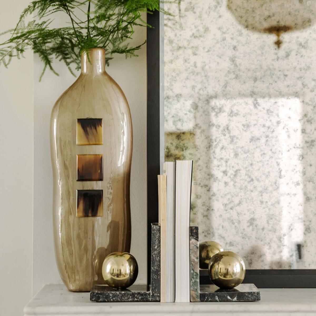 I love this large bottle for its unique enamel effect and understated elegance. It works particularly well in contemporary and minimalist interiors, adding subtle texture and visual interest without overwhelming the space. For styling, I’d recommend pairing it with understated floral arrangements or dried botanicals for a sleek, modern look, or letting it stand alone as a sculptural piece on a sideboard or mantel. Its neutral tone makes it versatile across colour schemes, and its sizeable form makes it a statement piece, especially in open-plan or monochrome schemes where it can really draw the eye. Keep it simple, and let its distinctive finish do the talking.