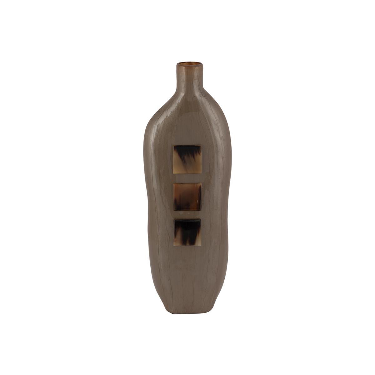 Add interest to any room with the Shrink Enamel decorative bottle from Luxe. Crafted from dark brown coloured glass, this curvaceous bottle is decorated with beautiful two-toned enamel squares. Available in two sizes, pair them together to create height and depth on a shelf or mantelpiece.