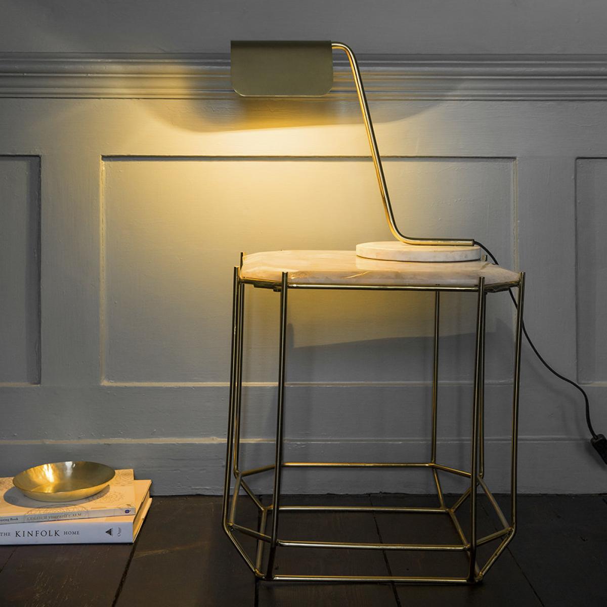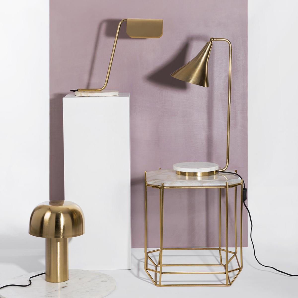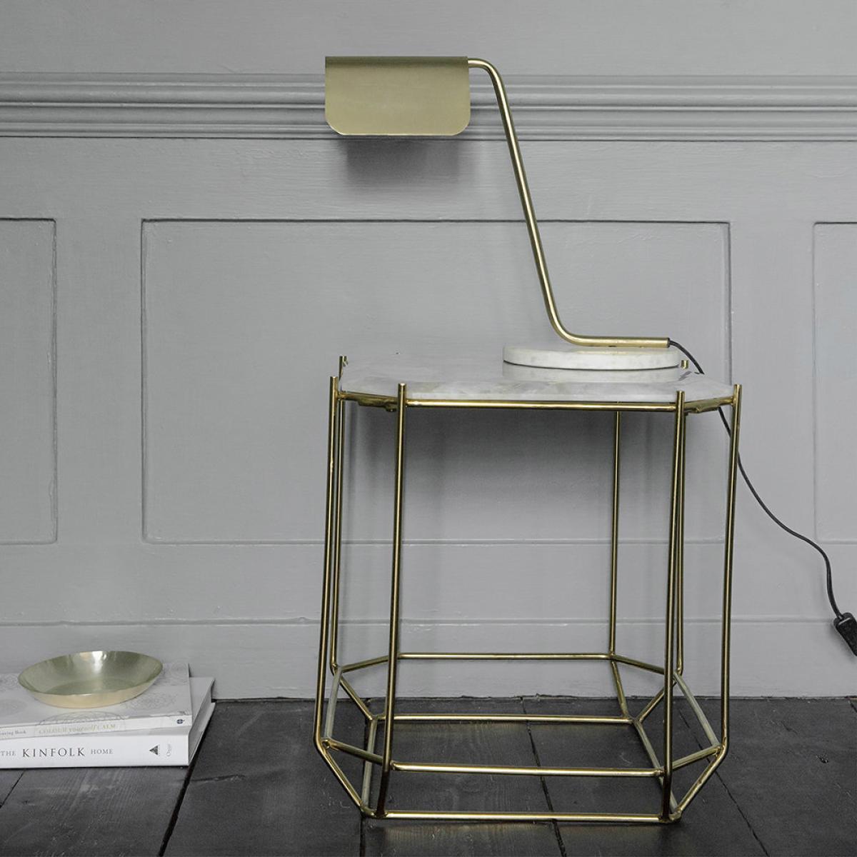 Give your interior some glam with this table lamp from Luxe. In a decadent brushed brass shade, this lamp has a hooded shade and a sloping, narrow neck. Finished with a white marble base, it’s a little hint of luxe for any room.