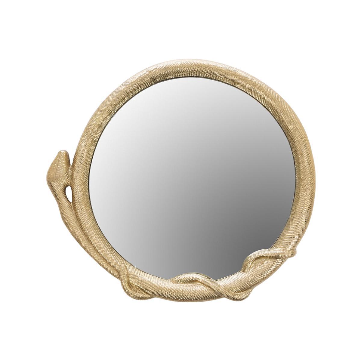I love this snake mirror for its luxurious gold finish and distinctive, sculptural shape. It works exceptionally well in both contemporary and eclectic interiors, adding a bold statement piece without overwhelming the space. It's ideal for use in dressing rooms, bathrooms, or as an accent in a living area, where its unique silhouette can truly shine. Practical styling tips include pairing it with other metallic accents to create cohesion or hanging it above a console table for an eye-catching focal point. Its rounded, organic shape also helps soften angular furniture, making it versatile for various interior styles.