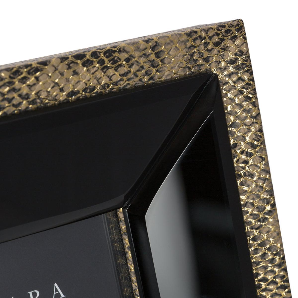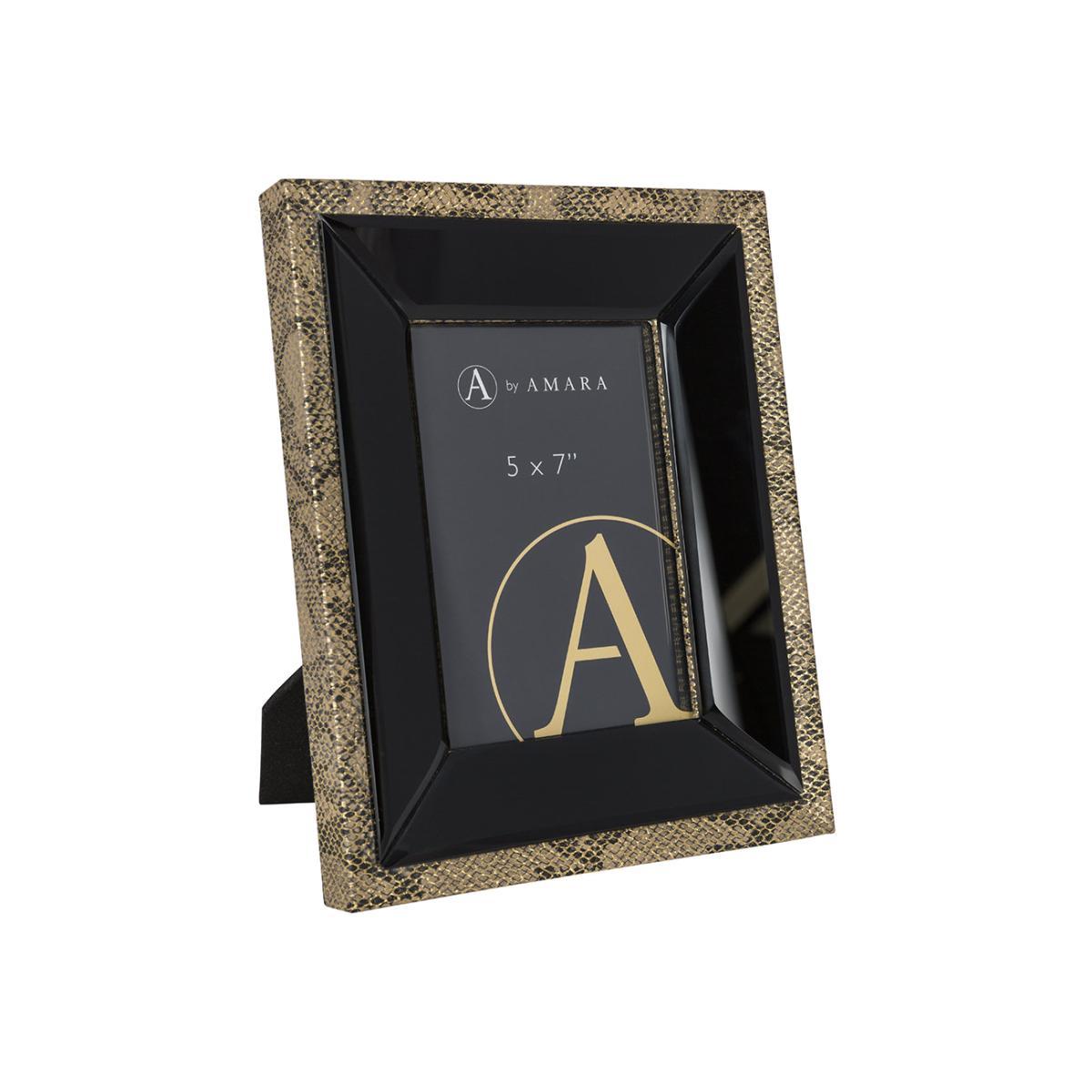 Showcase a favourite memory in style with this Snake photo frame from Luxe. With a forever-in-style snake print pattern and glossy black frame, it'll look the part on a side table or mantelpiece. Key features: * Photo frame available exclusively at AMARA * Material: metal, suede, glass * Dimensions: H15.5xW10cm * Aperture size: 5x7" * Snake print