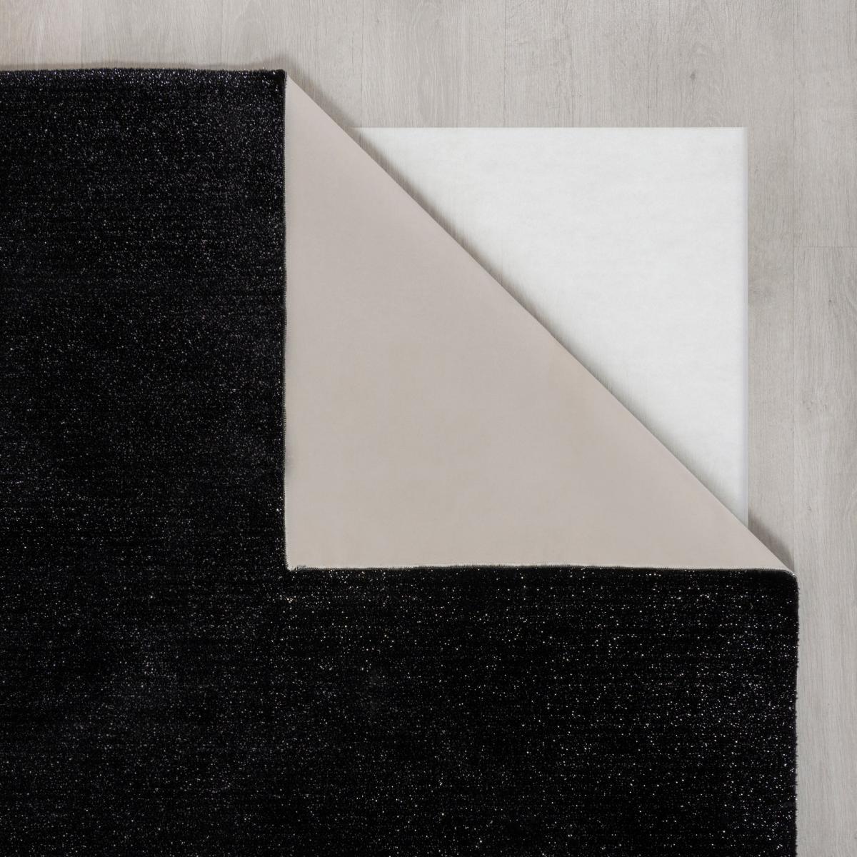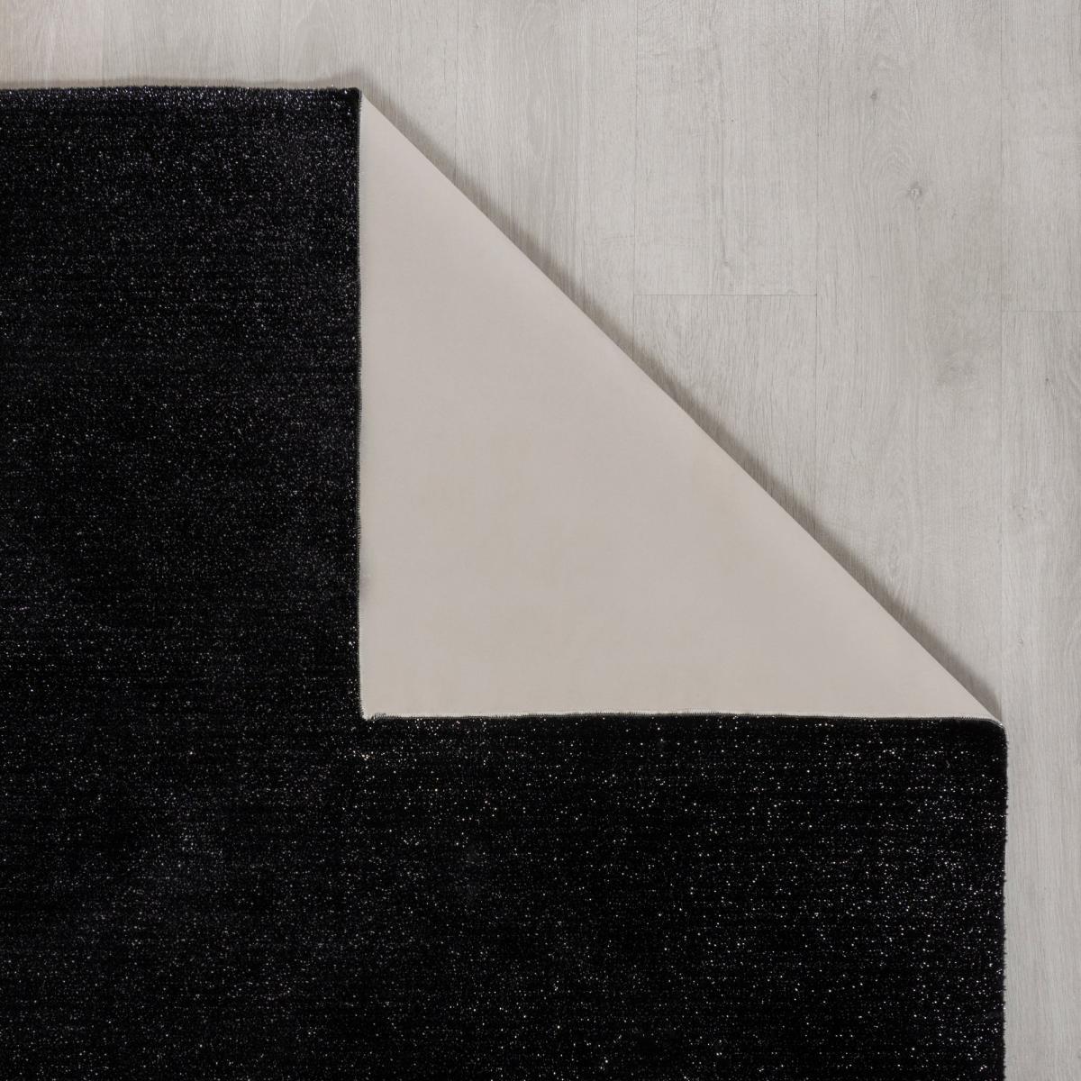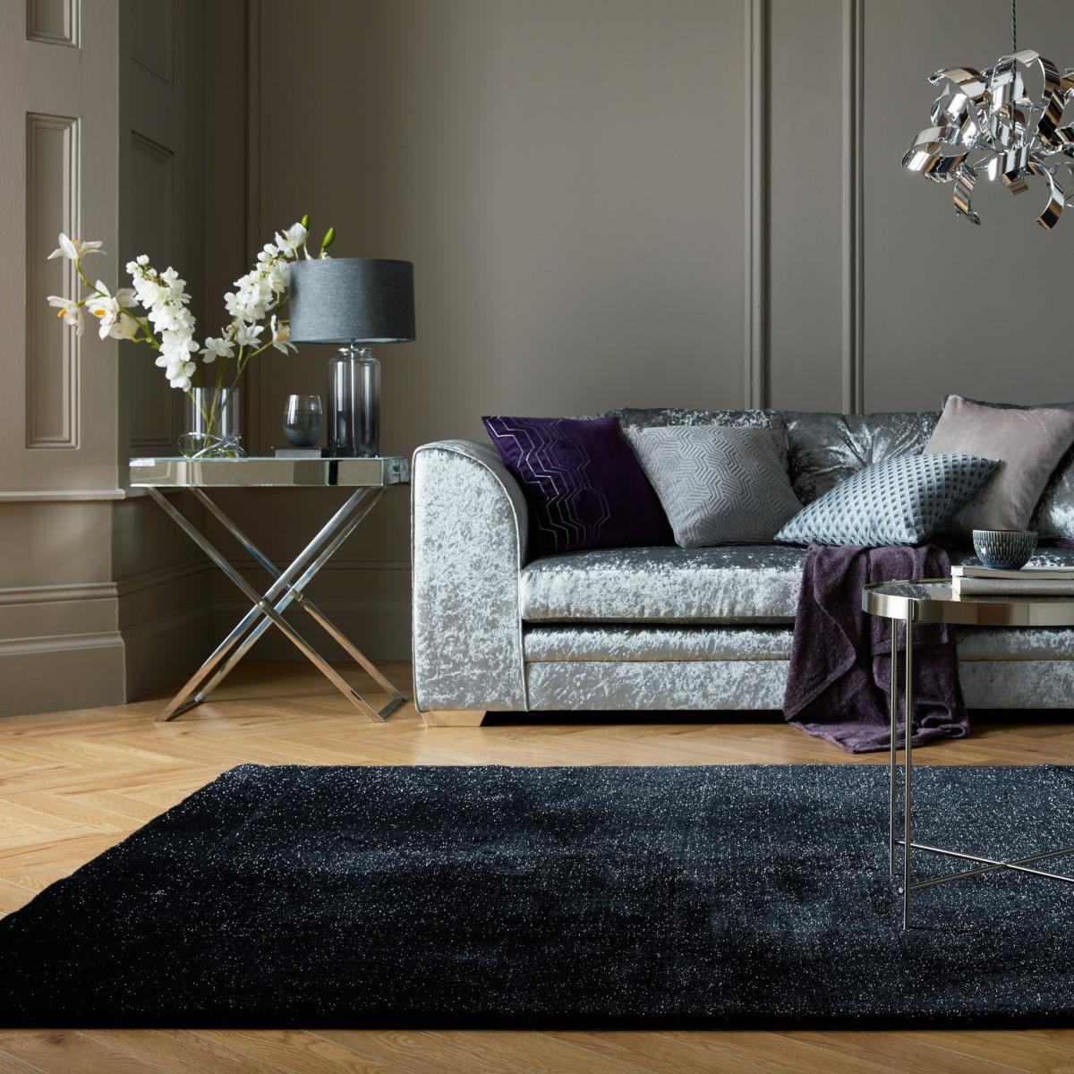 Add a touch of glam to your space with the Luxe Sparkle Rug. Sparkling Lurex yarns glimmer in a deep black pile for a maximum glitz effect. In a blend of polyester and lurex, the Lurex Sparkle rug is low maintenance with minimal shedding. We love using this design to add a glam touch of comfort to bedrooms and living rooms. This is a machine-made rug. When opening, re-roll your rug pile out and leave in a warm room for 24 hours before putting in place, this will help to reduce wrinkles and curling from packing. A small amount of fibre loss is normal on a new rug. Do not pull any loose threads, please cut them carefully with scissors to remove. Avoid prolonged exposure to direct sunlight as this may cause fading of the colour. Turn your rug regularly to ensure even wear and reduce pressure marks from furniture. Before using any cleaning products on your rug, test on an inconspicuous area first to ensure it does not affect the colour. Clean spills immediately by blotting with a clean dry white cloth - do not rub as this may stain the fibres. Vacuum your rug regularly to remove everyday dirt, we recommend the use of a suction type vacuum cleaner as a rotating vacuum brush can cause damage to the pile surface. We recommend the use of an anti-slip mat beneath your rug to prevent it from slipping and sliding out of place. Latex is used on the back of this rug. Please do not leave babies or young children unsupervised on this rug.