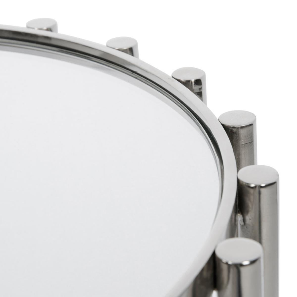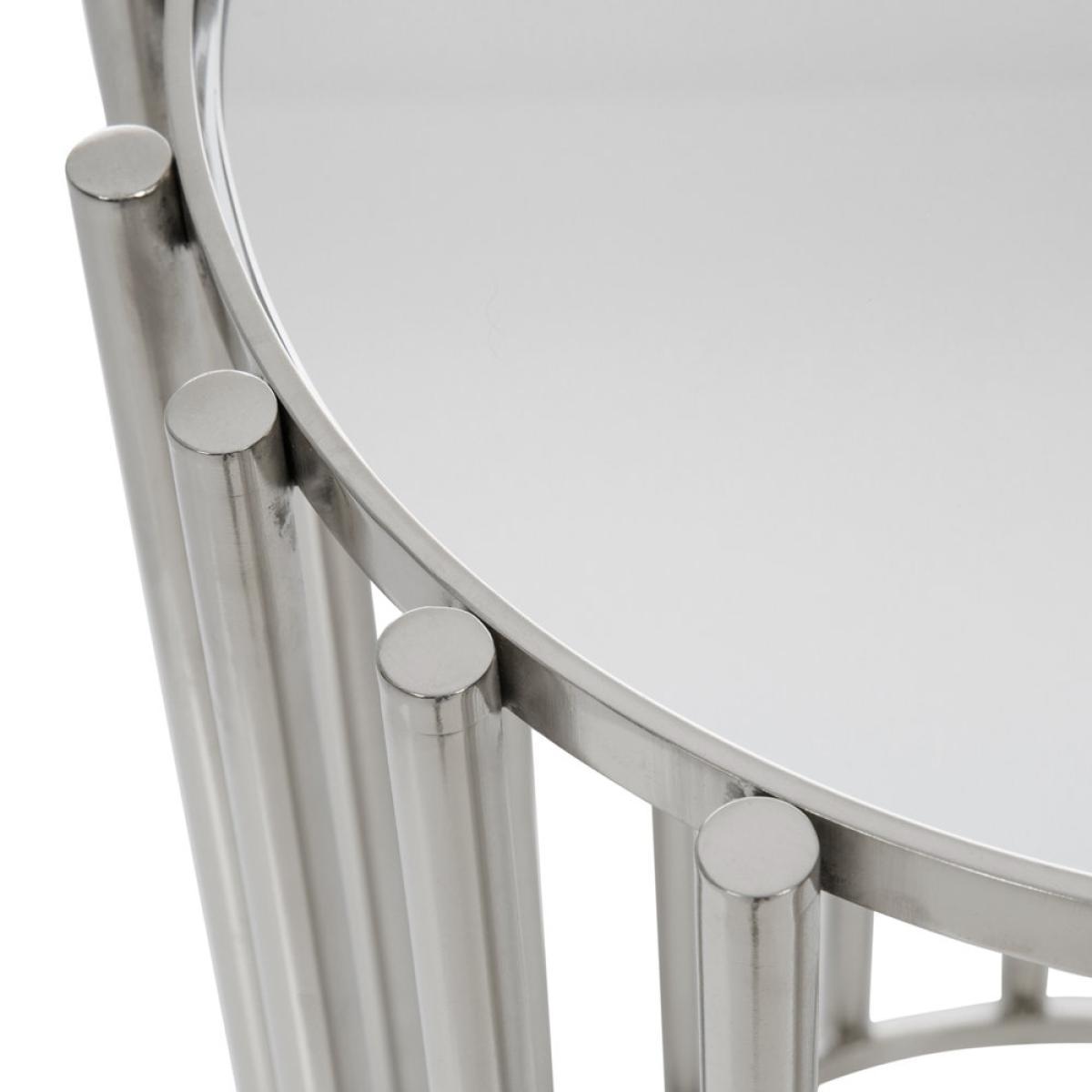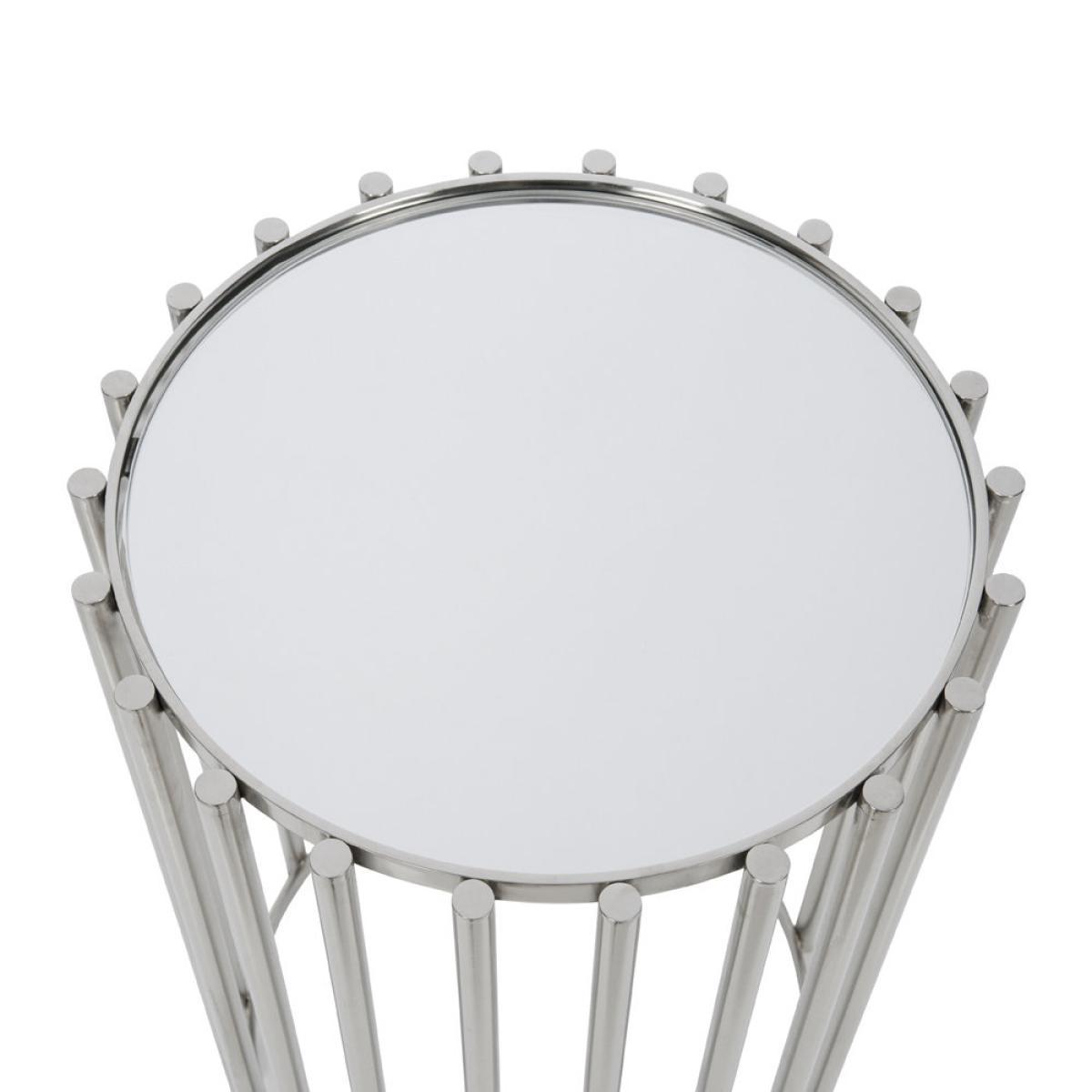 Go more glamorous in the home with this side table from Luxe. With a mirrored glass top, this table has a stainless steel base and is fabulous for holding accent lights in the living room.