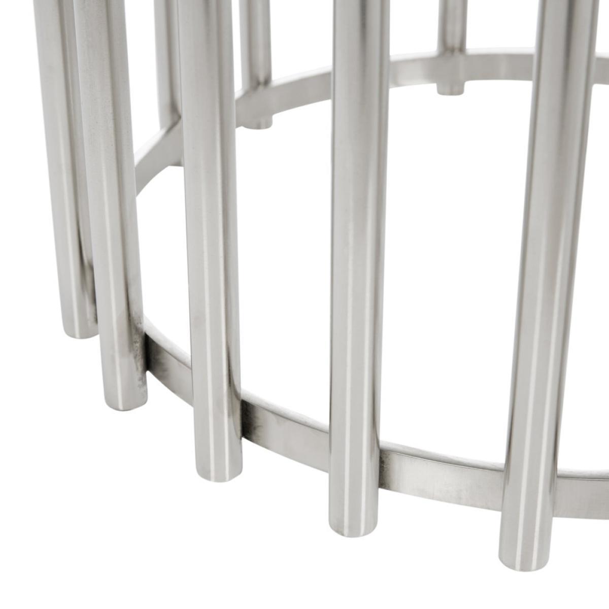 I love this side table for its sleek, modern appeal and reflective steel finish, which instantly adds a touch of contemporary sophistication. Its clean lines and mirrored top make it versatile enough to suit a range of interiors, from minimalist schemes to luxe, glamorous spaces. To style it effectively, consider placing a statement lamp, a small sculpture, or delicate plants on top to create visual interest without overwhelming the space. It works particularly well in living rooms or bedrooms where you want a functional yet stylish surface. To keep it looking its best, avoid placing it in overly humid areas or exposing it to harsh impacts, as the steel finish is striking but benefits from gentle care.