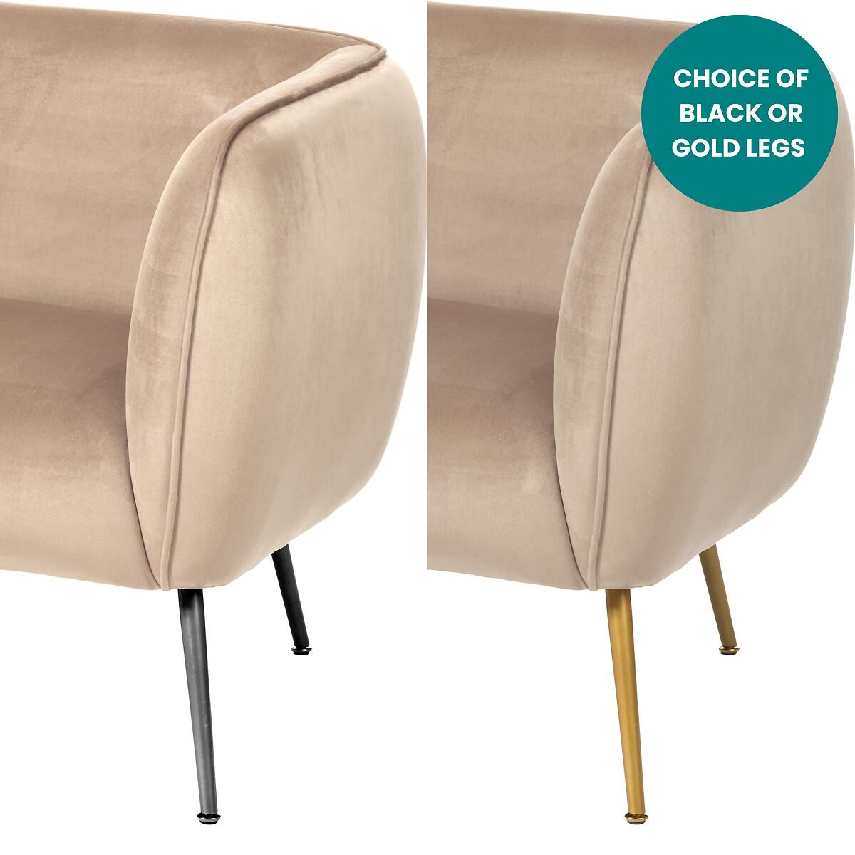 The perfect accent sofa for a cosy corner, the Luxe Velvet Sofa is supplied with both gold and black metal legs, so you can personalise the look to match your décor—or change it up whenever you feel like refreshing your space. A perfect balance of practicality and elegance, this versatile sofa works beautifully as occasional seating in living rooms, bedrooms, or stylish corners of the home. Product Details• Choice of matte gold or black splayed metal legs (both included)• Ergonomic design• Piped edging• Foam fillings• Curved back• Low deep seat• Foot protection pads included• Delivered fully assembled• Care advice:Wipe clean with a soft dry cloth• 1 year manufacturers warranty. Product Composition - Plywood 70%, Foam 18%, Chenille 10%, Steel 2%Product Dimensions - 142 cm x70 cm x70 cm , Weight - 18 KG• Seat height: 43 cm• Back height: 33 cm• Seat width: 80 cm• Seat depth: 48 cm• Arm height (from floor): 72 cm• Clearance to floor: 26 cm Package Dimensions - 142 cm x 70 cm x 49 cm, Weight 21 kg. This product will be dispatched by one of our trusted suppliers. You’ll be contacted by their selected courier about your delivery.