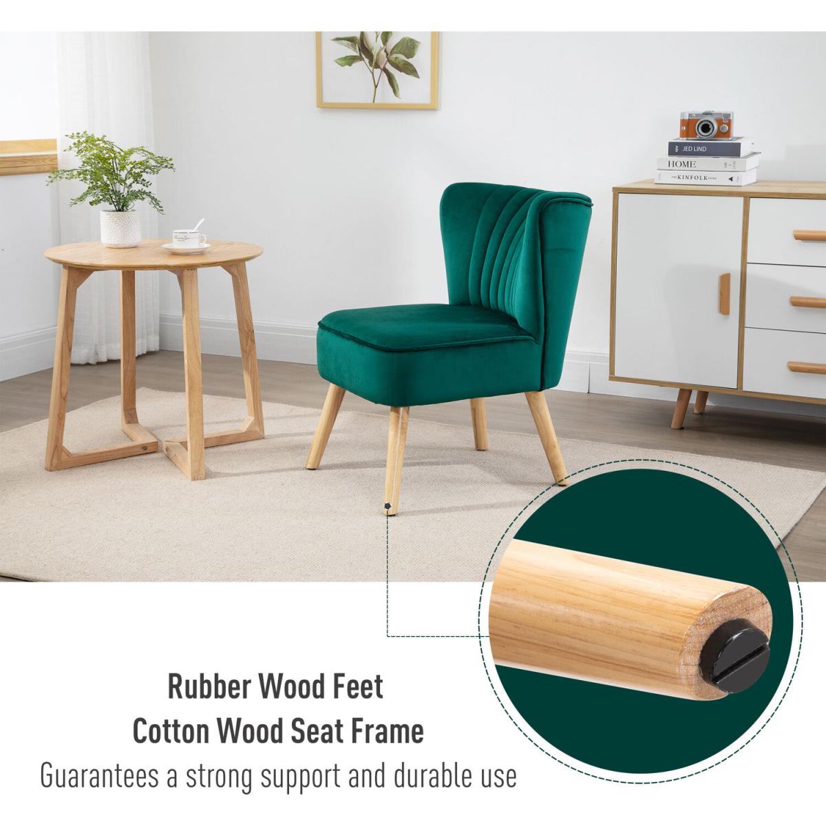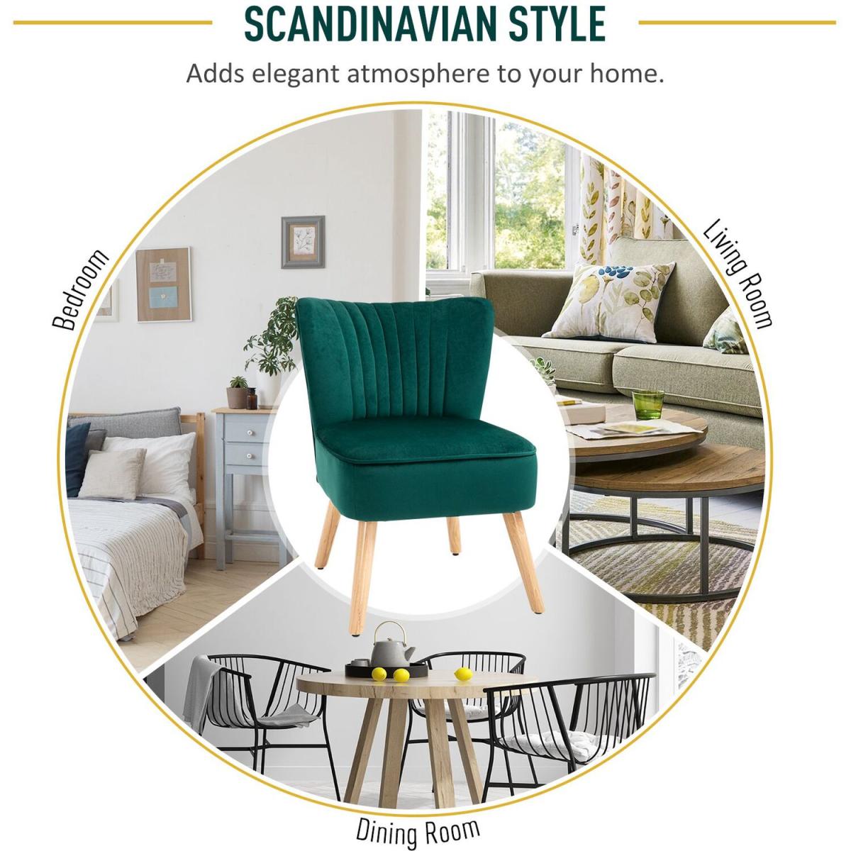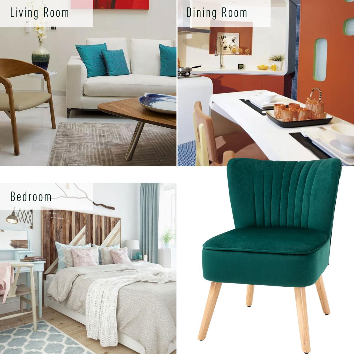 This green velvet armchair is a versatile piece that can really elevate a variety of interior styles, from contemporary to mid-century modern. I love its plush velvet texture, which adds a touch of luxury without feeling overly formal. It works particularly well in cosy reading nooks, living rooms, or even as a statement piece in a bedroom. For styling, consider pairing it with neutral tones or natural materials like woven rugs or wooden coffee tables to create a balanced look. Practical tips would include using it as a pop of colour in a mostly monochrome palette or mixing it with other rich textures for a layered, inviting vibe. Its armless design makes it easy to place in tight spaces or arrange alongside other seating arrangements.