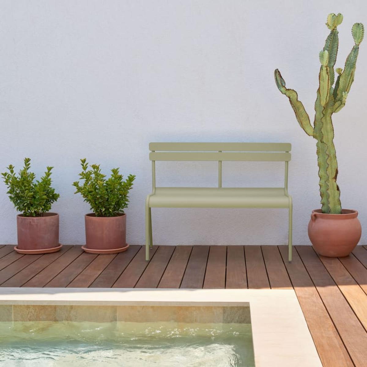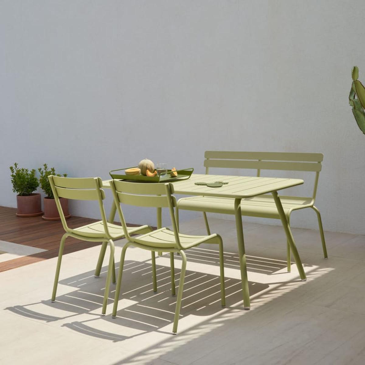Fermob asked designer Frédéric Sofia to reinterpret the legendary SENAT armchair from the garden of LUXEMBOURG through a range of Aluminium furniture of the same name. The result is a fabulous outdoor collection that aspires to joie de vivre: ''In designing furniture to accompany the armchair from the Luxembourg garden, I sought subtle lines, respectful of the oh-so-French style of the 1920s, that invite you to discover the simple pleasures of time spent in the secrets of your garden''. This Bench has all the charm of the old, but without the drawbacks (resistant, lightweight). Made in Designit offers it in a multitude of bright, cheerful colors.