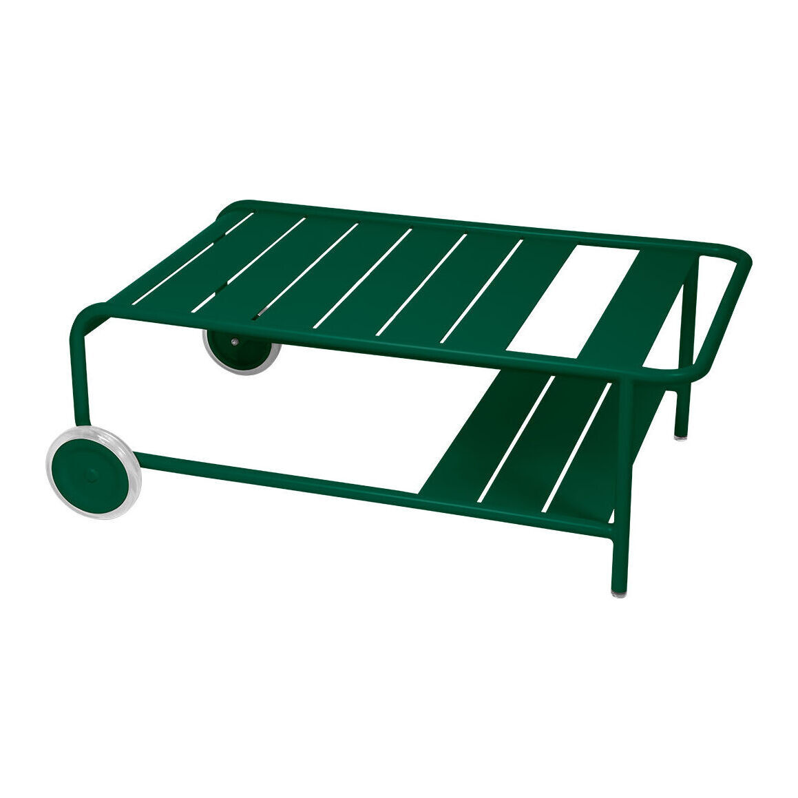 At Fermob, your wish is our command with this low metal table from the iconic Luxembourg range, which we know you will fall in love with! Or will this be the first time you treat yourself to a piece of furniture which is synonymous with the French art de vivre? Frédéric Sofia has designed this quirky low table with wheels in his signature style to be the perfect piece for your outdoor needs. In the mood for a delicious lunch in the shade of the olive trees? Fancy an aperitif by the pool? Dinner on your patio overlooking the sea? Easy to move around thanks to its wheels and handle, this table is perfect whatever the occasion! Its lower shelf makes it ideal if you’re looking for somewhere to leave bottles, jugs, plants and magazines. This designer low table is incredibly solid and is also weather- proof and UV-resistant, making it the perfect choice for fans of fun and bright furniture. That’s no surprise! It’s been lovingly created Fermob’s experts with a real attention to detail. Ready for you to welcome the iconic Luxembourg collection into your garden or patio! And so that your stunning low table with wheels does not get lonely, why not fall for some lounge chairs or armchairs from the same collection? Just like the table, they come in the 24 shades available in Fermob’s colour chart! For that guaranteed wow effect and a gorgeous outdoor living space!.