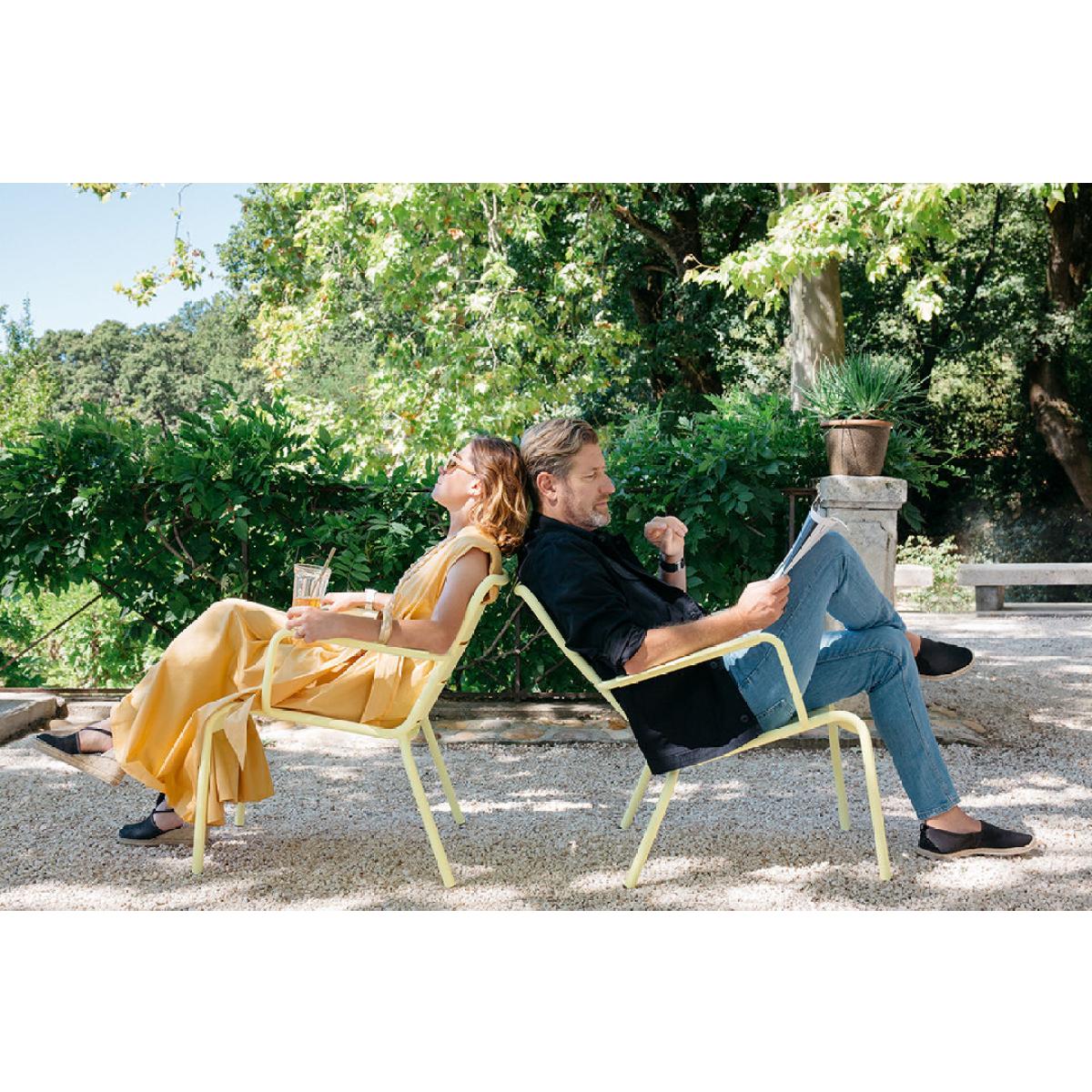 Ah. Luxembourg, A name that inspires dreams! This iconic collection from Fermob and reworked for the modern era by the designer Frédéric Sofia is truly timeless! Treat yourself to the French art de vivre. Create an outrageously stylish outdoors with no need to skimp on comfort as this armchair is even more enjoyable in its updated look - the backrest is perfectly positioned so you will have a wonderfully sense of comfort while sipping on cocktails or grabbing a bite to eat from the Luxembourg low table with wheels. Let the armchair’s curved slats that are designed to fit the shape of your body give you that relaxing feeling. The Luxembourg lounge, a metal garden armchair, is made with a lightweight aluminium frame to withstand UV exposure and all kinds of weather. This piece of furniture has been designed to last even with the sea air. This timeless designer garden armchair is guaranteed to give a truly unique feel to your outdoor space! All you need to do is choose from the wide range in Fermob’s colour chart and decide whether to pair the chair with the Luxembourg low table with wheels and the lounge chair for a stunning garden space!.