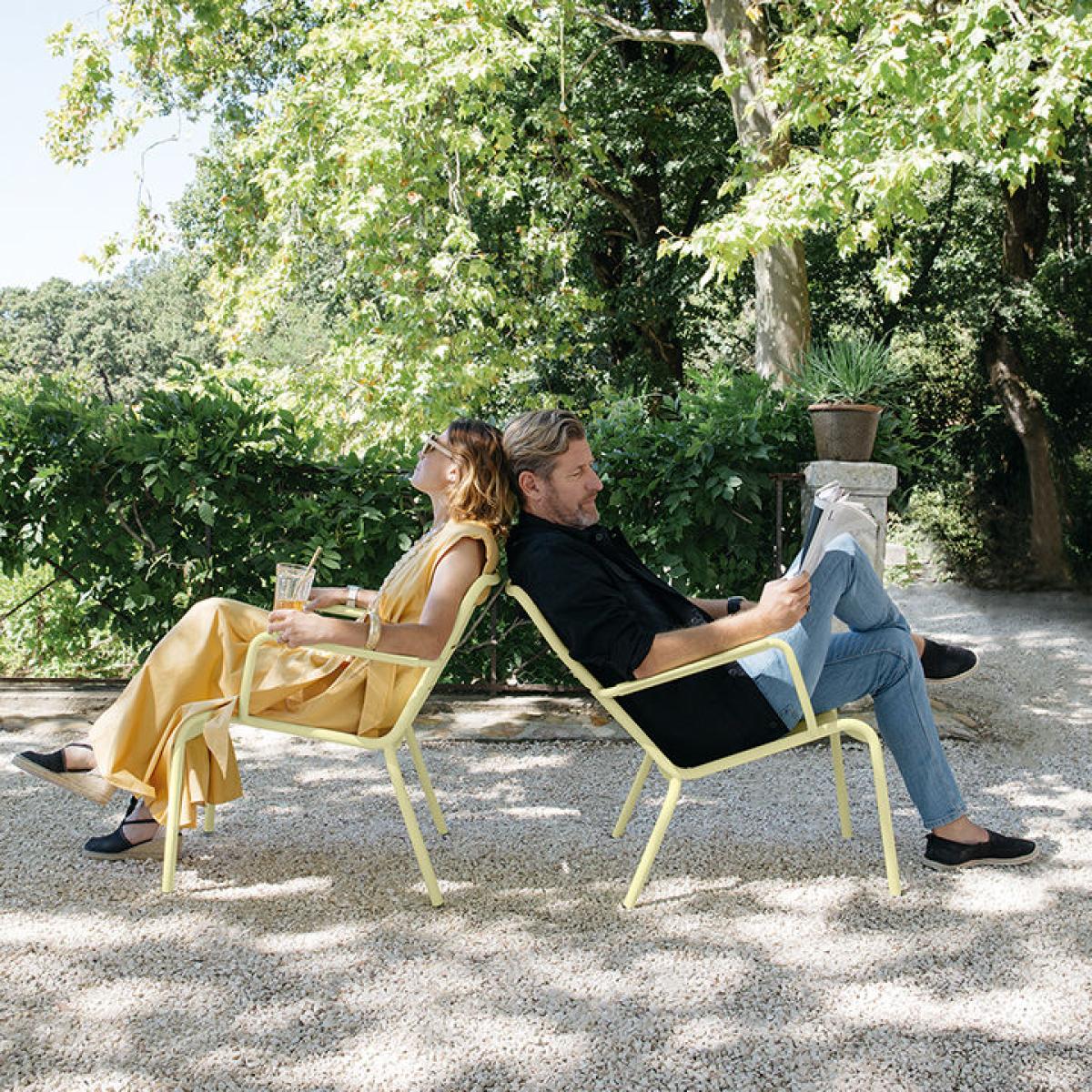 Ah... Luxembourg. A name that inspires dreams! This iconic collection from Fermob and reworked for the modern era by the designer Frédéric Sofia is truly timeless! Treat yourself to the French art de vivre. Create an outrageously stylish outdoors with no need to skimp on comfort, as this armchair with its armrests is even more enjoyable in its updated look - the backrest is perfectly positioned so you have a wonderful sense of comfort while sipping on cocktails or grabbing a bite to eat from the Luxembourg low table on wheels. Let the armchair’s curved slats that are designed to fit the shape of your body give you that relaxing feeling. The Luxembourg lounge, a metal garden armchair, is made with lightweight aluminium to withstand UV exposure and all kinds of weather. This piece of furniture has been designed to last, even in the sea air. This timeless designer garden armchair is guaranteed to give a truly unique feel to your outdoor space! All you need to do is choose from the wide range in Fermob’s colour chart and decide whether to pair the chair with the Luxembourg low table on wheels and the lounge chair from the same range for a stunning garden space!