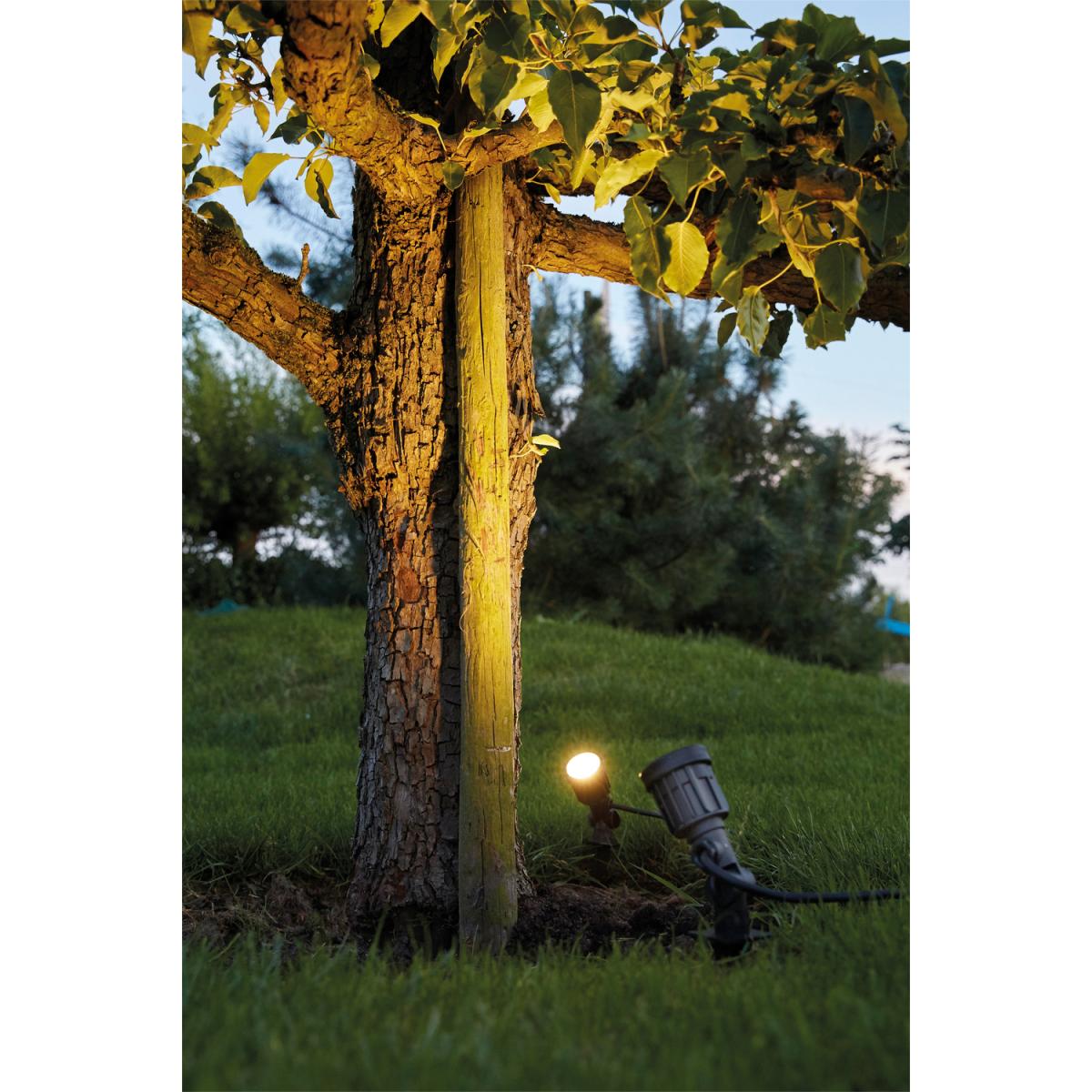 This 230v spotlight is suitable for illuminating statues, water features, bushes and trees. A ground spike is provided so that the light can be placed into the soil. This light works on 240 V. Before installing this product, always make sure you turn off the electricity using the mains switch! This light is manufactured in UV resistant plastic.