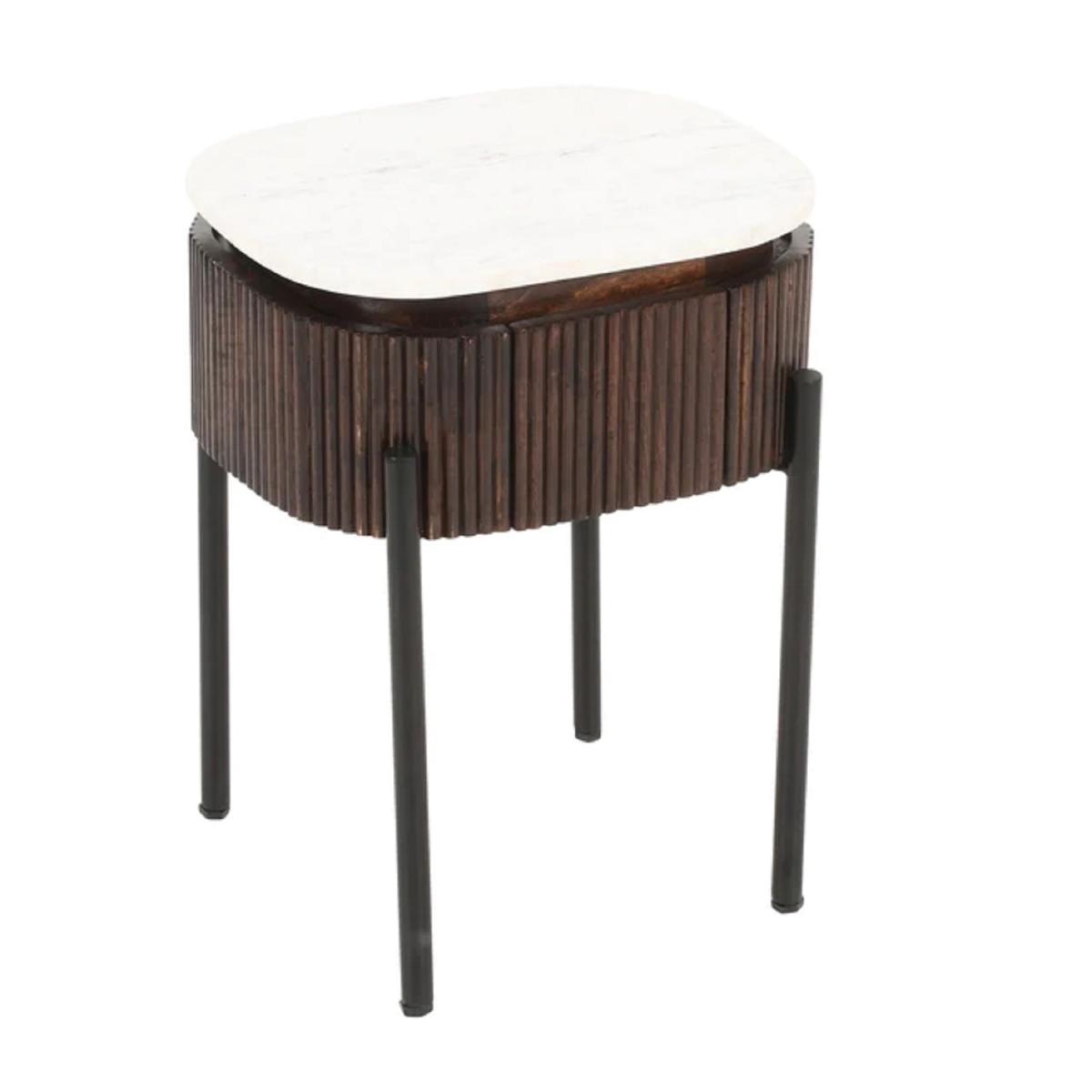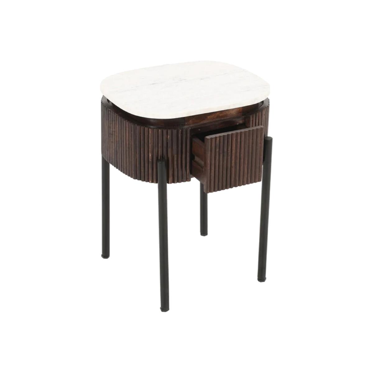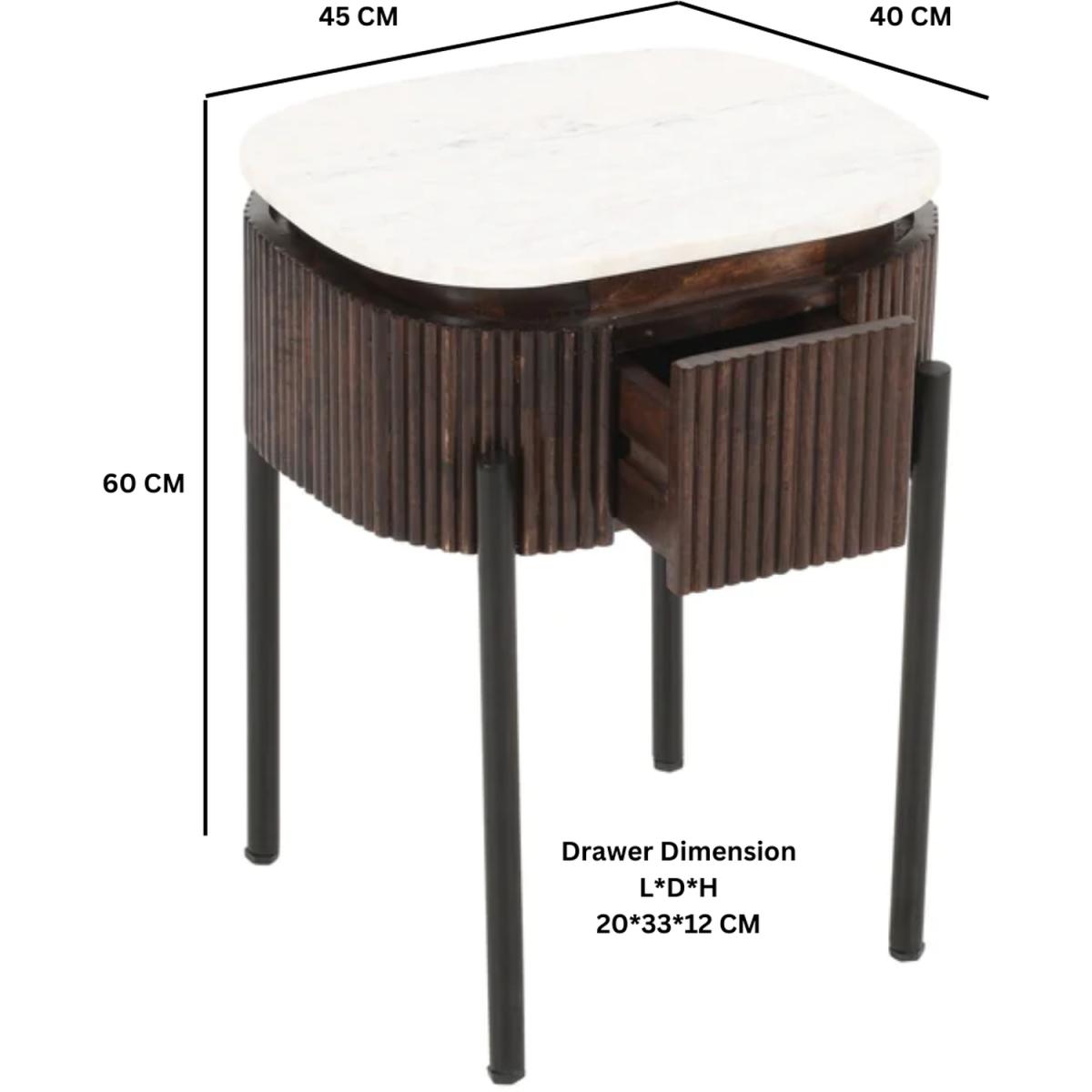 The Luxor Mango Wood Bedside Table with Marble Top Metal Legs is a beautifully designed piece of furniture that adds elegance and sophistication to any bedroom. Handmade from high-quality mango wood, this bedside table is built to last and features a stunning marble top that adds a touch of luxury to the piece. The table is finished with a lacquered coating, which gives it a sleek and modern look and protects the wood from scratches and stains. Measuring 45x40x60 CM (LxDx. H), this bedside table is the perfect size for any bedroom, providing ample space for your bedside essentials. The limited assembly required means that the table can be set up quickly and easily, with all the necessary hardware and instructions included. The mango wood legs and metal frame of the table provide a sturdy foundation, ensuring that the table is robust and durable. The marble top provides a smooth and sturdy surface for displaying items or organizing essentials. The sleek and modern design of the table makes it easy to incorporate into any bedroom decor style. Overall, the Luxor Mango Wood Bedside Table with Marble Top Metal Legs is a stunning piece of furniture that combines functionality with style. The high-quality materials, limited assembly, and top-notch durability make it a perfect addition to any bedroom. With its elegant design and luxurious finish, it is sure to be a standout piece in any home.