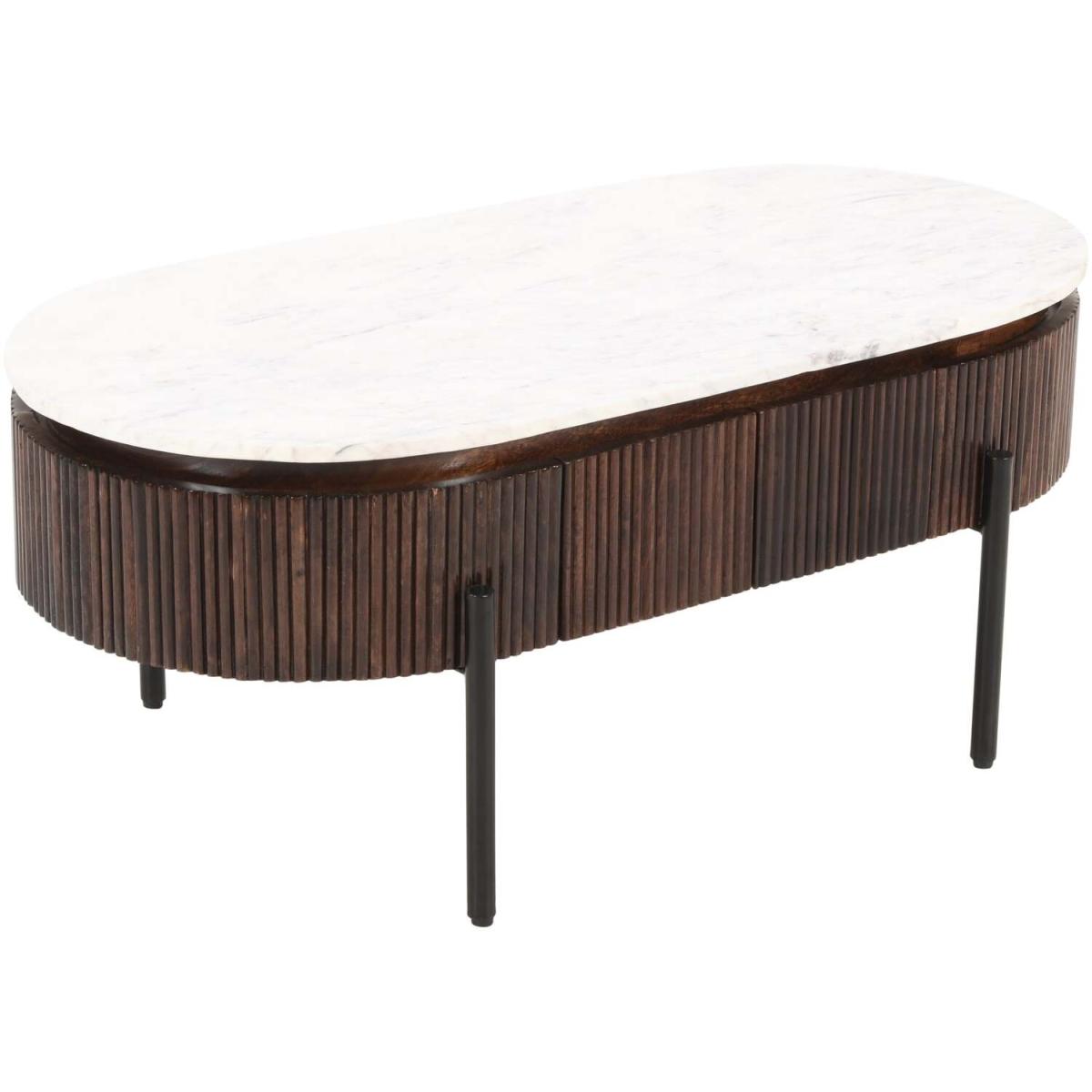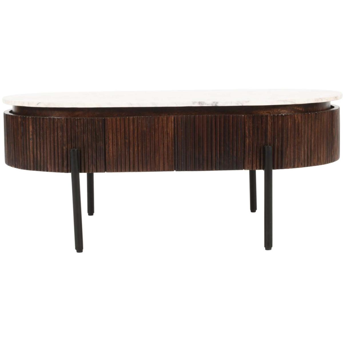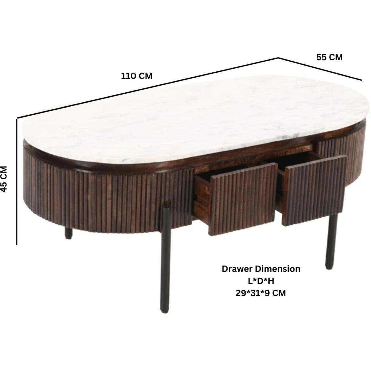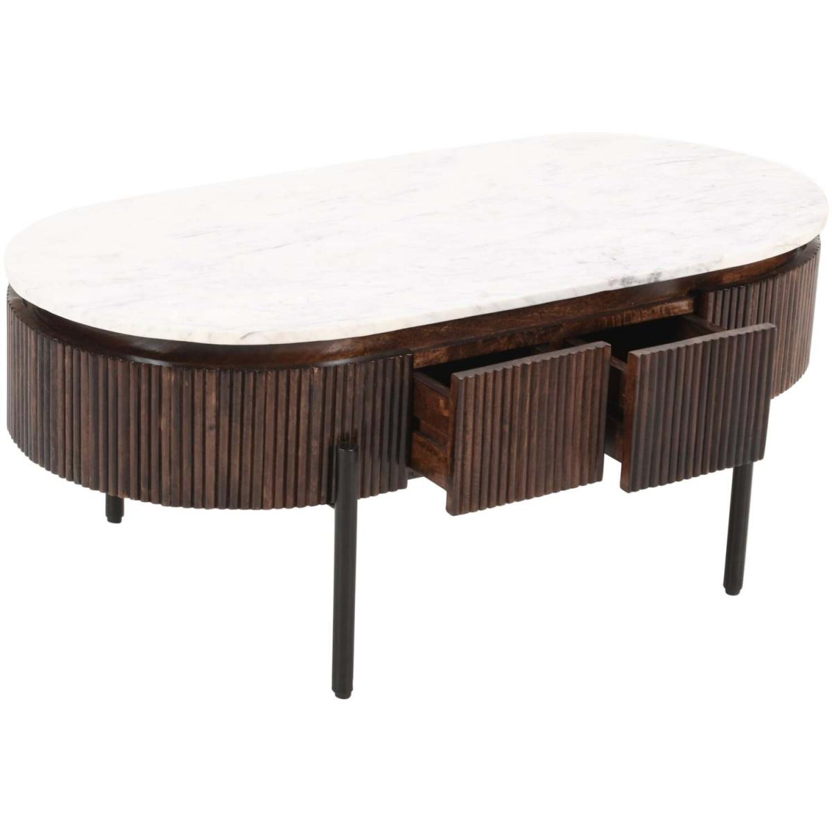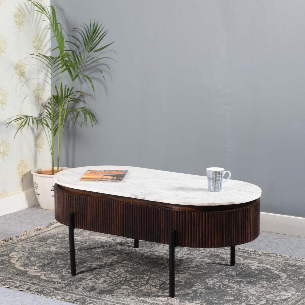 This beautiful coffee table is handcrafted from high-quality mango wood and features a fluted design that adds a touch of sophistication to any living space. The table is topped with a luxurious marble top that is both durable and stylish, and the metal legs provide sturdy support. The table measures 110x55x45 CM (LxDx. H), making it the perfect size for a living room or family room. The limited assembly required means that you can enjoy your new table in no time. The table is made from MANGO wood, a durable and sustainable material that is known for its strength and beautiful grain patterns. The lacquered finish adds a sleek and modern touch to the design, while also protecting the wood from wear and tear. Overall, this coffee table is a beautiful and practical addition to any home, combining high-quality materials, elegant design, and functional features.