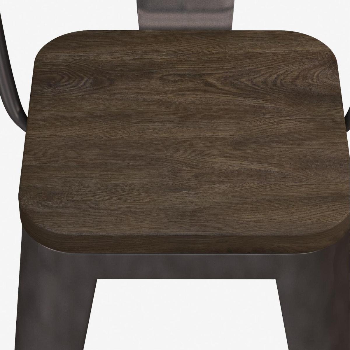 The Luxor 30" Metal Bar Stool with a wood seating surface is highly fashioned with a distressed finish and antique metal design. This urban counter stool is a classic statement piece, making it a perfect dining and conversation seat.