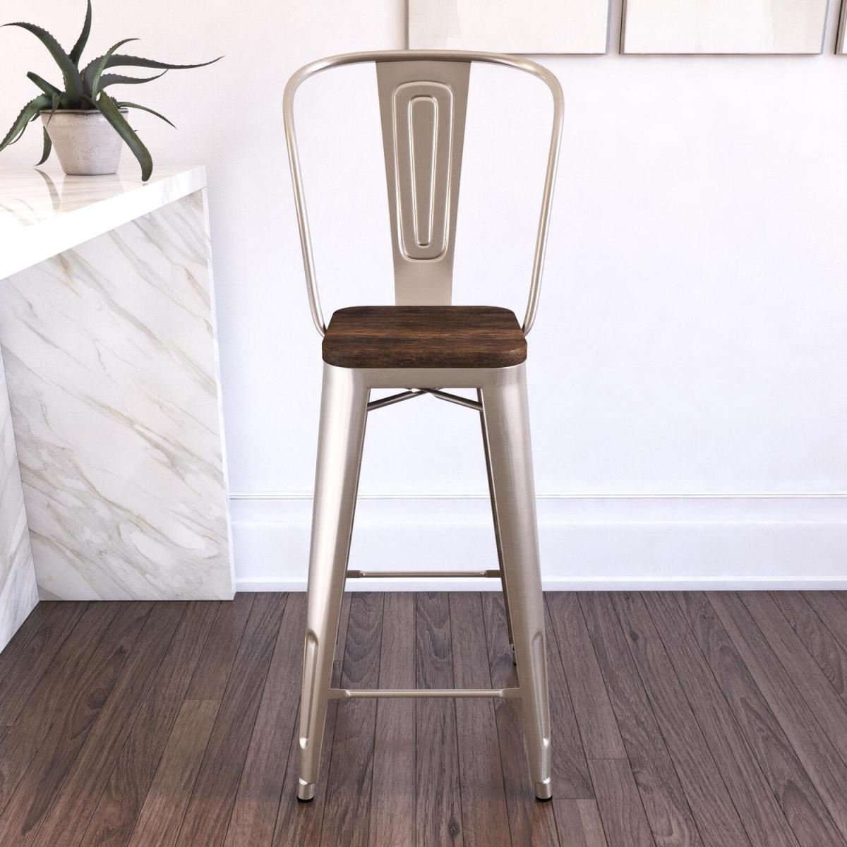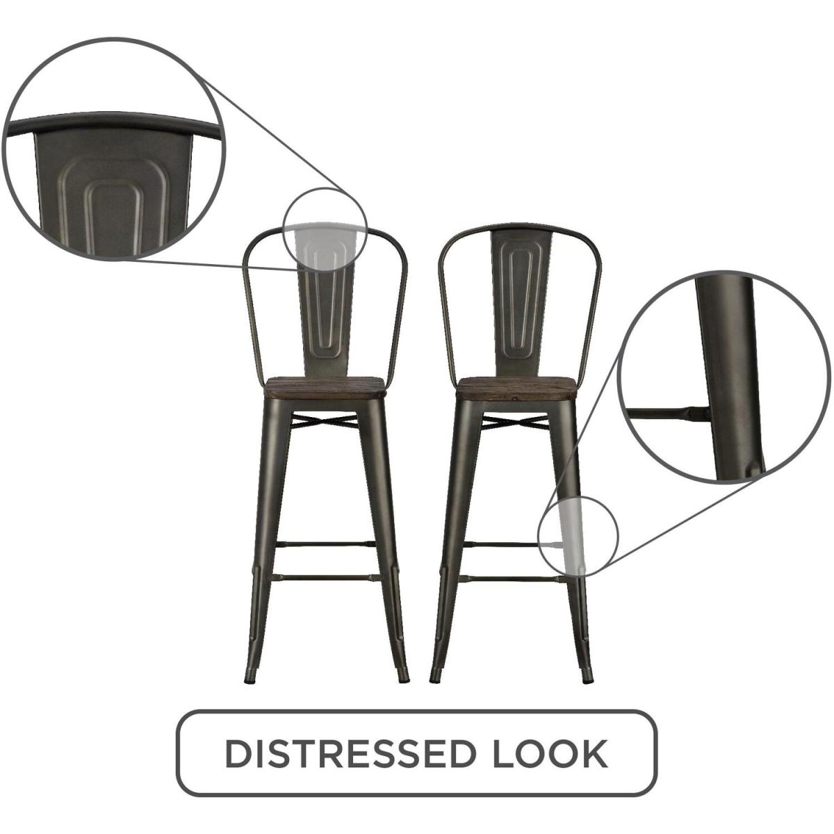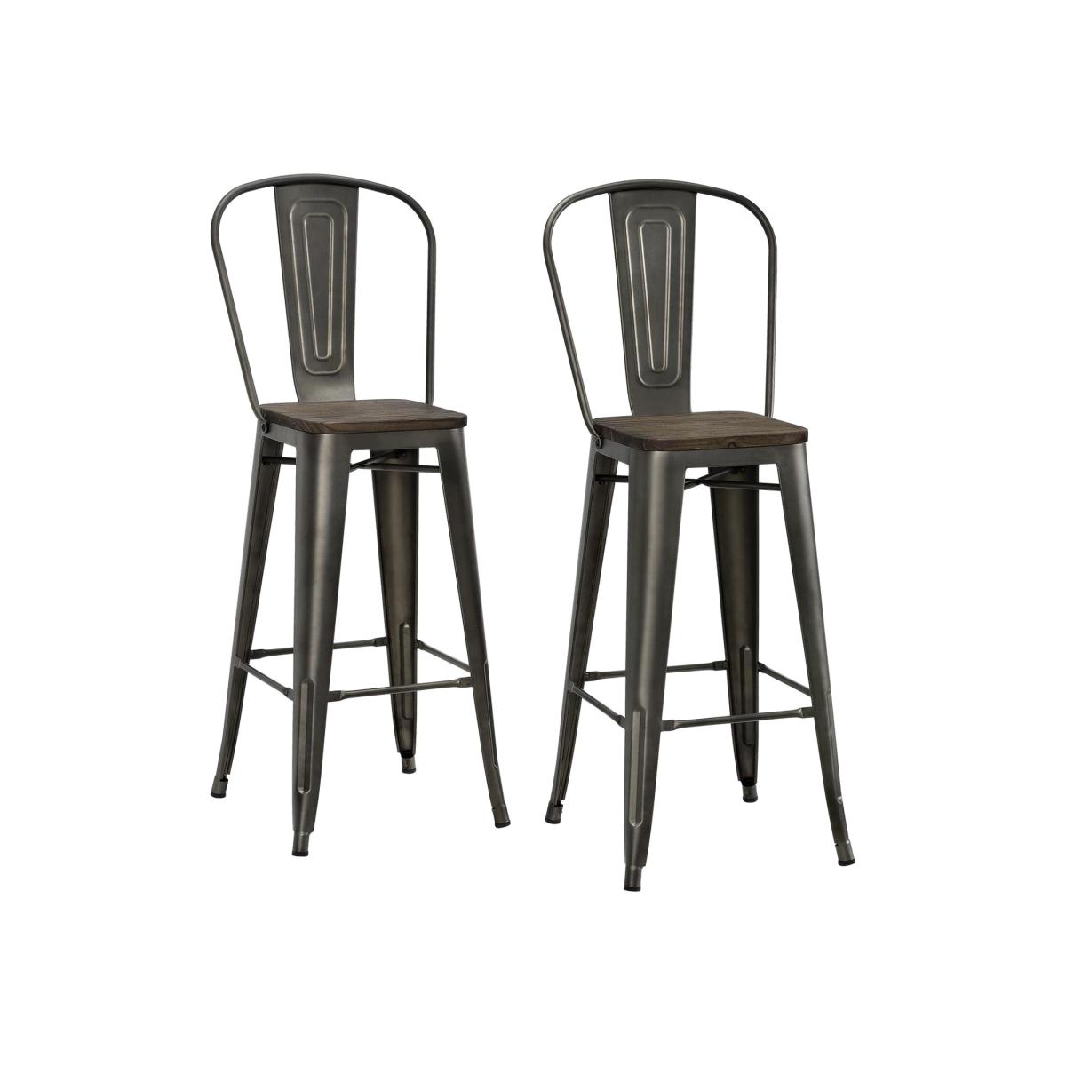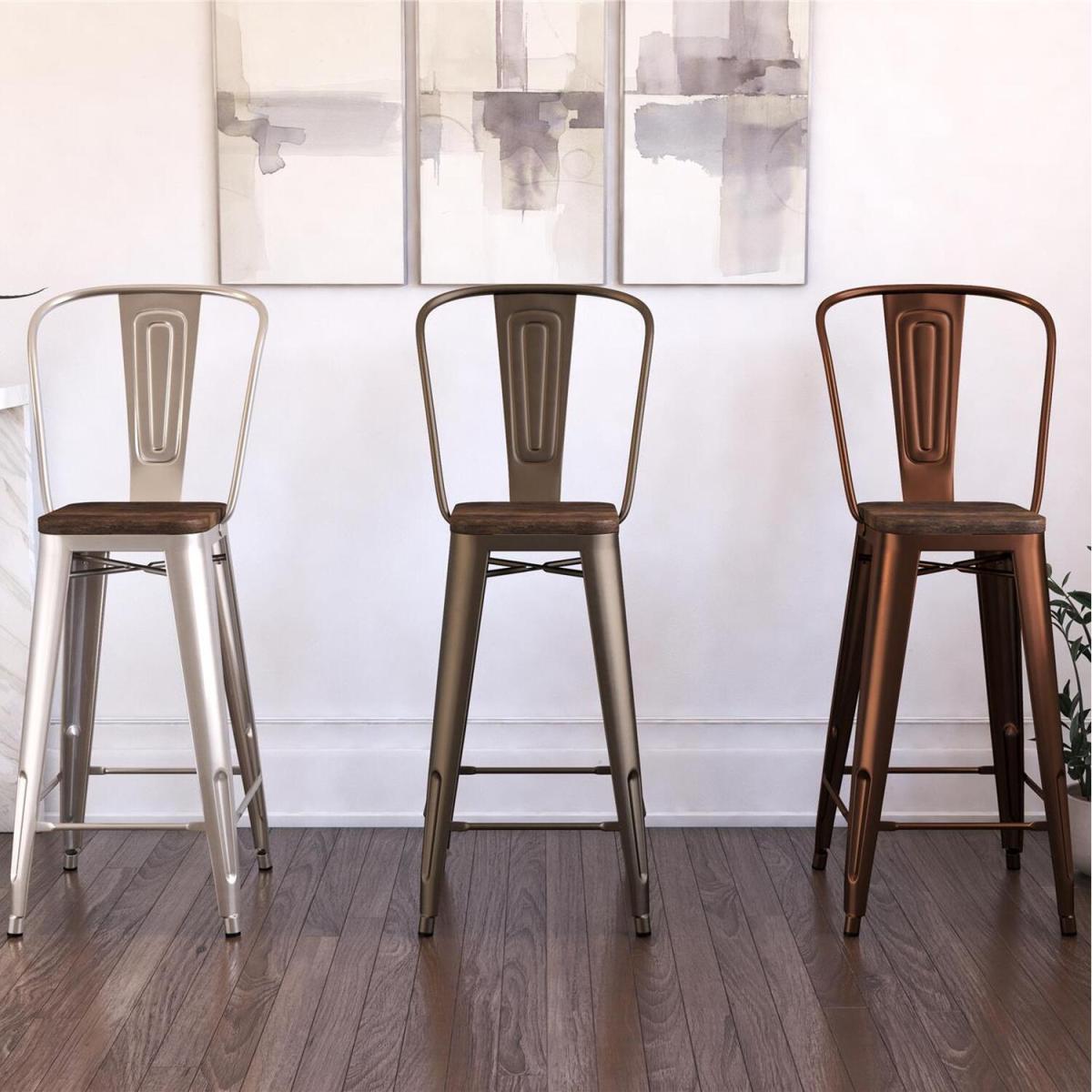 The Luxor 30" Metal Bar Stool with a wood seating surface is highly fashioned with a distressed finish and antique metal design. This urban counter stool is a classic statement piece, making it a perfect dining and conversation seat.