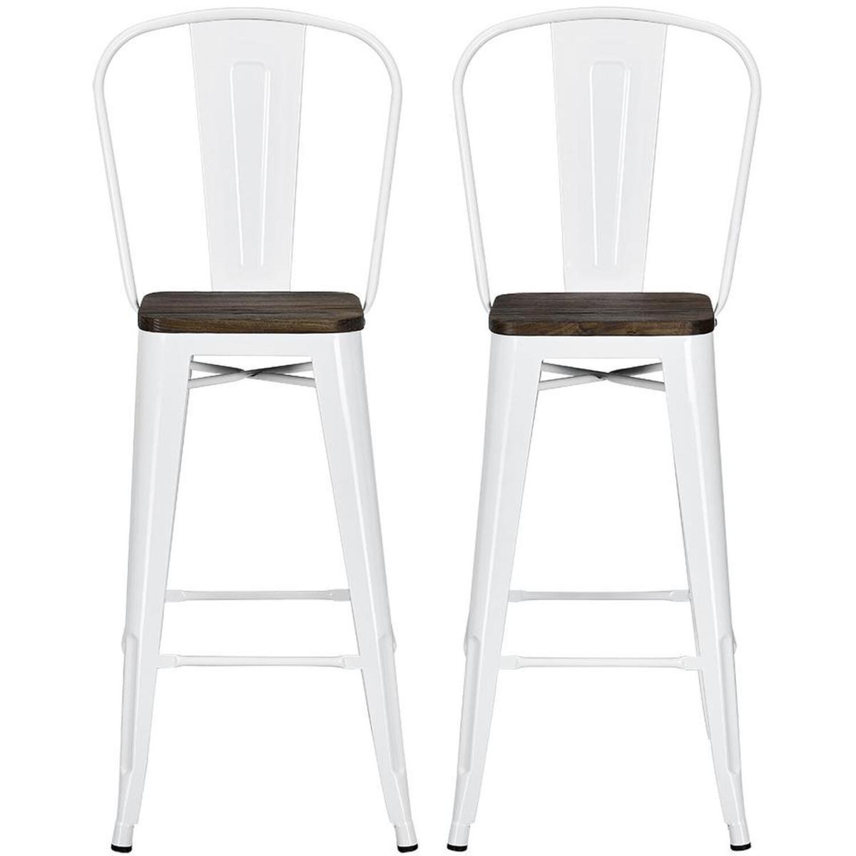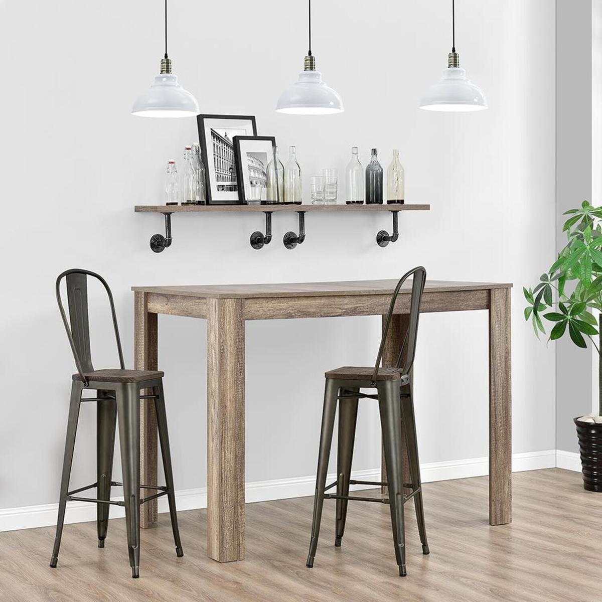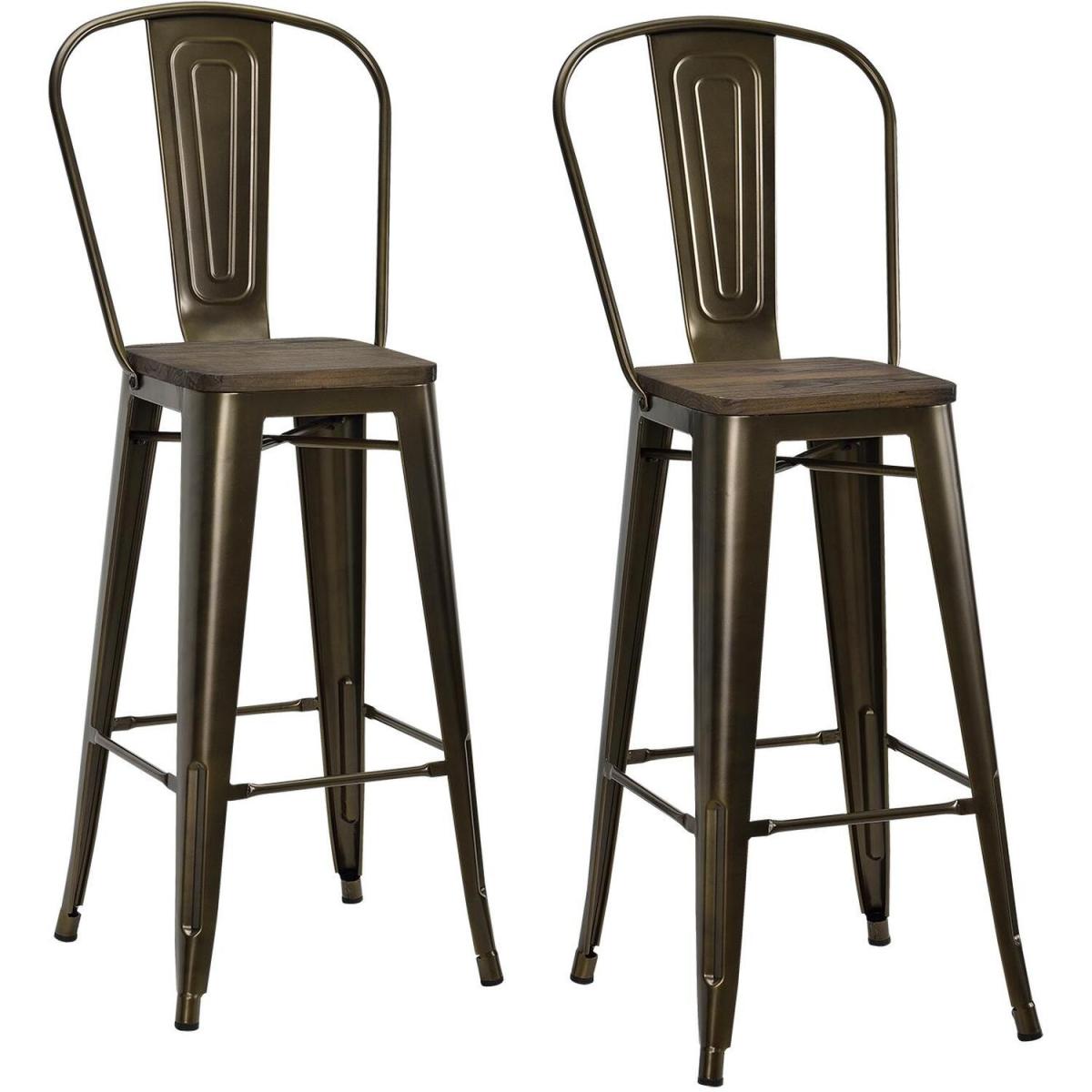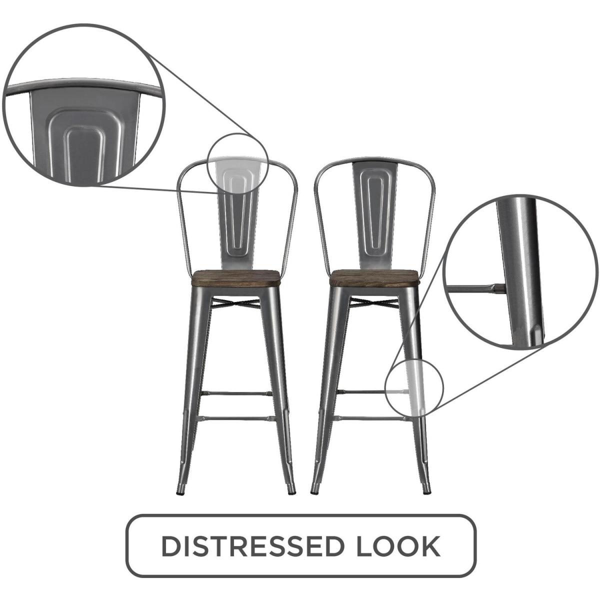 The Luxor 30" Metal Bar Stool with a wood seating surface is highly fashioned with a distressed finish and antique metal design. This urban counter stool is a classic statement piece, making it a perfect dining and conversation seat.