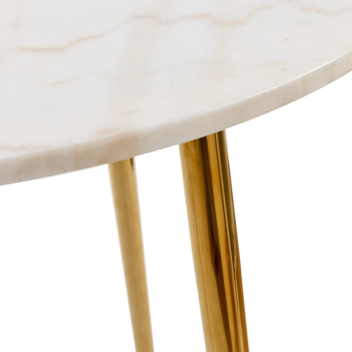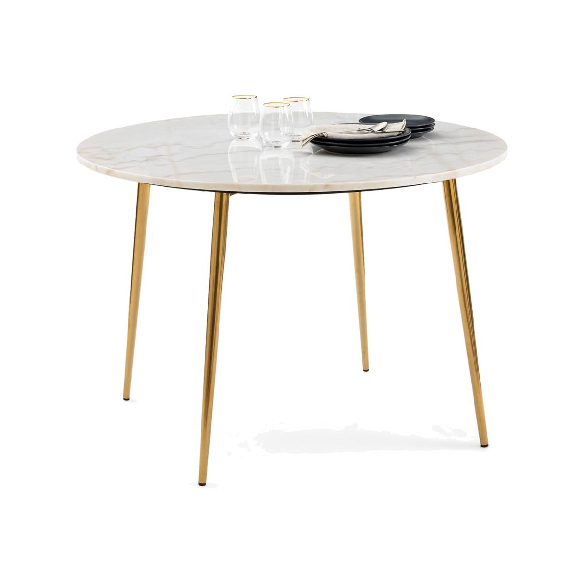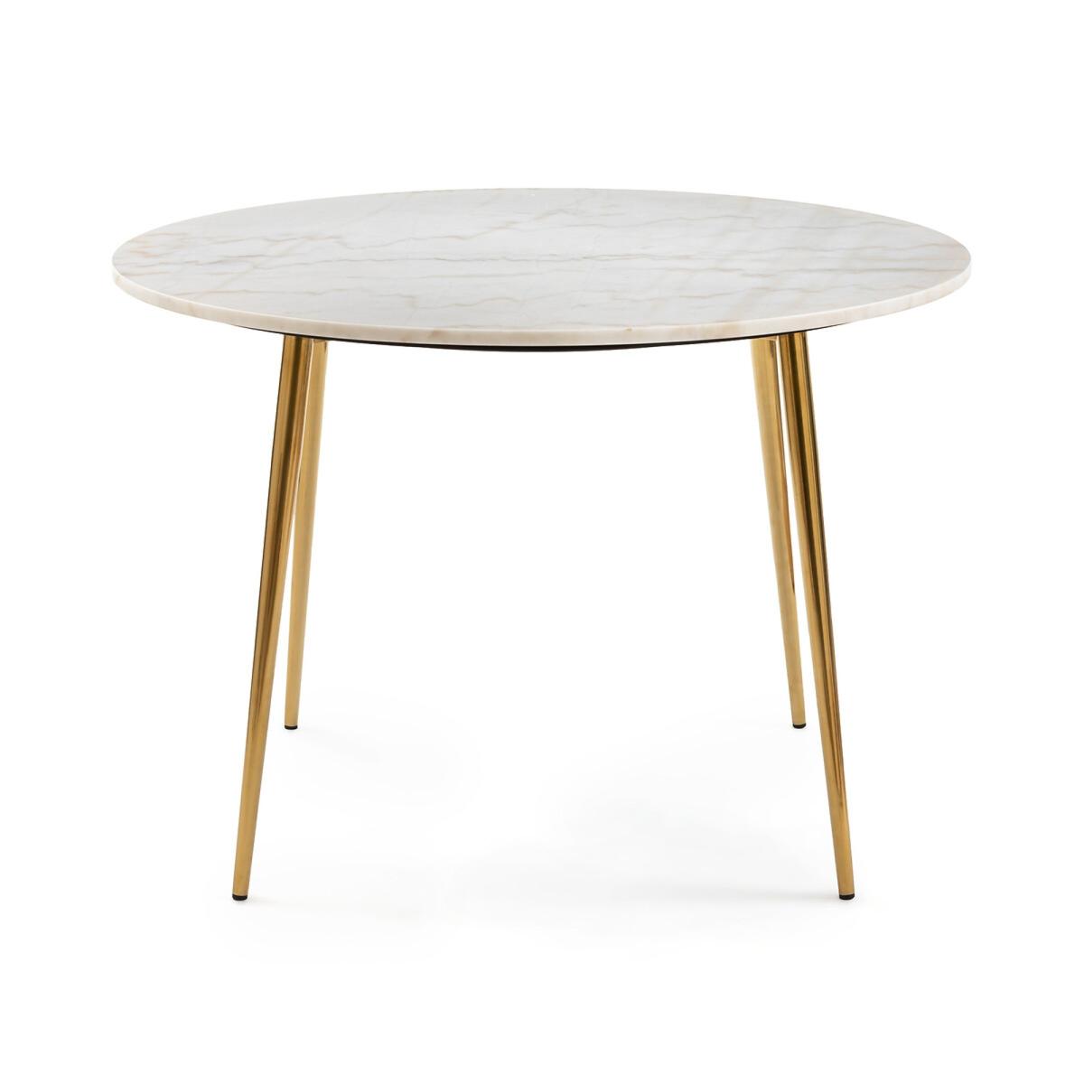 If you are a fan of beautiful materials, you will love the Luxore round table. Its white marble top associated with tapered gold finish legs brings a chic and contemporary touch to your interior.