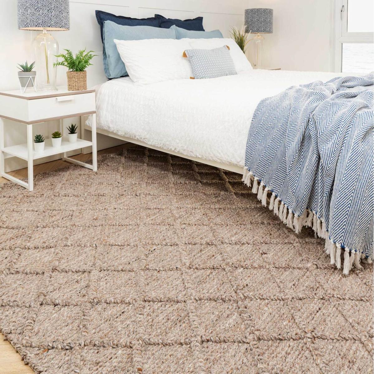 Upgrade your living area with the ultimate luxury and comfort of our wool blend rugs. Crafted with a blend of premium wool, these rugs offer a soft and cosy feel underfoot that will make you never want to leave your space. The neutral colours add a touch of elegance and versatility, effortlessly blending with any decor style. With their trellis texture, these rugs bring a unique and stylish element to your room. Not only does it enhance the aesthetics, but it also provides warmth and insulation during chilly days. Made to withstand everyday use, this rug is durable and long-lasting. Its wool blend construction ensures easy maintenance and cleaning, making it a practical choice for busy households.