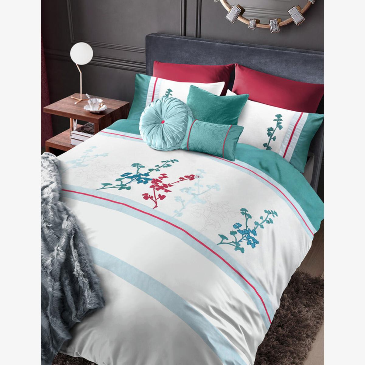 Introducing the Velosso Autumn Duck Egg Duvet Cover and Pillowcase Set! It's the perfect choice to make your bedroom super cozy this autumn. The set has a modern and classy vibe with its soft duck egg color. Plus, it has a cool design that adds a touch of elegance to your room while still feeling fresh and up-to-date. Made from a special mix of cotton and polyester, this duvet cover is not only stylish but also really comfy. It's super soft, lets your skin breathe, and lasts a long time, so you can enjoy a good night's sleep every night. And guess what The set includes matching pillowcases, so you can give your bedroom a makeover without spending too much. Whether you have a single, double, king, or super king-size bed, each set comes with the right number of pillowcases. So, why wait Give your bedroom a stylish upgrade with this awesome duvet set today!