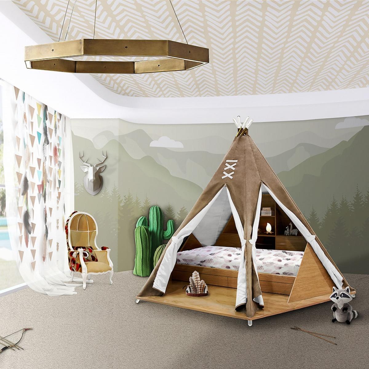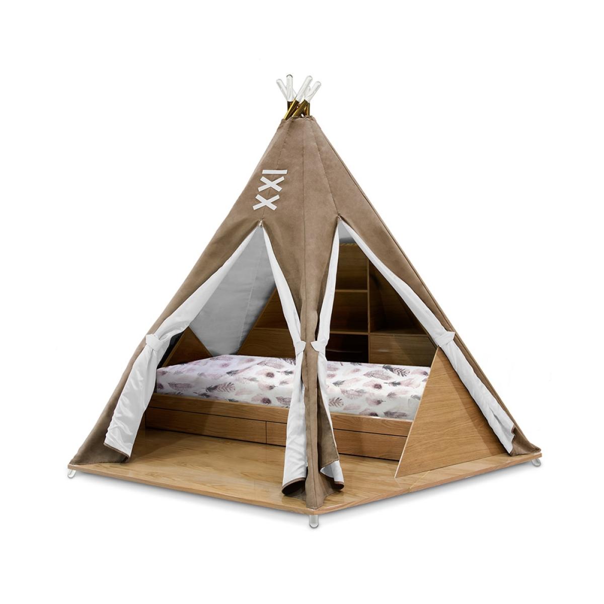 Reminiscent of a traditional Indian Teepee, this free-spirited Luxury Children's Teepee Bed will transform the usual mundane bedtime routine into the most awaited moment of the day. The price reflects the quality- the workmanship is off the charts - absolutely one of a kind extraordinary! Native adventures await your little Pocahontas and Woody, hours of imaginative play, this fabulous tipi bed it not reserved only for sleeping! The enclosed bed has brilliant toy storage beneath, that can be easily moved by its handy wheels, so when playtime is over (boohoo!) everything can be neatly stored away. Create a western themed room based around this teepee bed, you'll soon be practicing your John Wayne swagger as you make your exit!This wonderful kids bed is made to order, please allow up to 14 weeks for delivery.