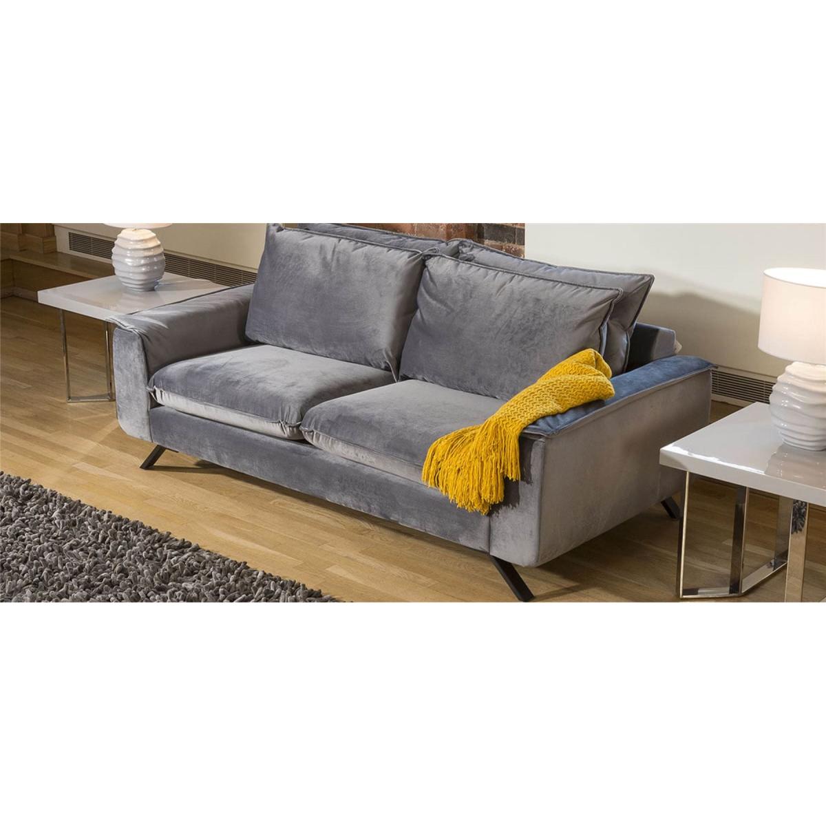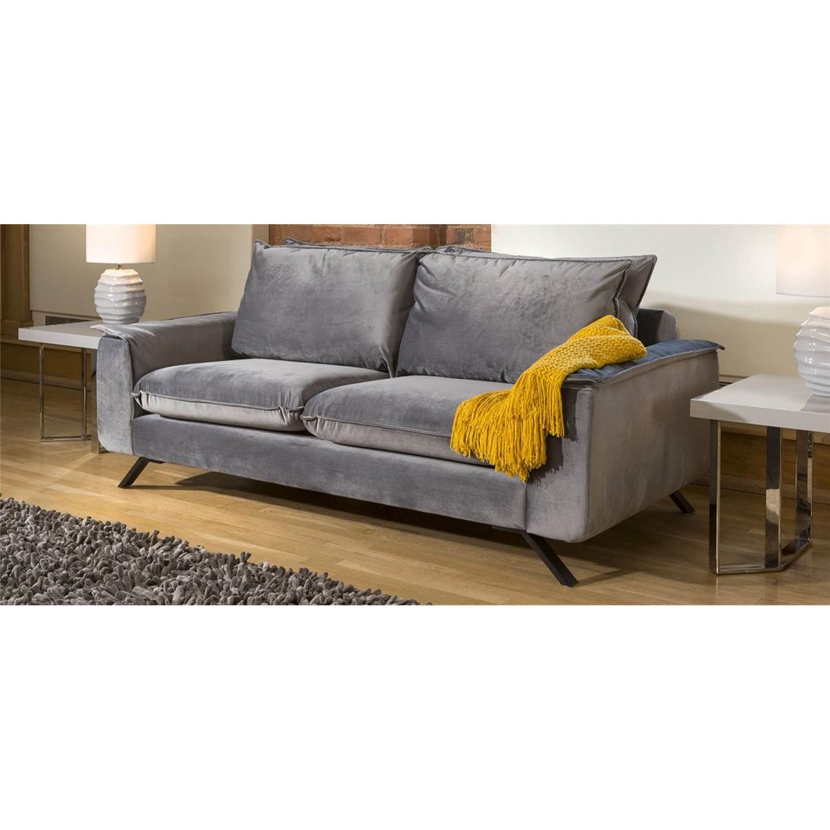 With a width of 210cm, the luxury Ellie sofa provides ample seating for family and friends, creating a welcoming centerpiece in your home. Crafted with a focus on contemporary aesthetics, this 3 seater sofa boasts an ultra-modern design with sleek black metal legs and a range of over 100 premium fabrics to choose from. One of the standout features of the Ellie sofa is its unique double back cushion design, providing an unrivaled level of support and comfort. Sink into deep cushioning that envelops you in relaxation, making every moment spent on this sofa a true delight. The modern off-the-ground design, supported by sleek angled black metal legs, not only adds a touch of elegance but also makes cleaning a breeze, ensuring your living space remains impeccable. With a range of over 100 premium fabrics to choose from, you have the creative freedom to customise your sofa to suit your personal style and interior decor seamlessly. Whether you prefer rich velvets, timeless neutrals, or bold patterns, our selection guarantees a fabric that resonates with your vision. To complete your dream living room ensemble, explore our collection of matching sofas in various sizes, allowing you to curate a coordinated set that exudes sophistication and charm. Elevate your home with the epitome of modern design and comfort. Our 3-seater sofa combines sleek aesthetics, thoughtful engineering, and a vast fabric selection to create a harmonious blend of luxury and functionality. Make a statement that reflects your distinct taste by choosing a sofa that promises an unforgettable experience for years to come. W210cm D100cm H90cm We can design the sofa to meet your exact size requirements - call the team for a virtual sofa design All dimensions are approximate due to fabric differences. Please allow tolerance of +/- 5cm to any direction