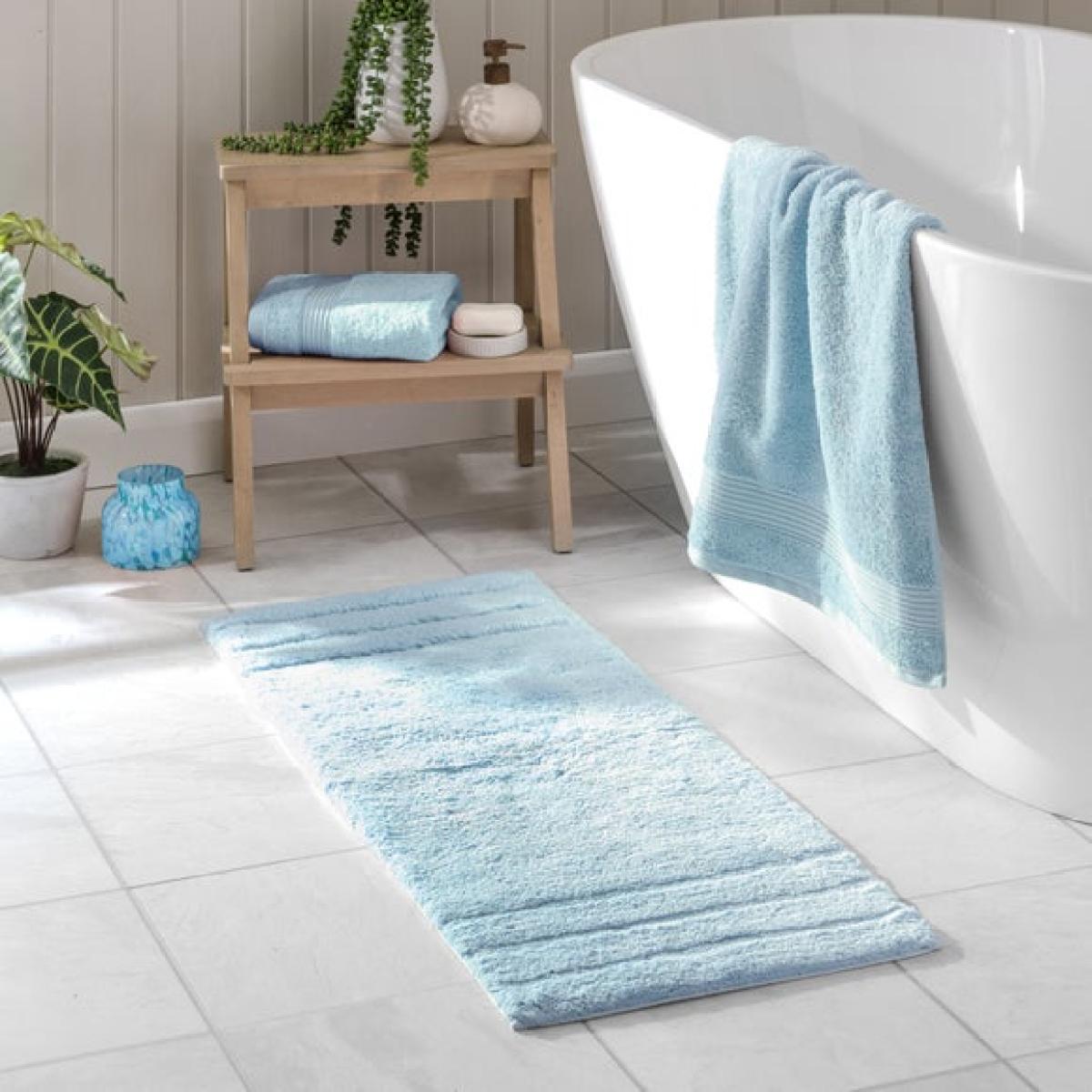 * Thick pile for a soft, supportive step * Textured stripe design adds a stylish touch * Stays in place with anti-slip backing * Comes in a variety of colours and sizes * Matching shower, pedestal and bath mats available Step out of the bath and onto something soft with our Luxury Cotton Textured Stripe Bath Runner. Made from 100% cotton with a dense pile, it brings a thick, plush feel underfoot. The textured stripe detailing adds a smart finish, while the cotton pile is designed to soak up splashes with ease. An anti-slip backing helps keep it steady, even on smooth floors. It’s machine washable to keep it looking fresh. Available in a wide range of colours and sizes, and designed to coordinate with our Egyptian Cotton towel range.