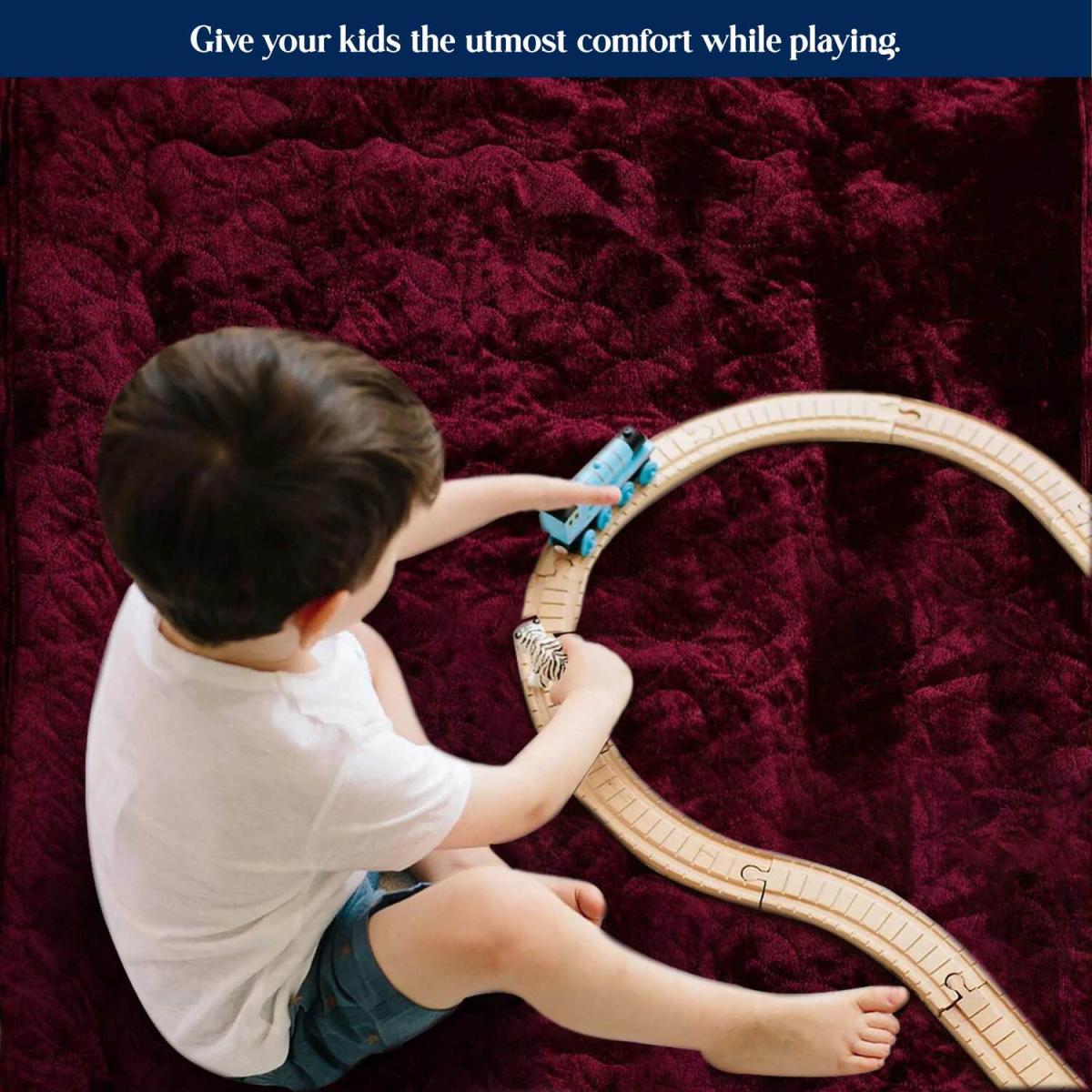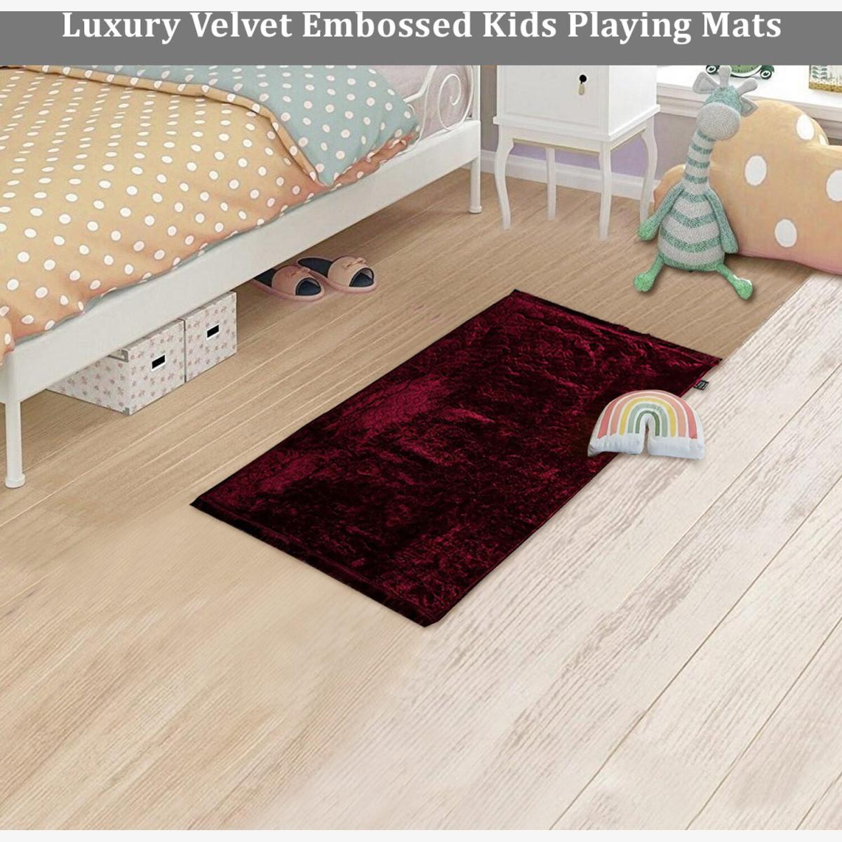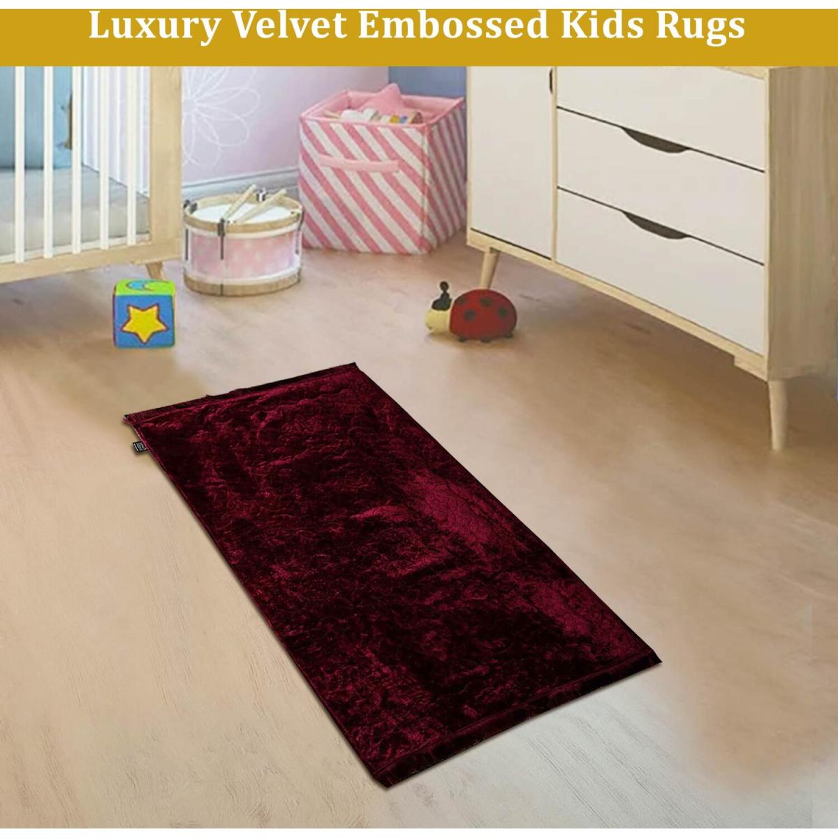 Luxury Crushed Velvet Kids Rug - Burgundy
