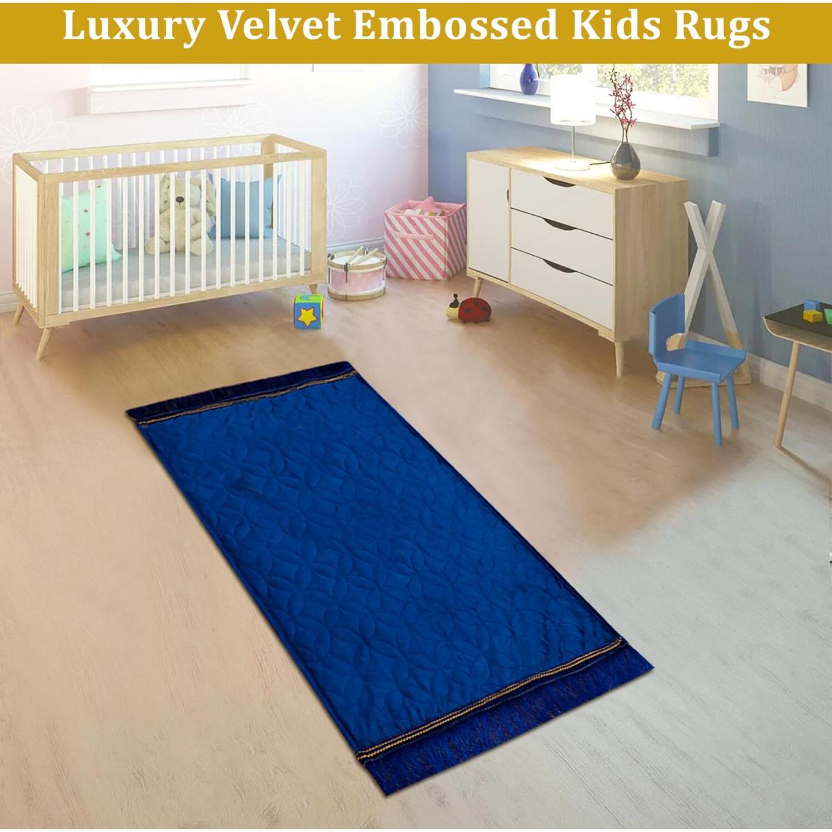 I love the navy velvet kids rug for its plush texture and versatile colour, which can add a pop of sophistication or complement soft pastel schemes. Its embossed velvet finish brings a subtle luxe touch that's both tactile and visually appealing. It works well in both modern and more traditional bedrooms, especially when you want a statement piece that’s also practical. As a styling tip, pair it with light-coloured bedding or playful accessories to create a balanced and inviting space. Its durability and softness make it perfect for little ones to play on comfortably, while the navy hue helps hide minor stains, making it a smart addition for busy kids' rooms.