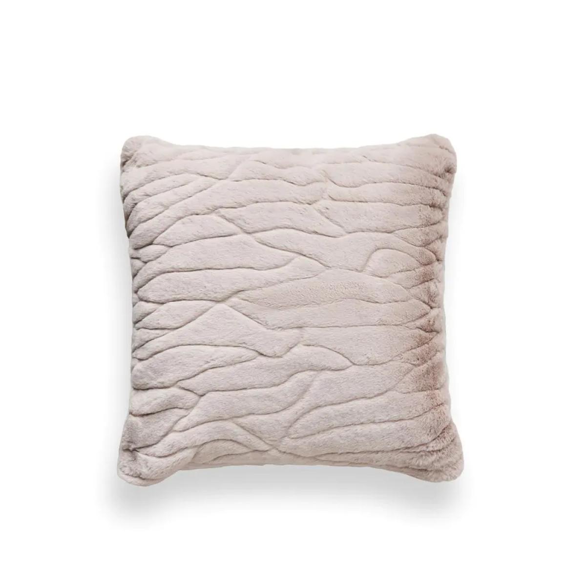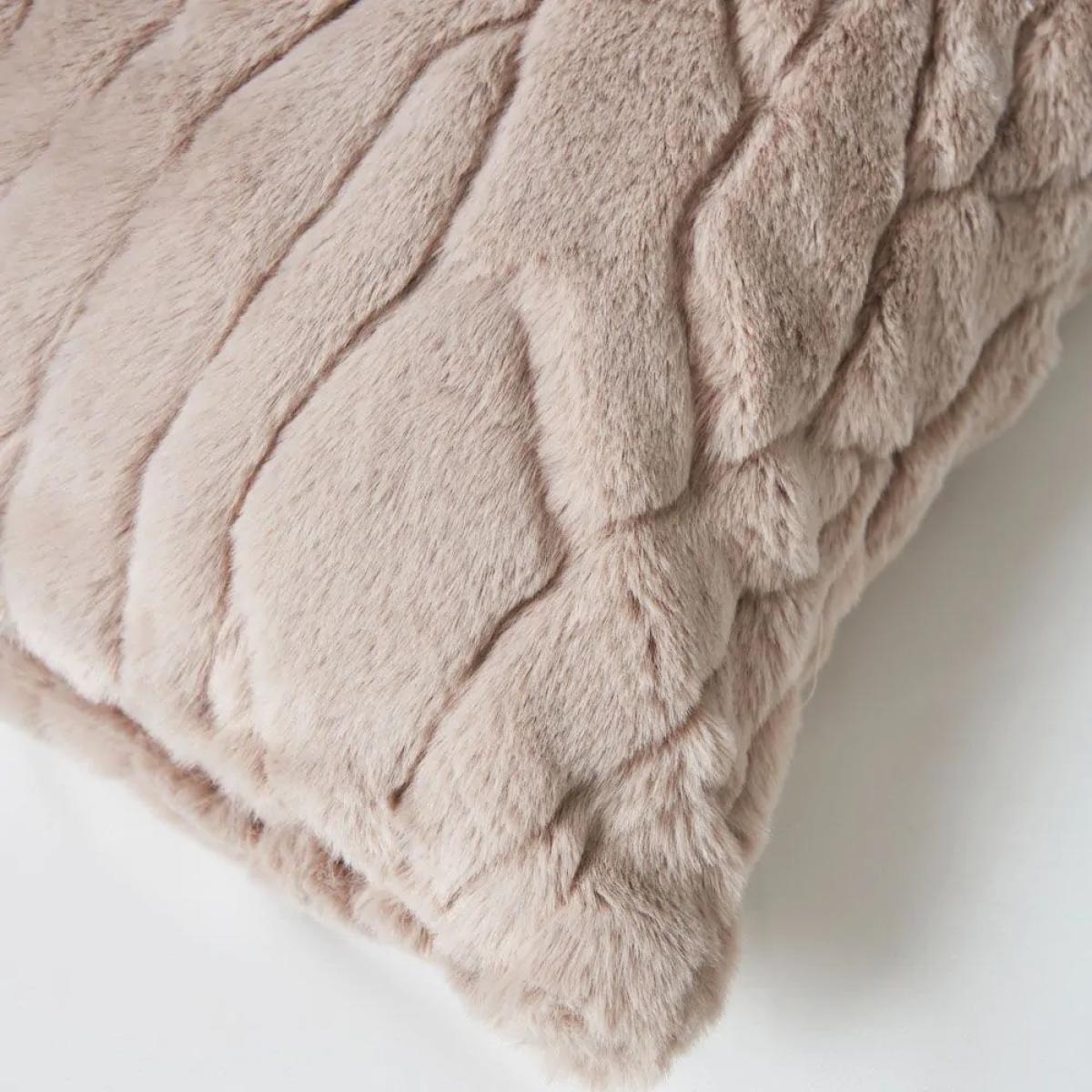 Luxury Embossed Rabbit Faux Fur Cushion, Tan